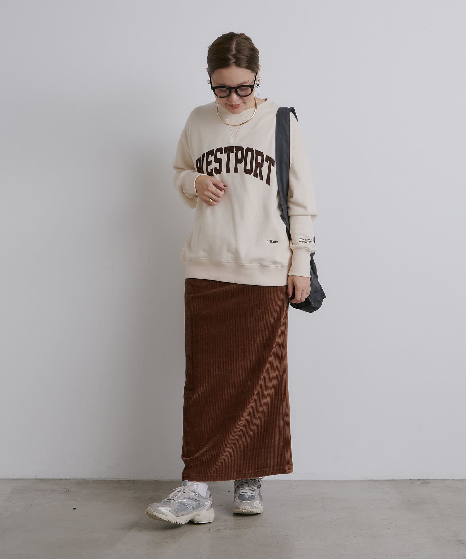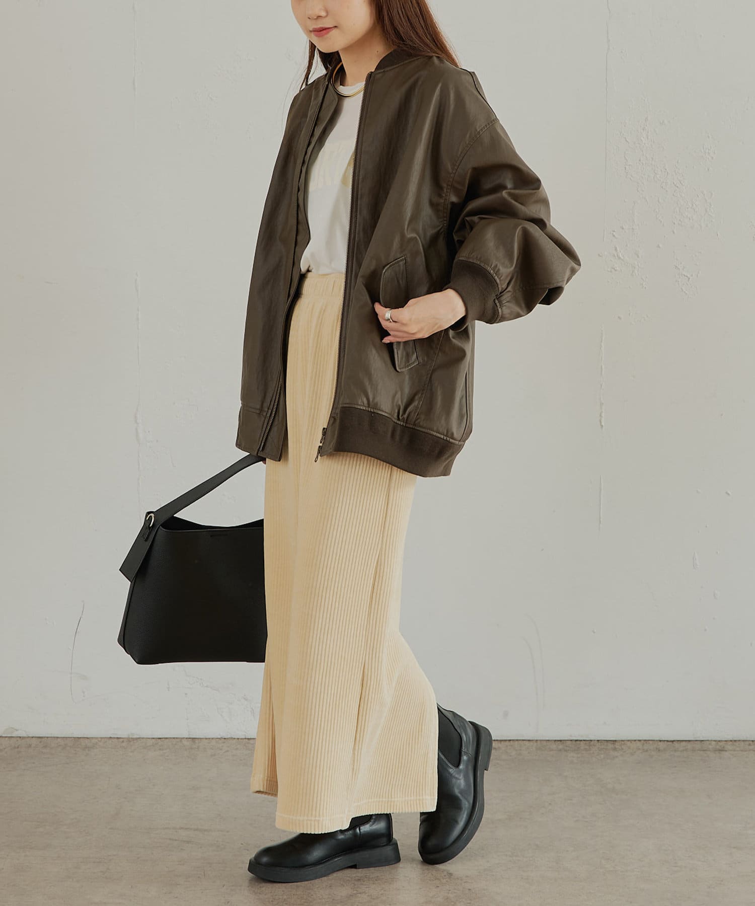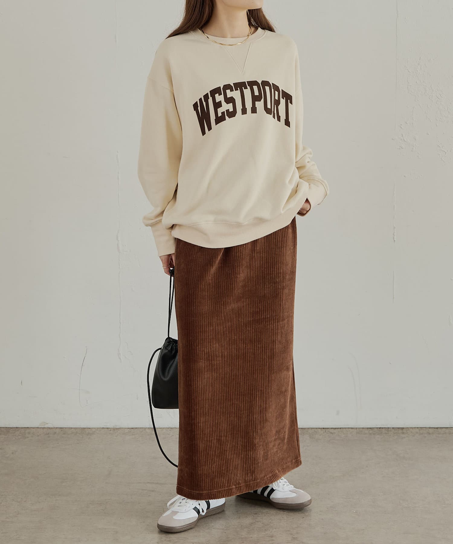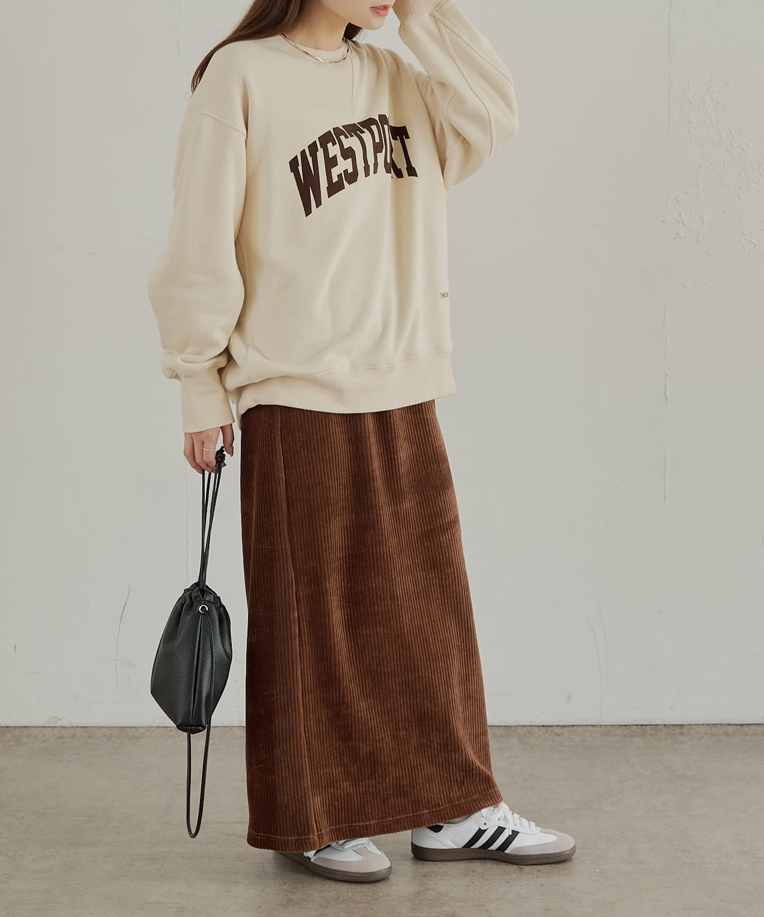 サイズ感:スニーカーやローヒールの靴でも綺麗に穿ける丈感です。とてもストレッチ性が高く、柔らかいコールテン素材です。
