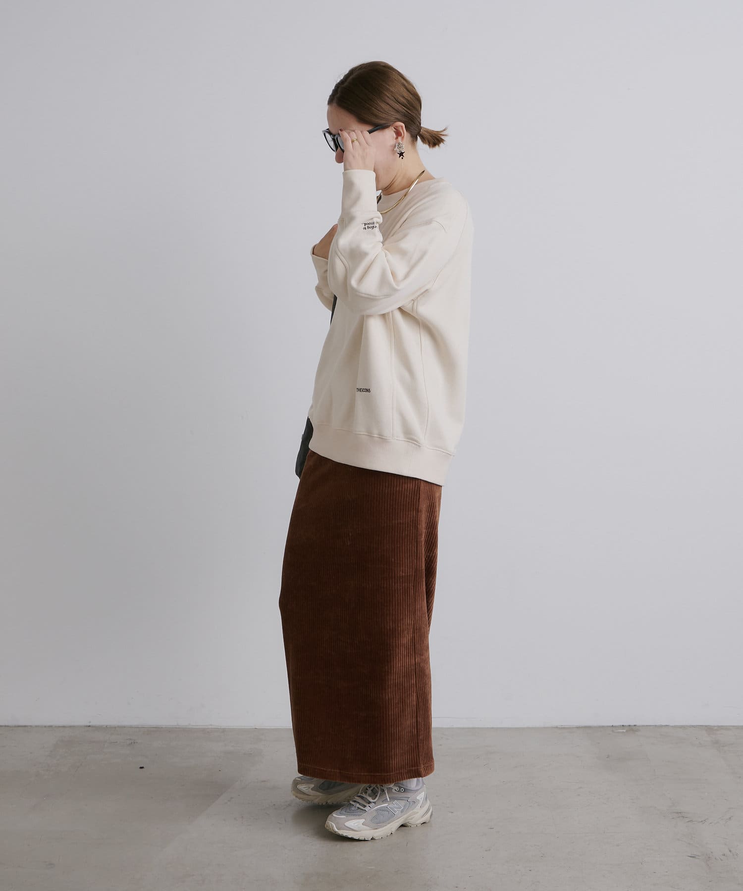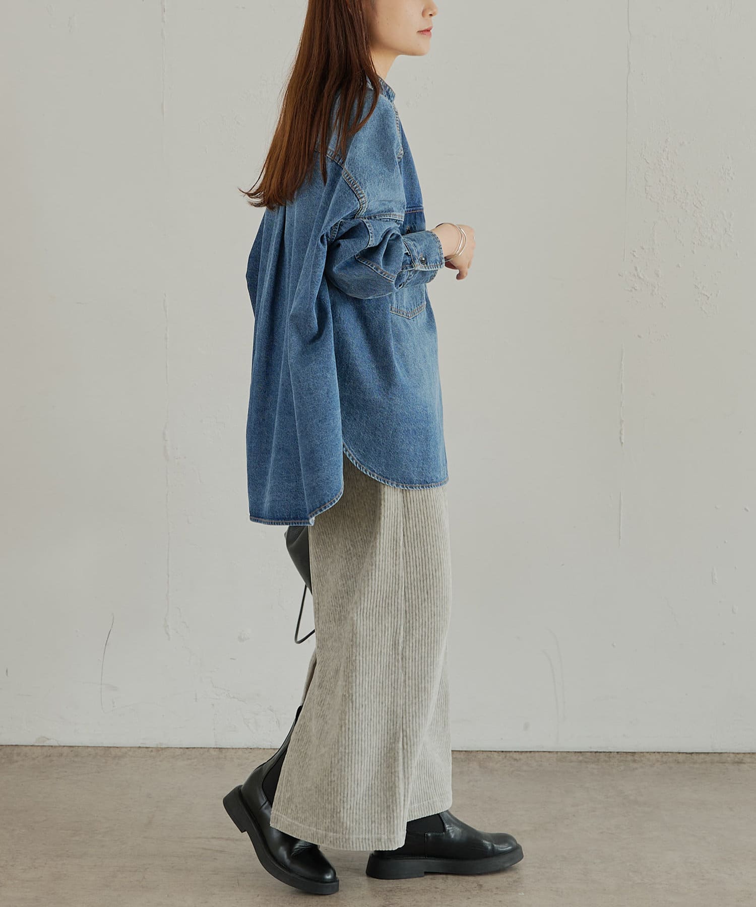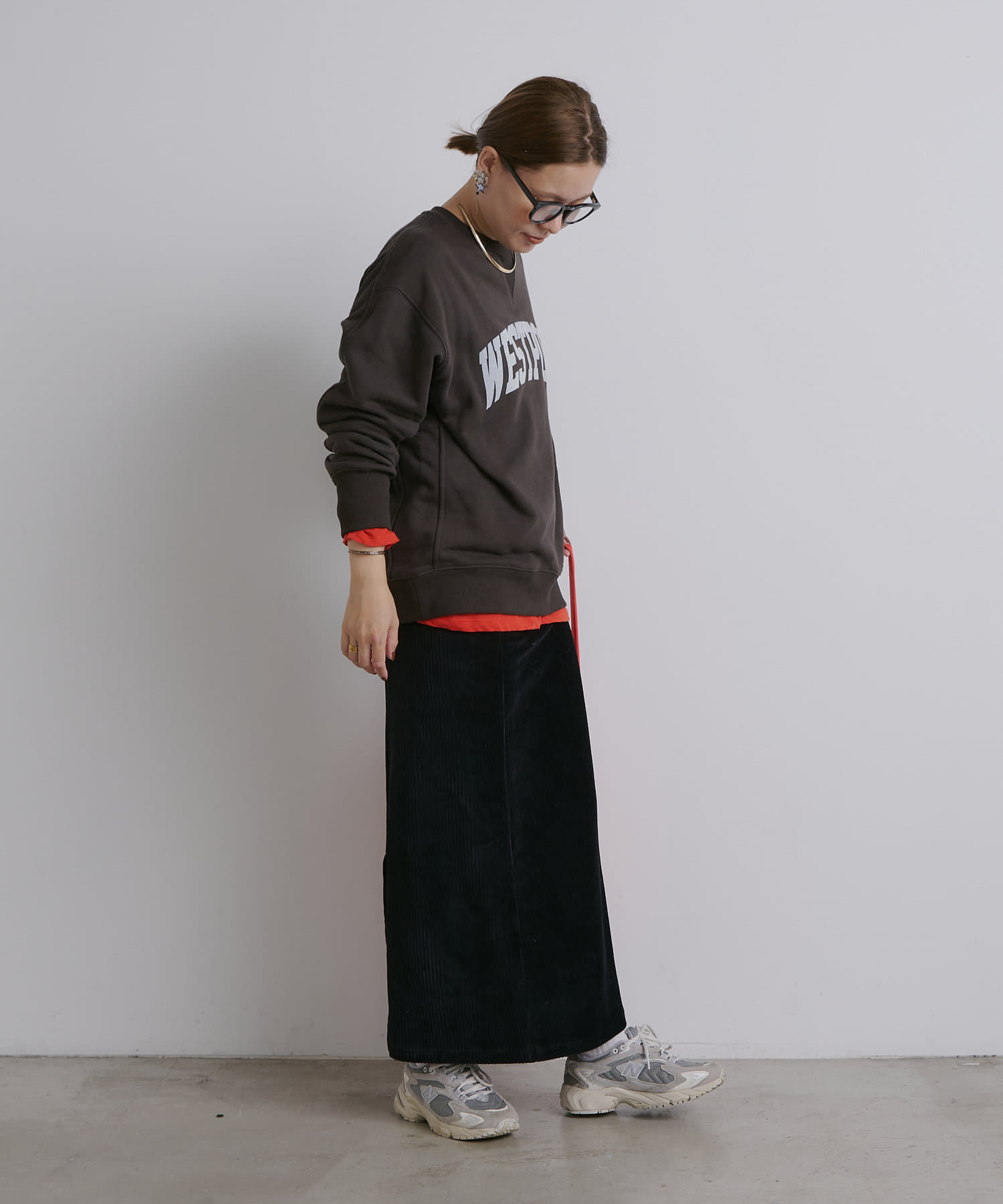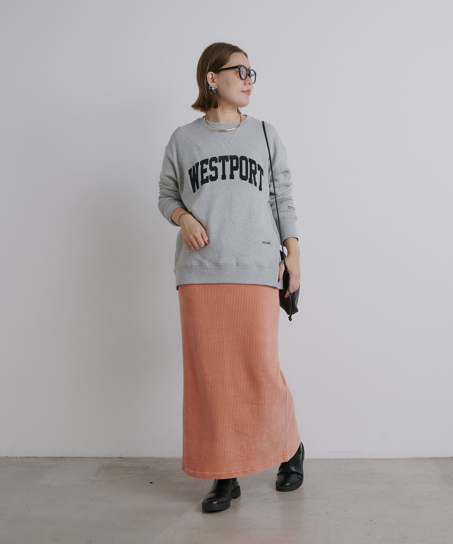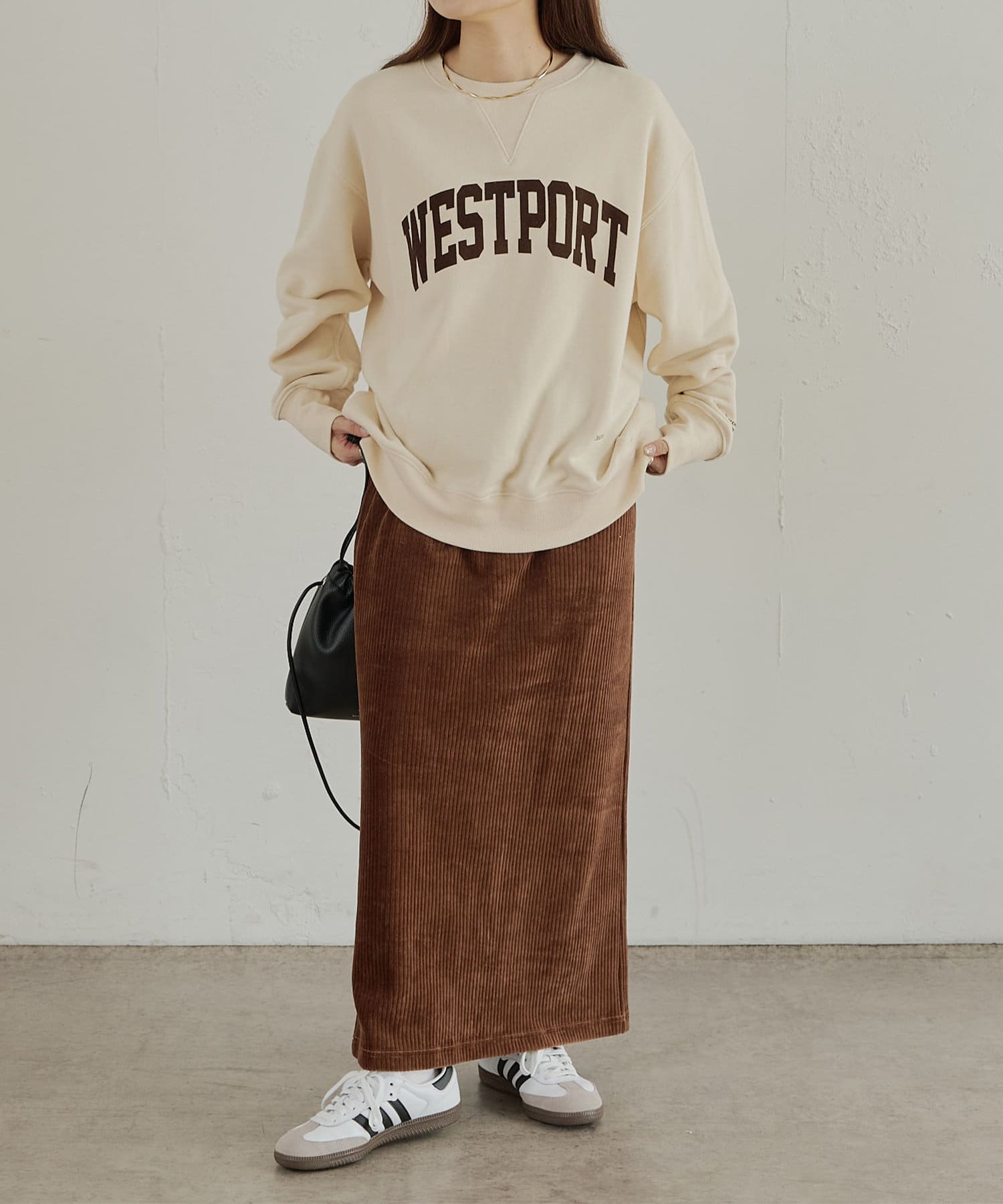 サイズ感:スニーカーやローヒールの靴でも綺麗に穿ける丈感です。とてもストレッチ性が高く、柔らかいコールテン素材です。