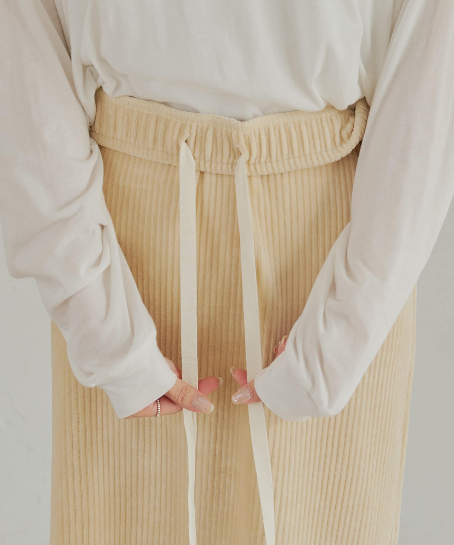 ウエスト部分の内側に紐を入れているので気軽にウエスト調整が可能。