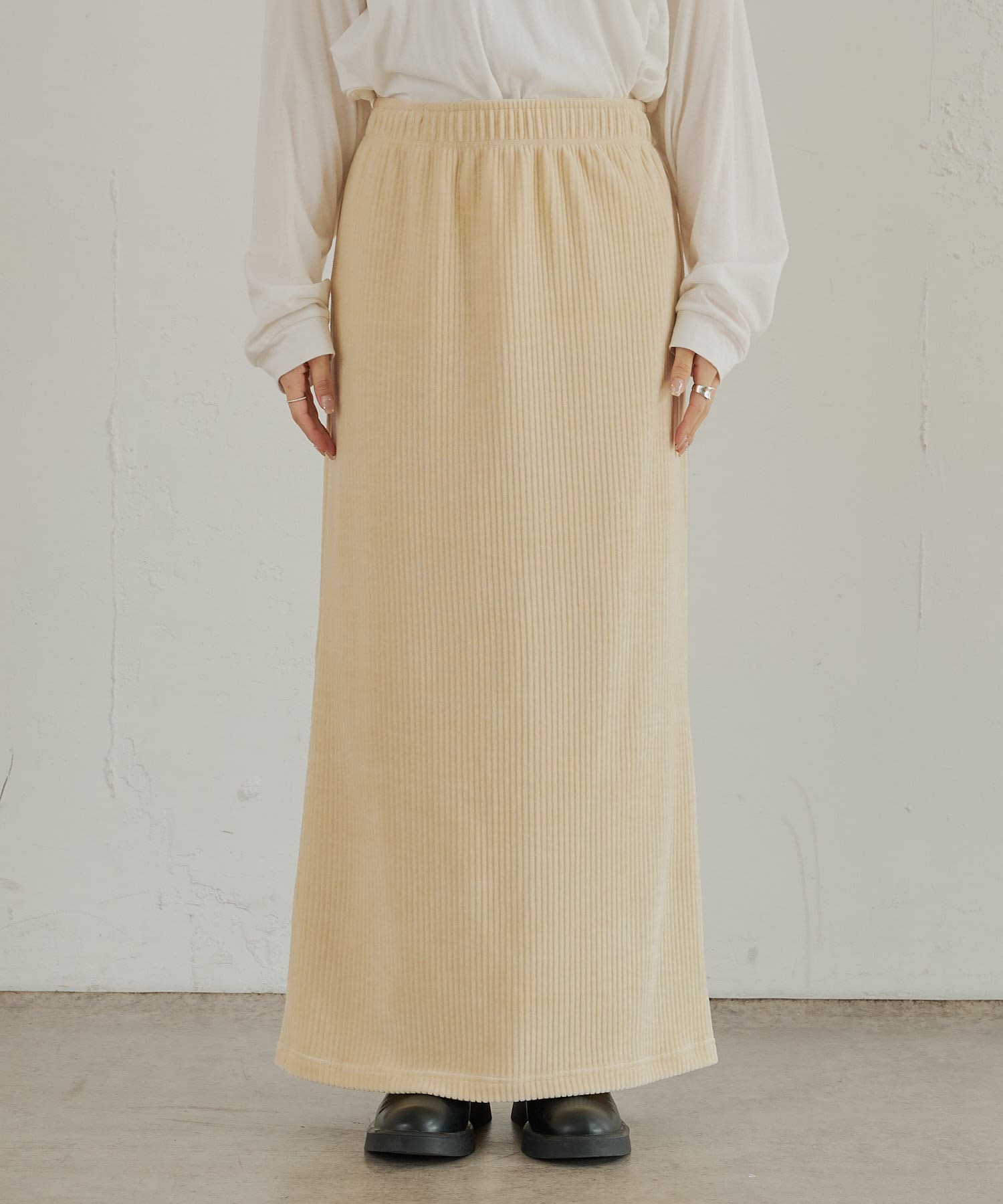 フィットしすぎず体のラインを拾いにくい絶妙なIラインシルエットが魅力のスカート。