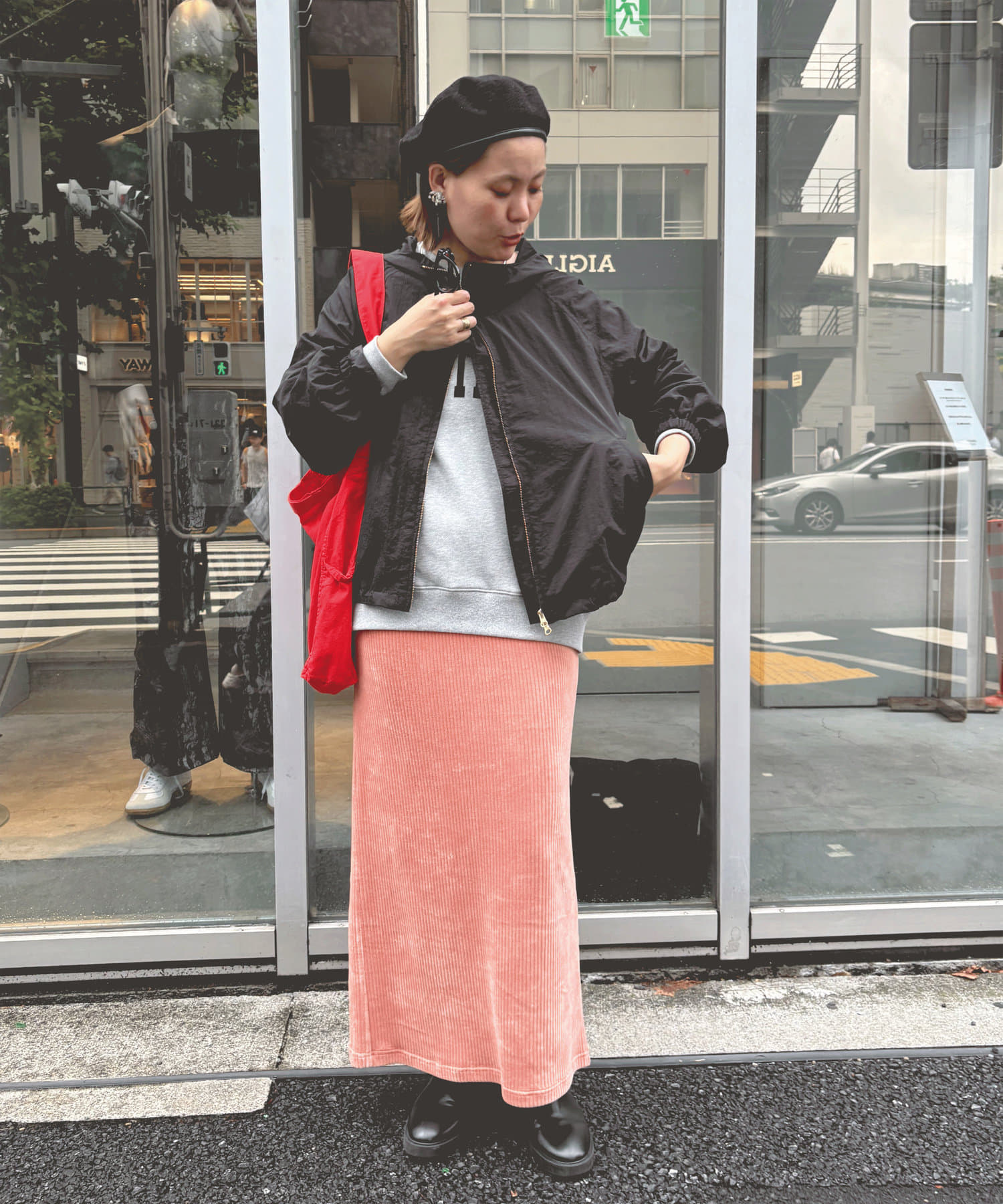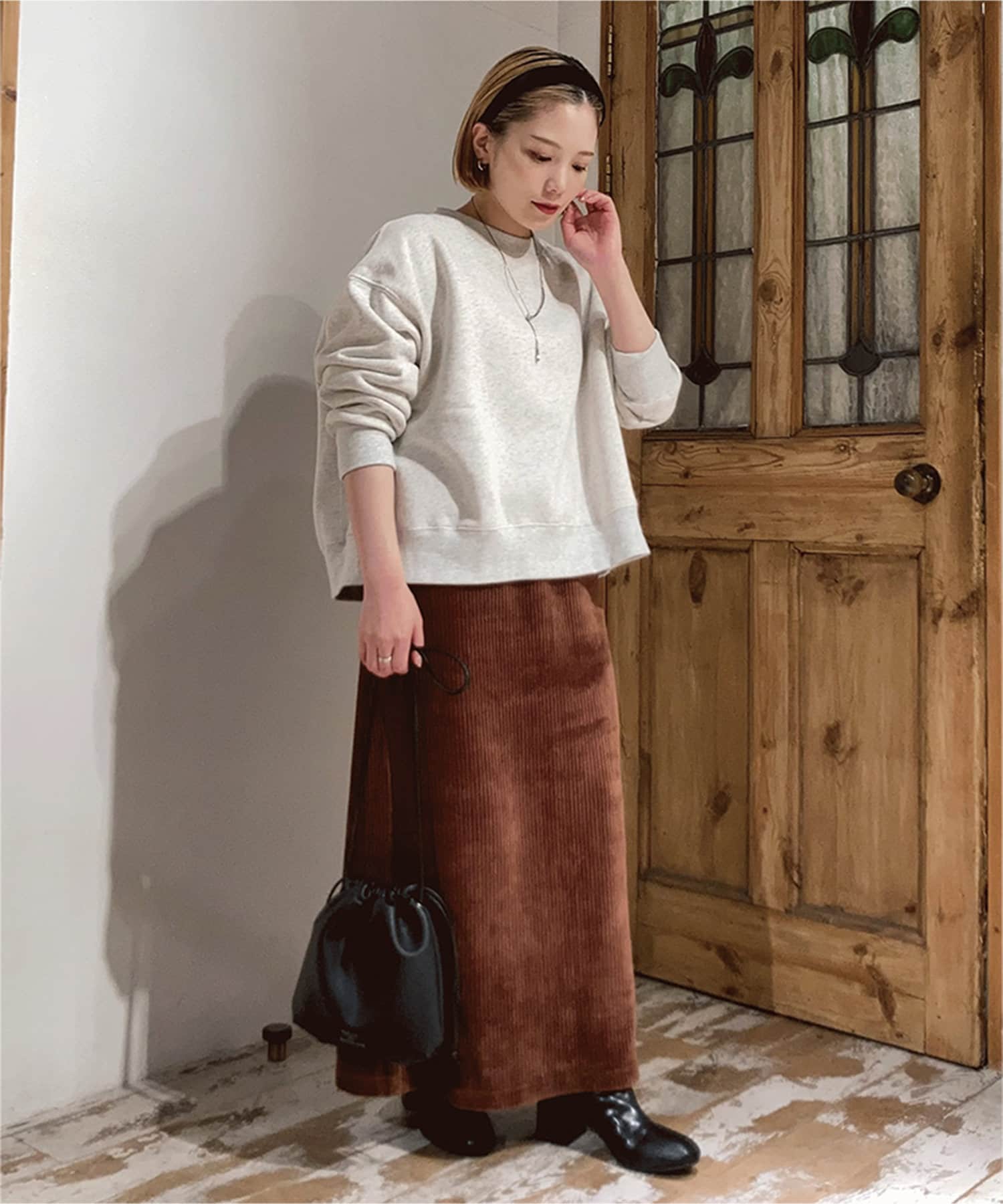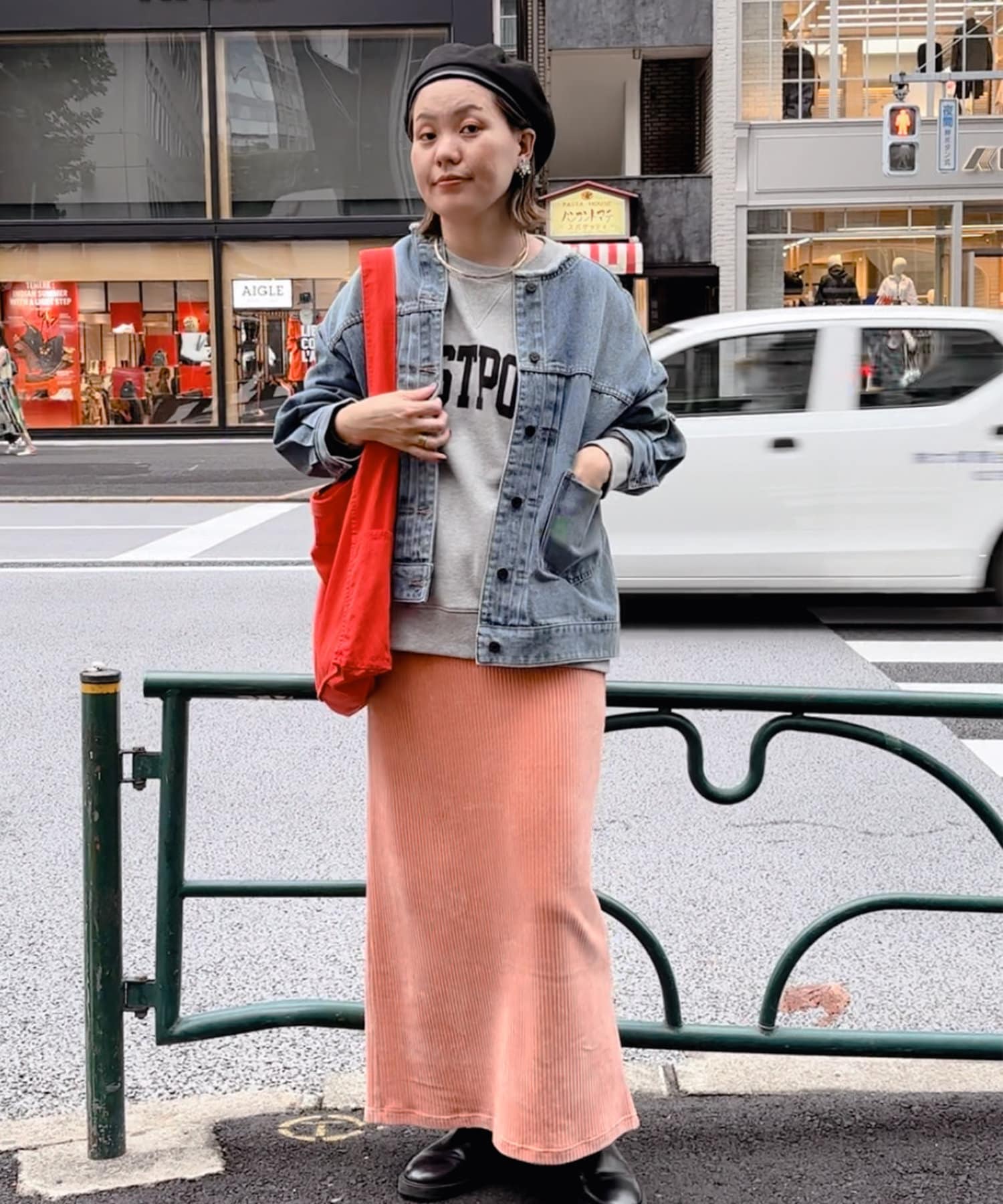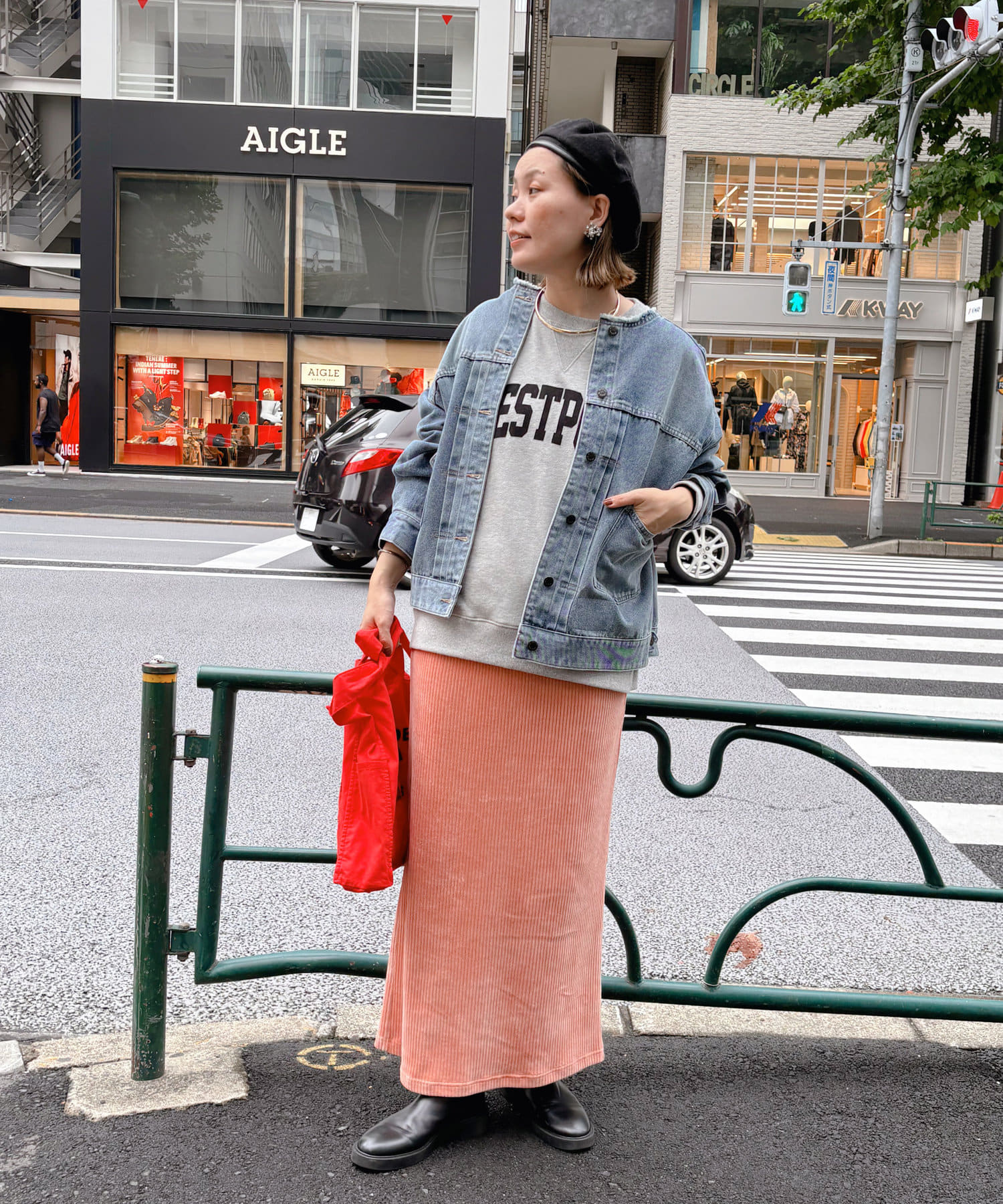 どんなテイストの服にも合わせやすく、ロンTやスウェットなどのカジュアルアイテムから、