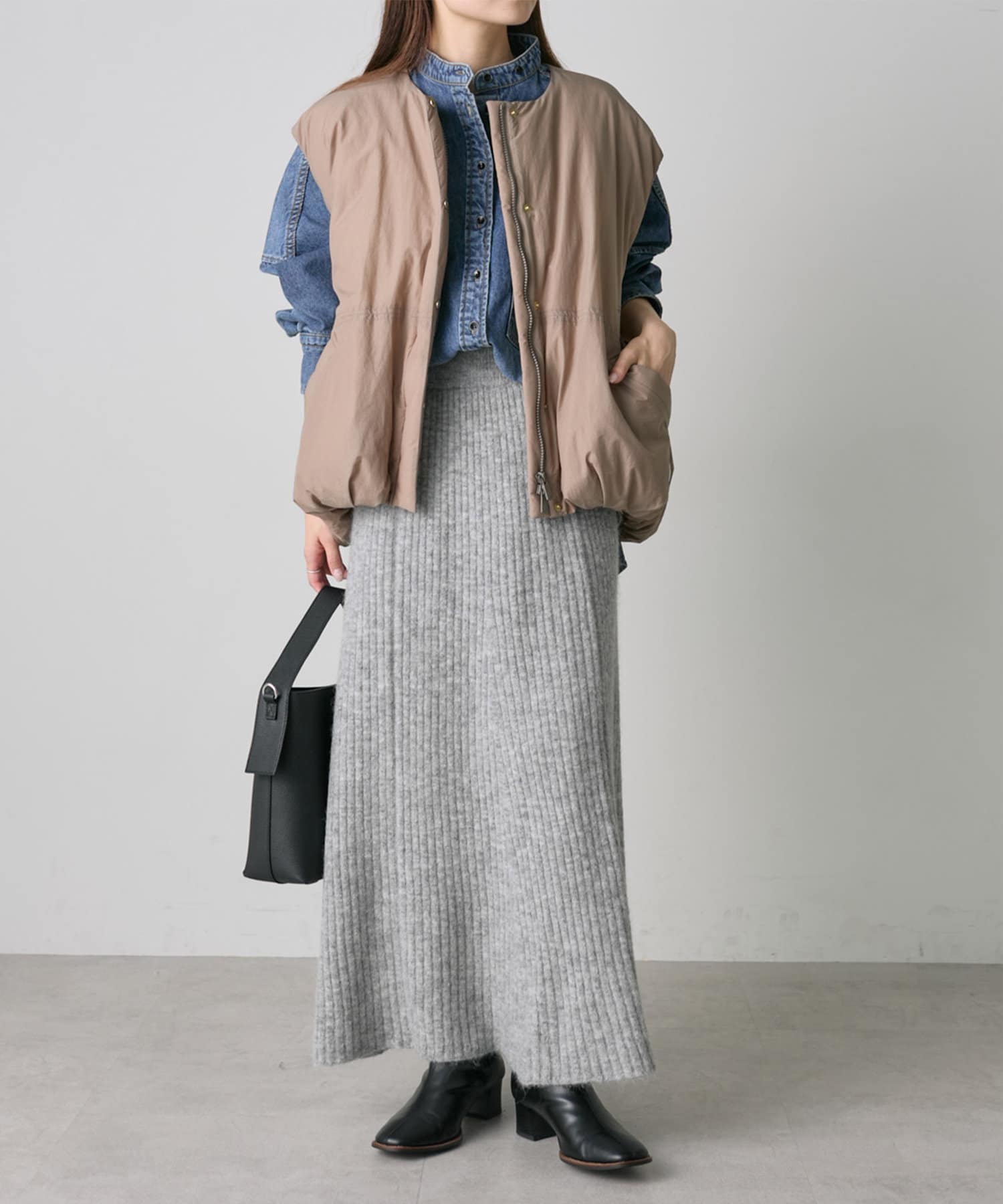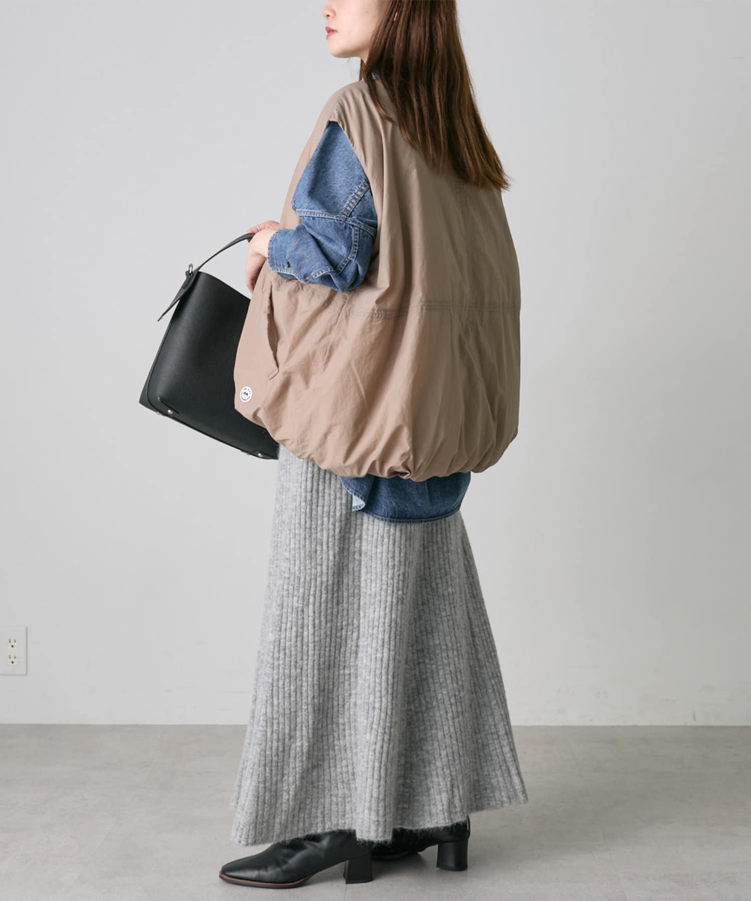 ウエストからヒップにかけてはすっきりと見えるので、着ぶくれ感もありません。