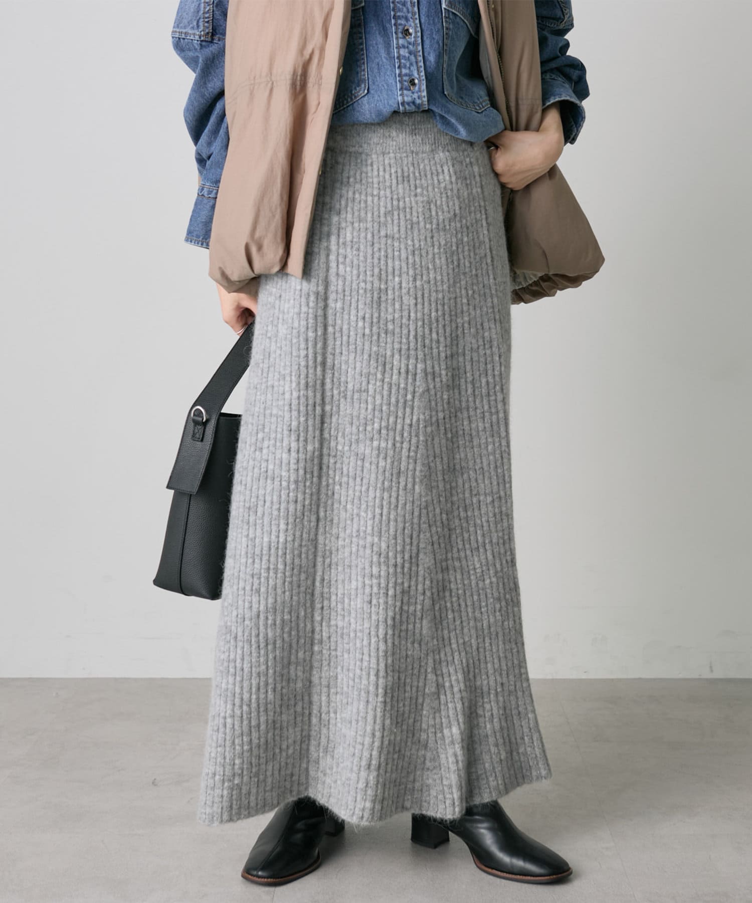 ワイドリブニットフレアスカート