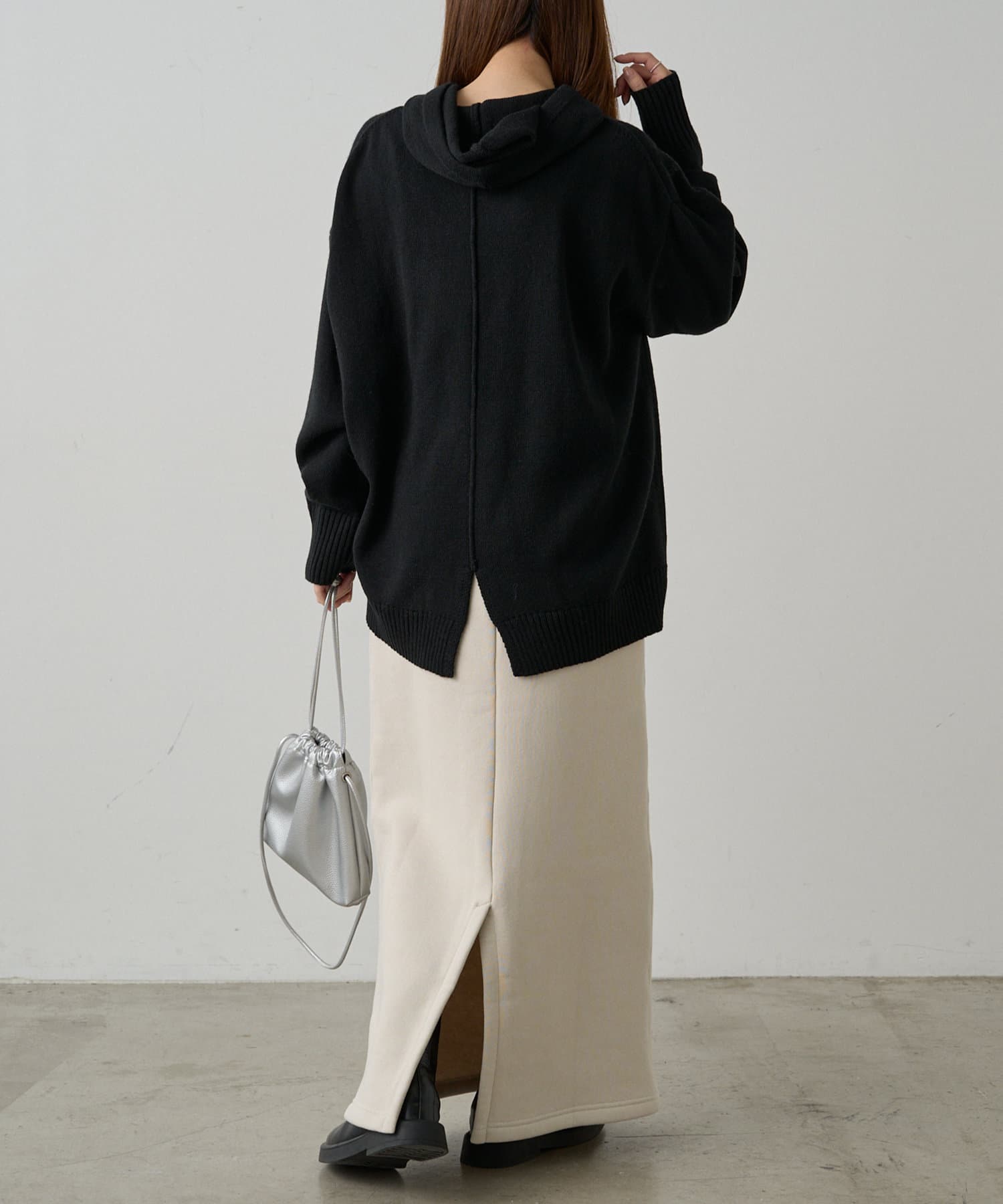ストレートシルエットですが、肉厚の生地なので下半身のシルエットを拾いにくく、安心して着用いただけるスカートです。
