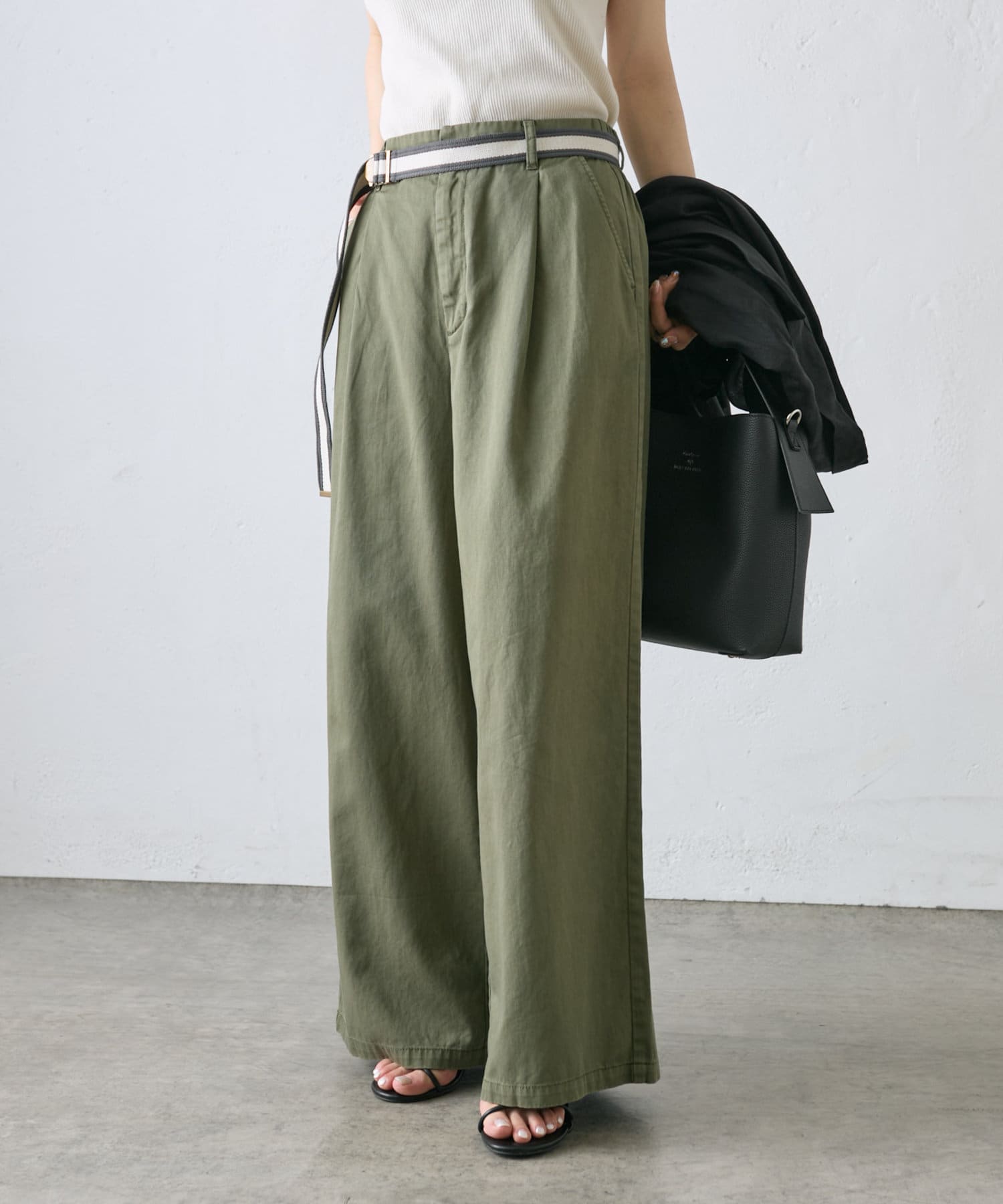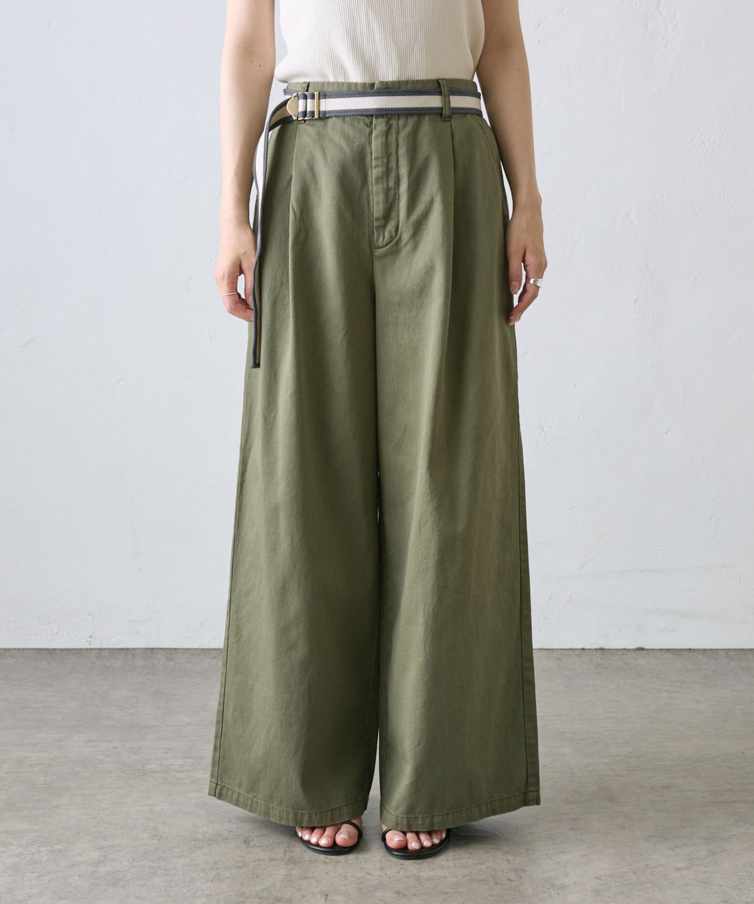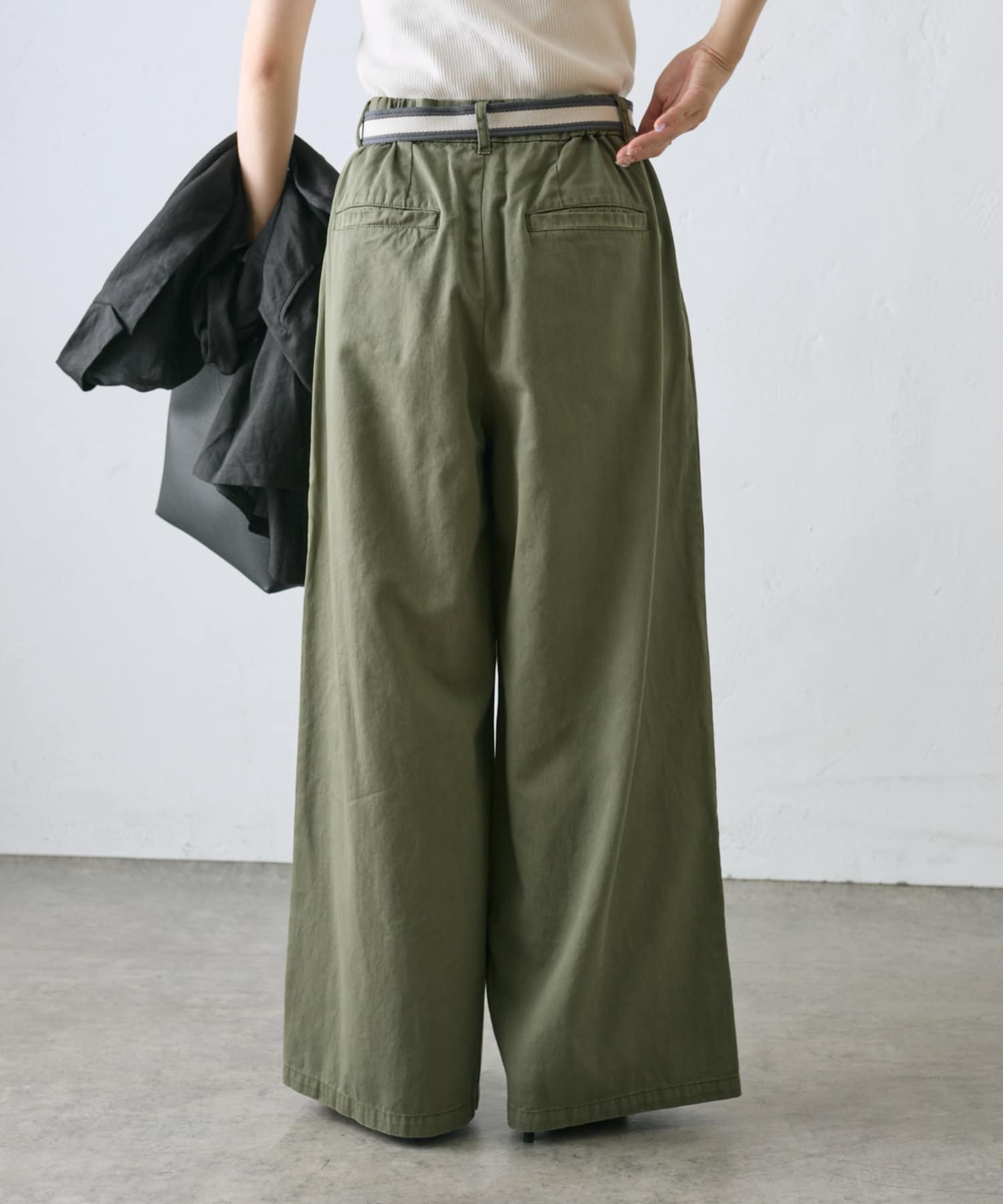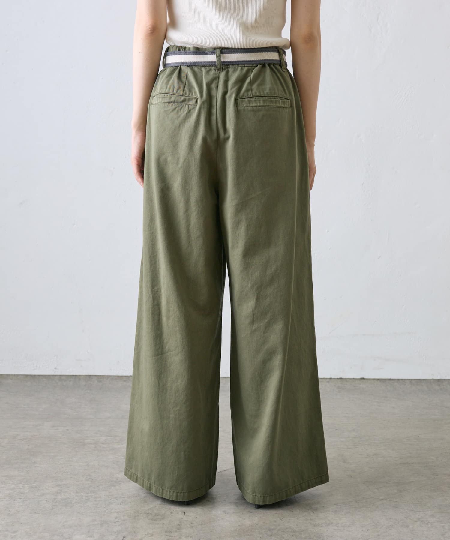 【ラインベルト付き】高密度コットンワイドパンツ