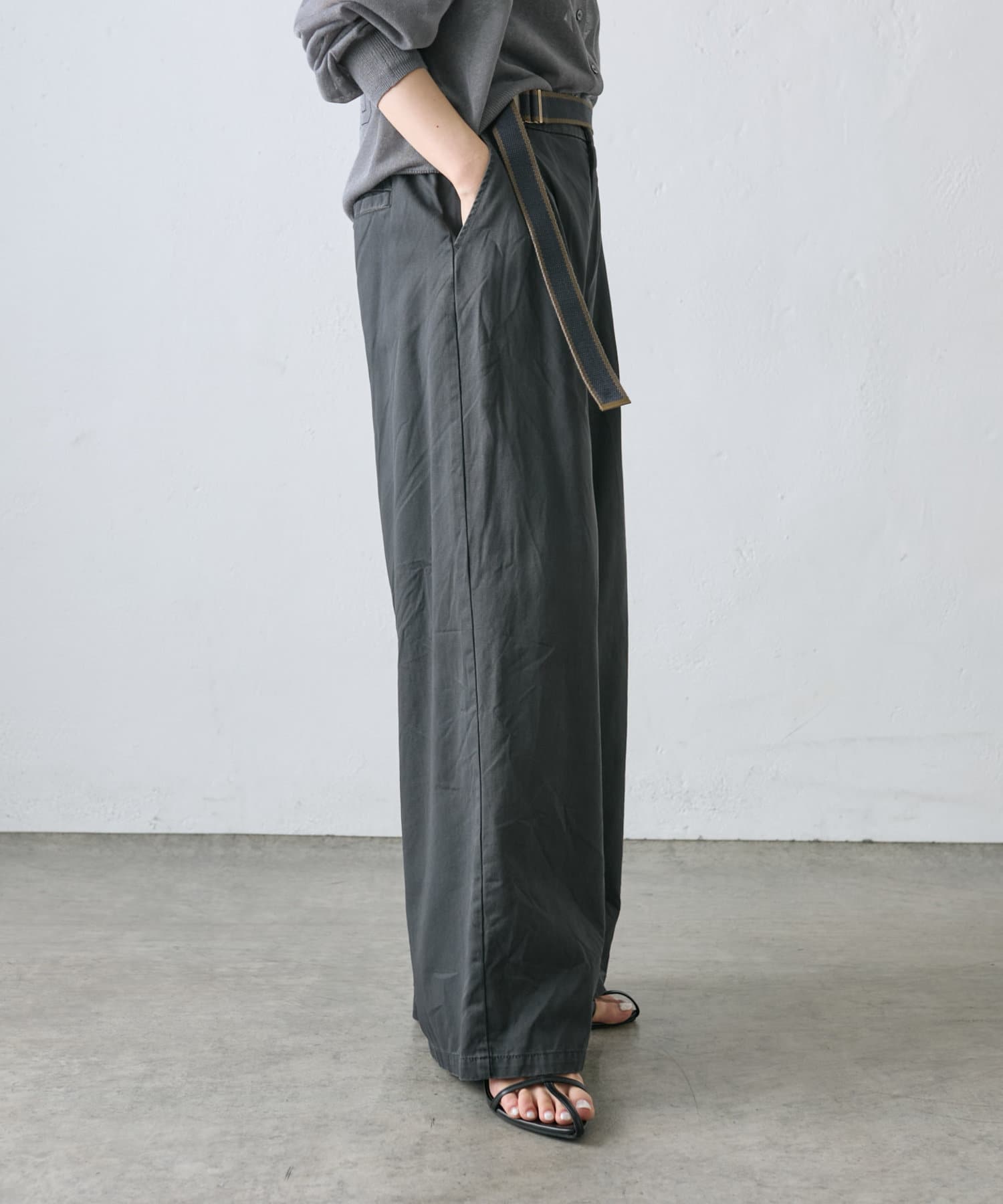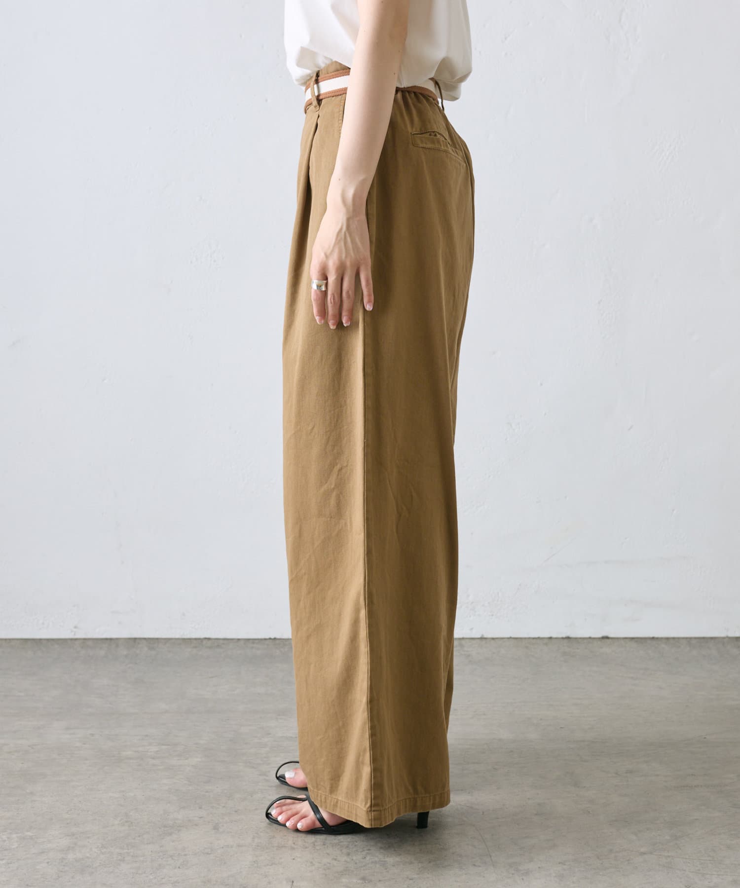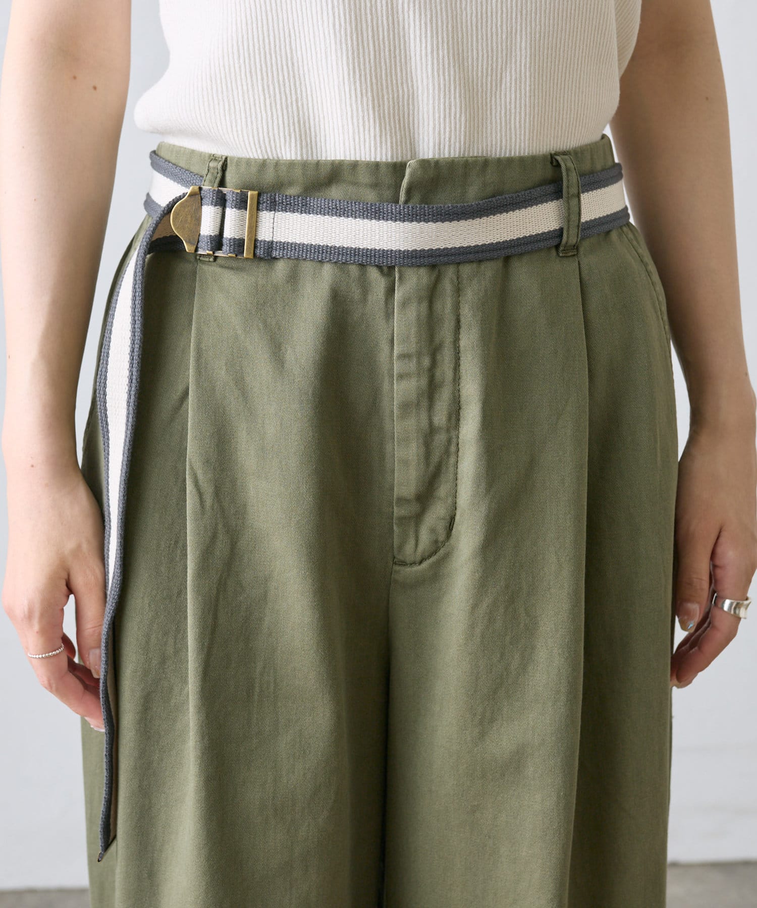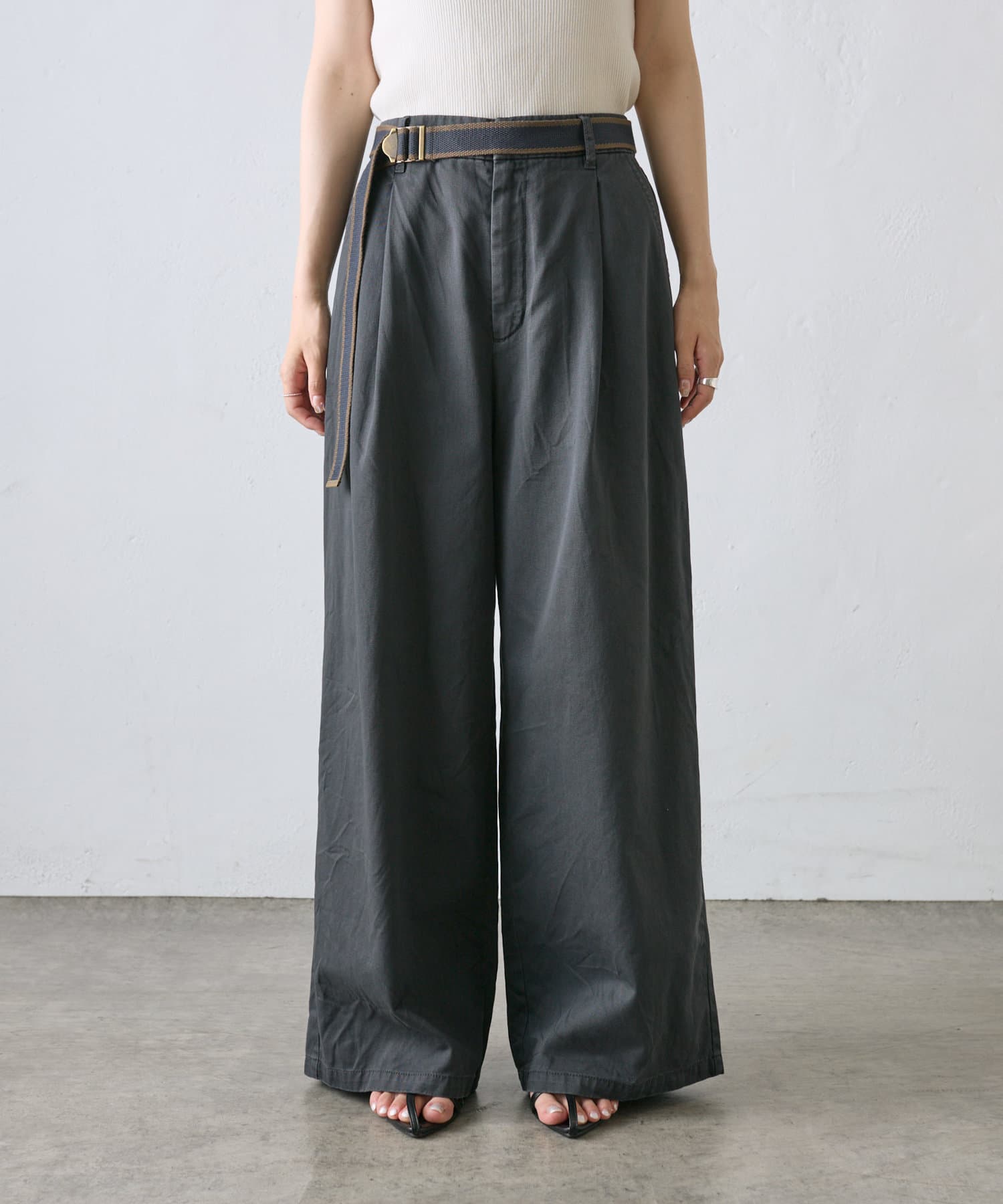 【ラインベルト付き】高密度コットンワイドパンツ