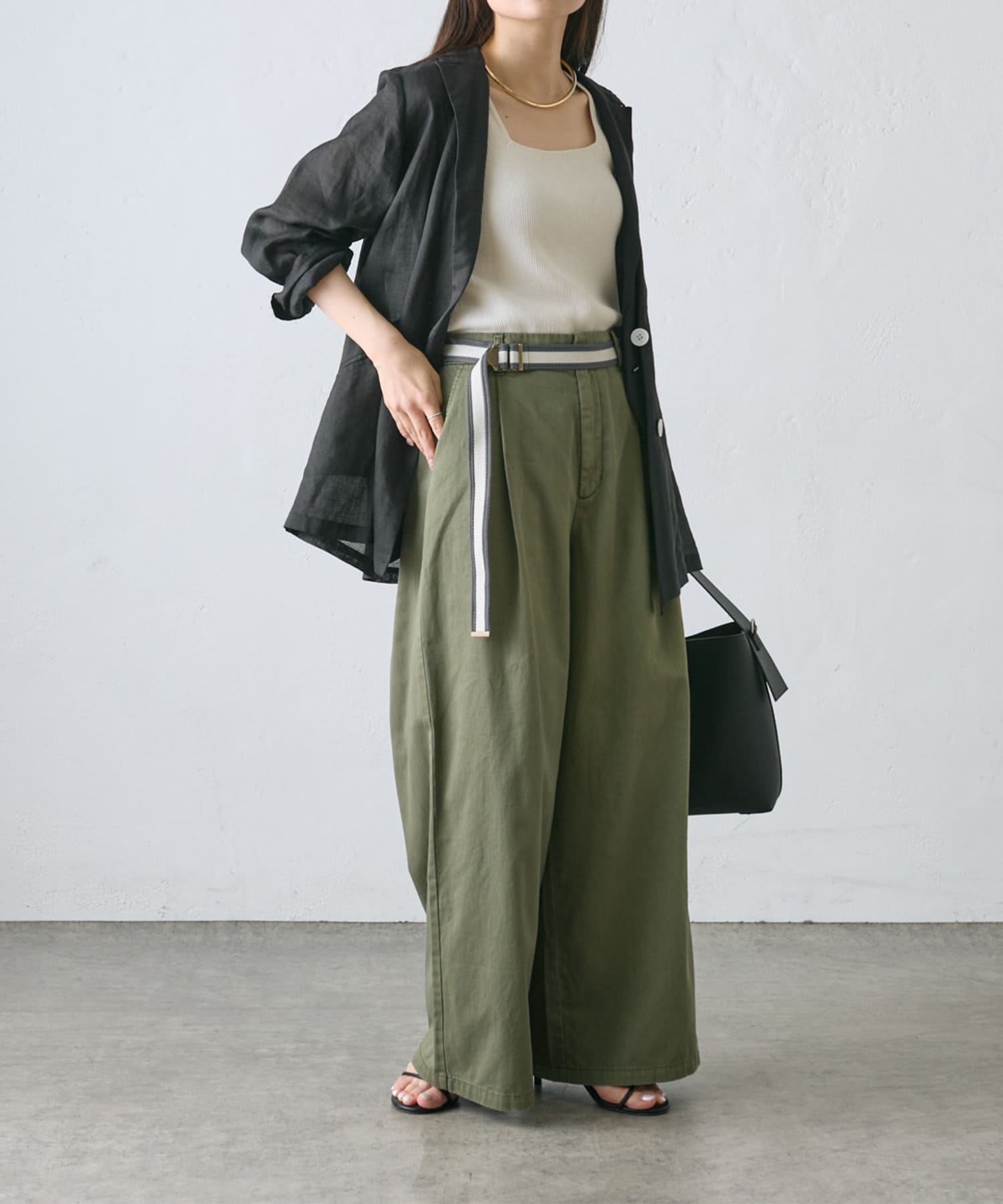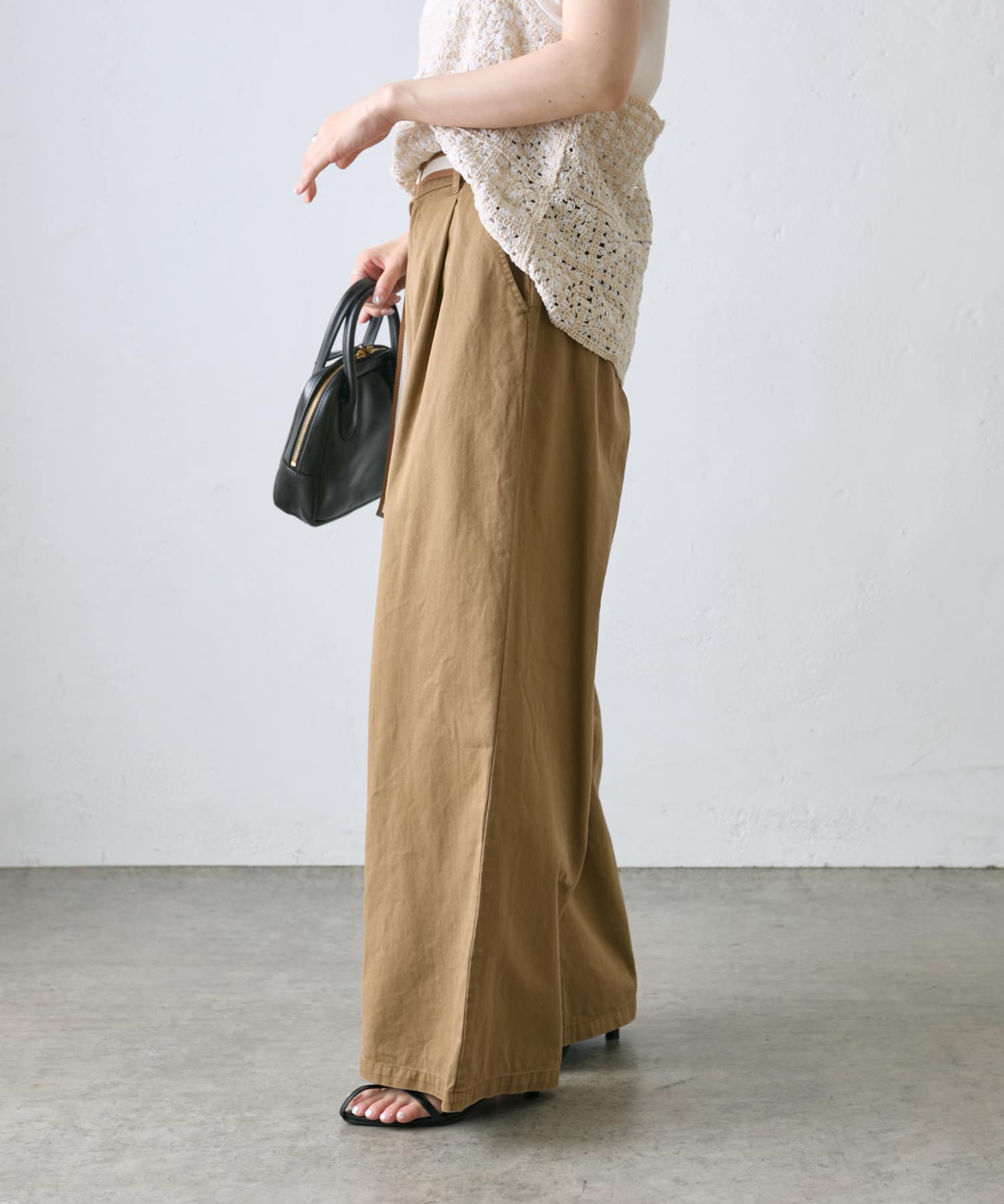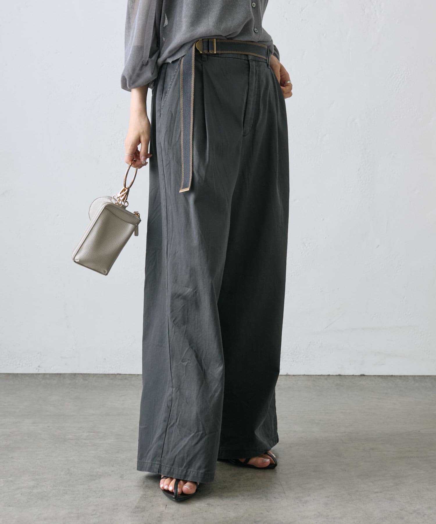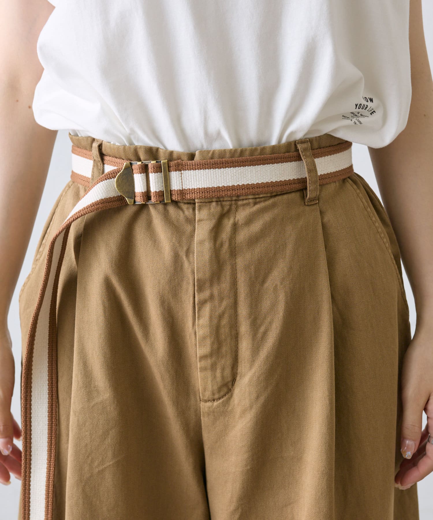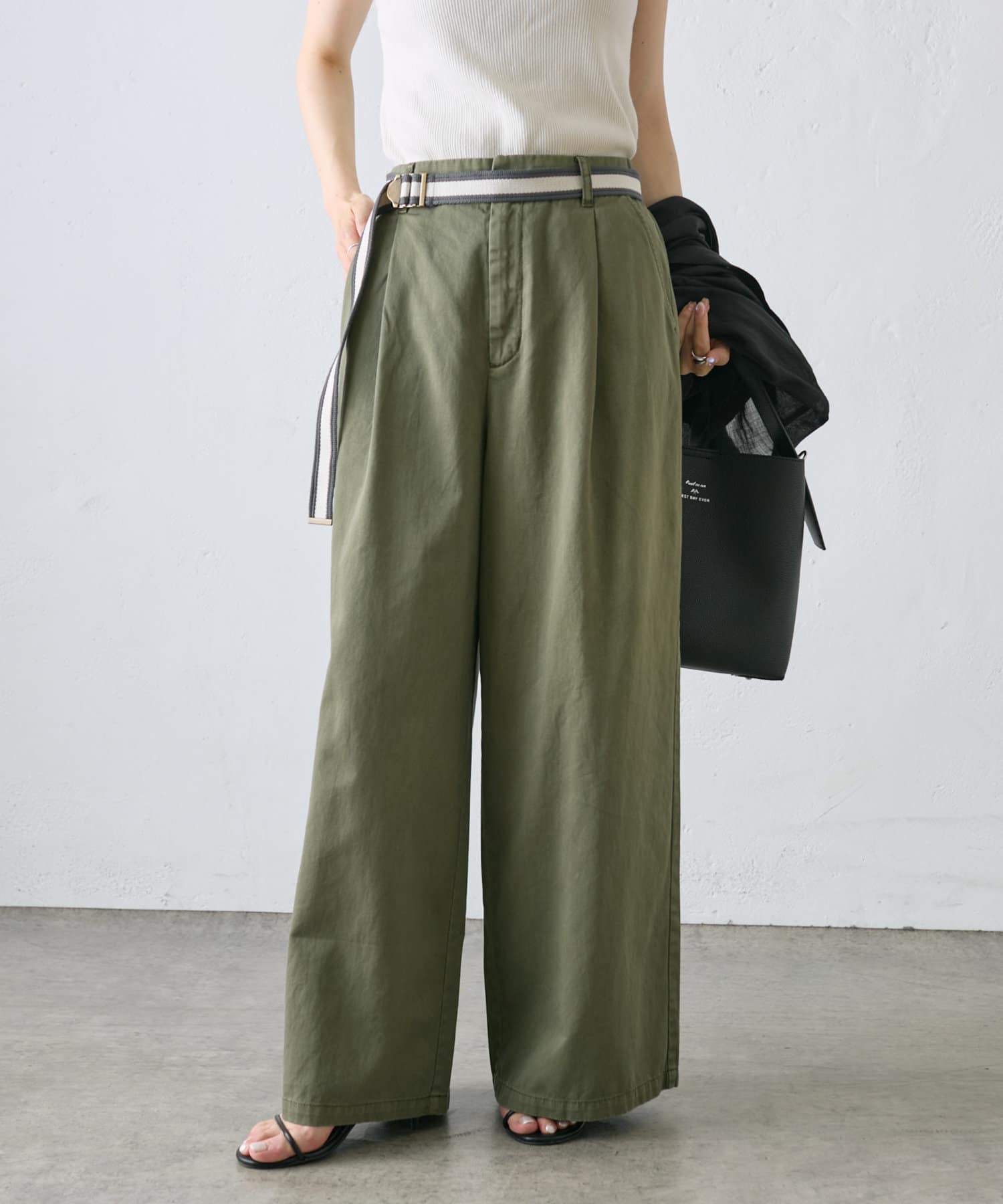【ラインベルト付き】高密度コットンワイドパンツ