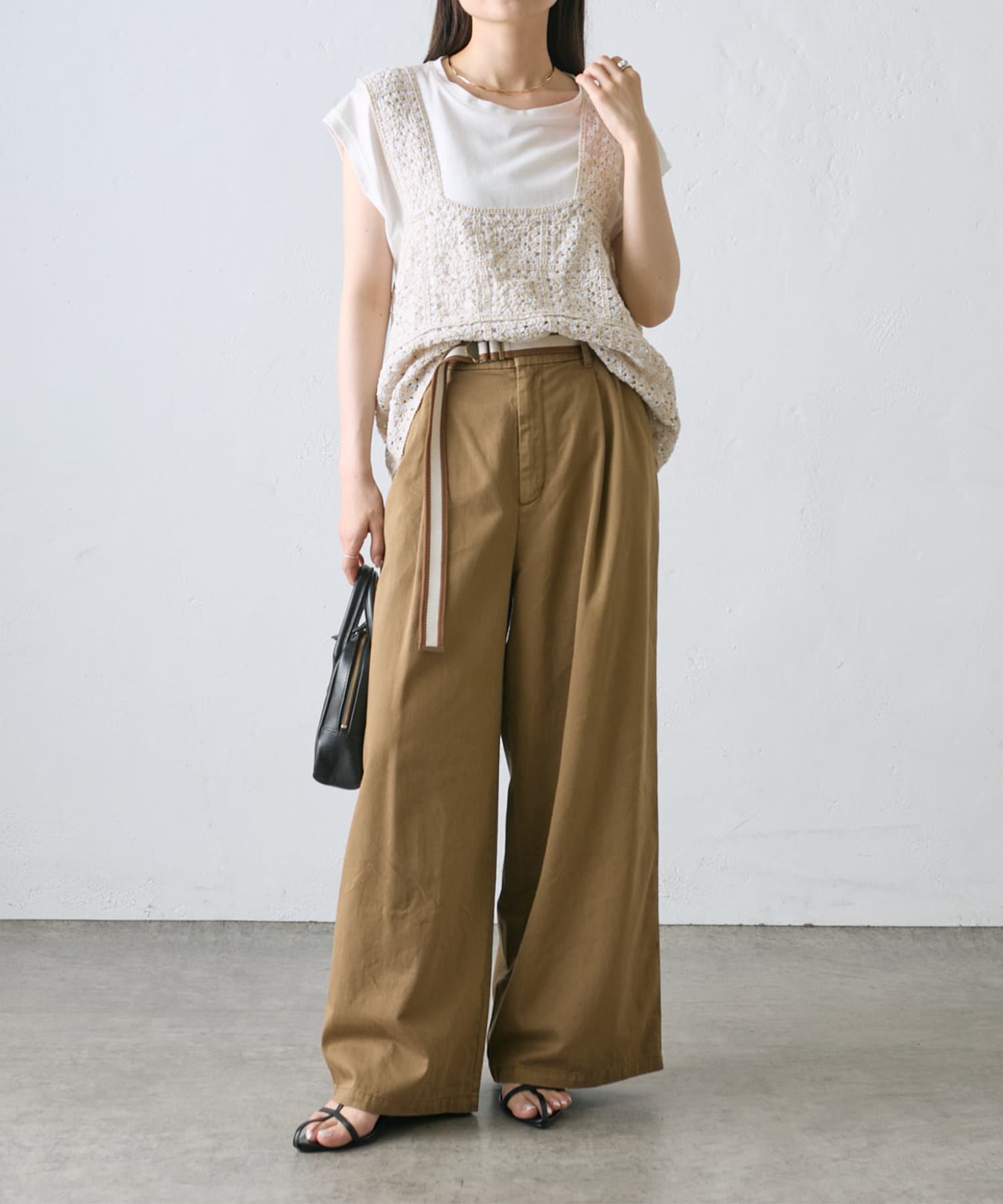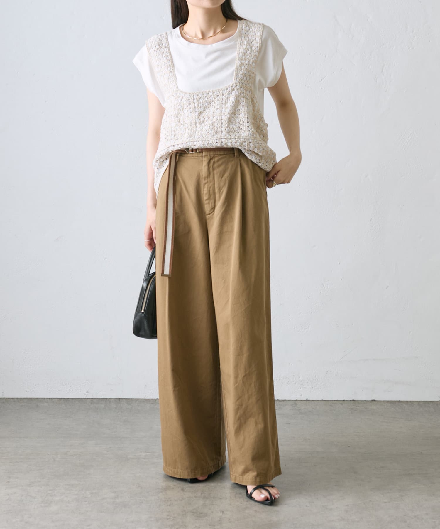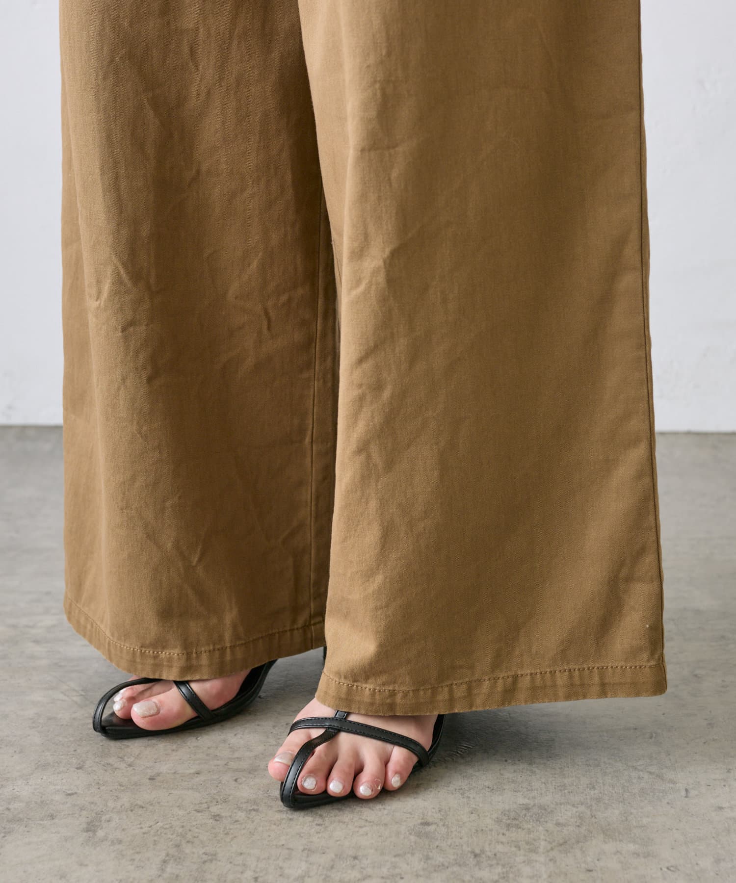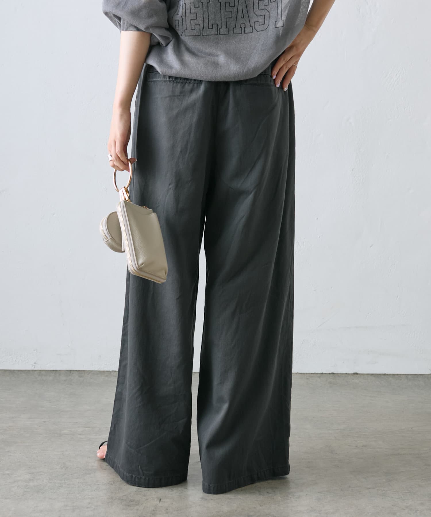 【ラインベルト付き】高密度コットンワイドパンツ