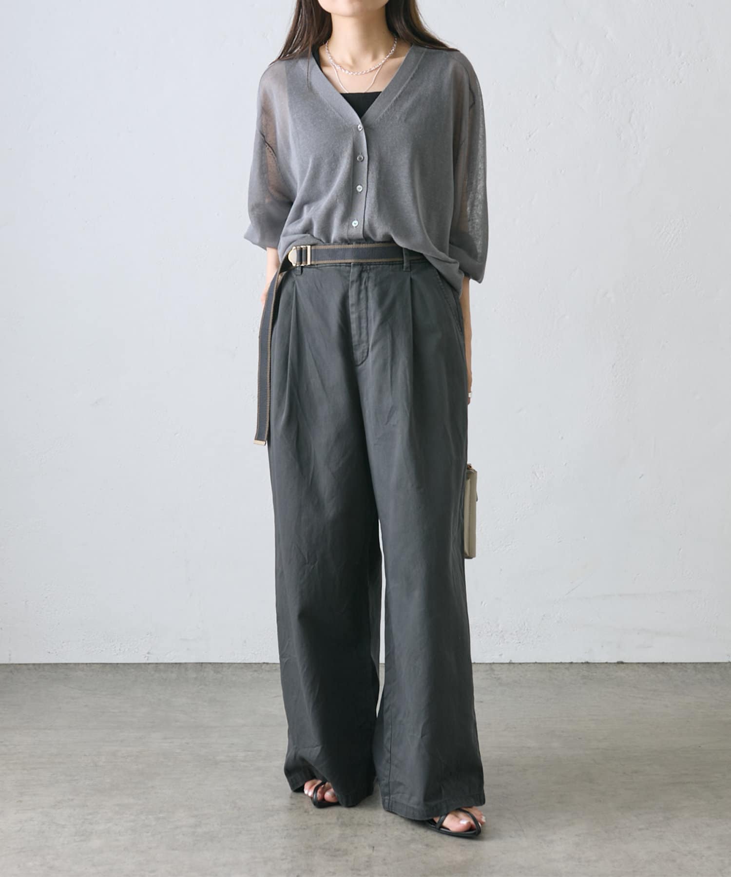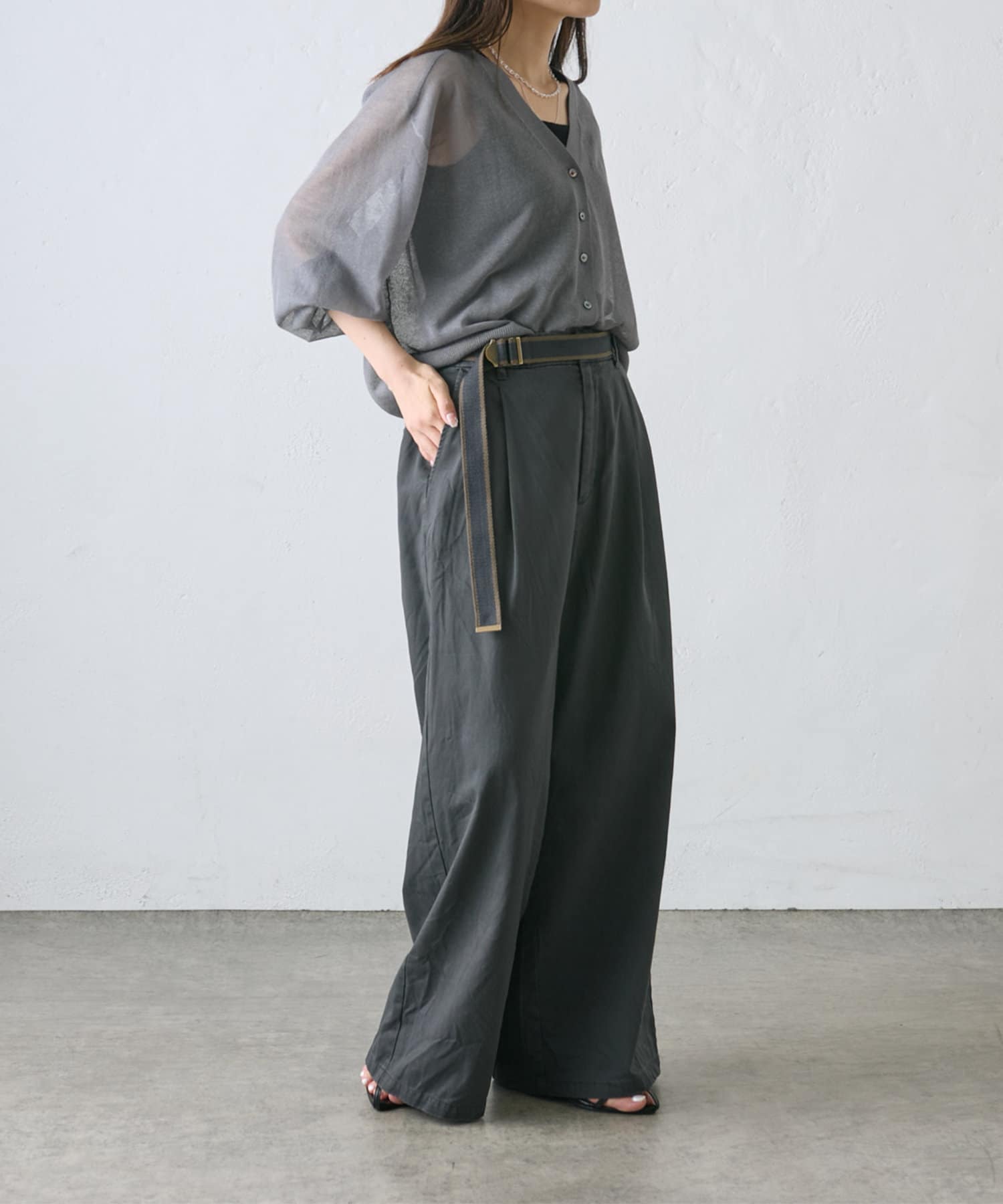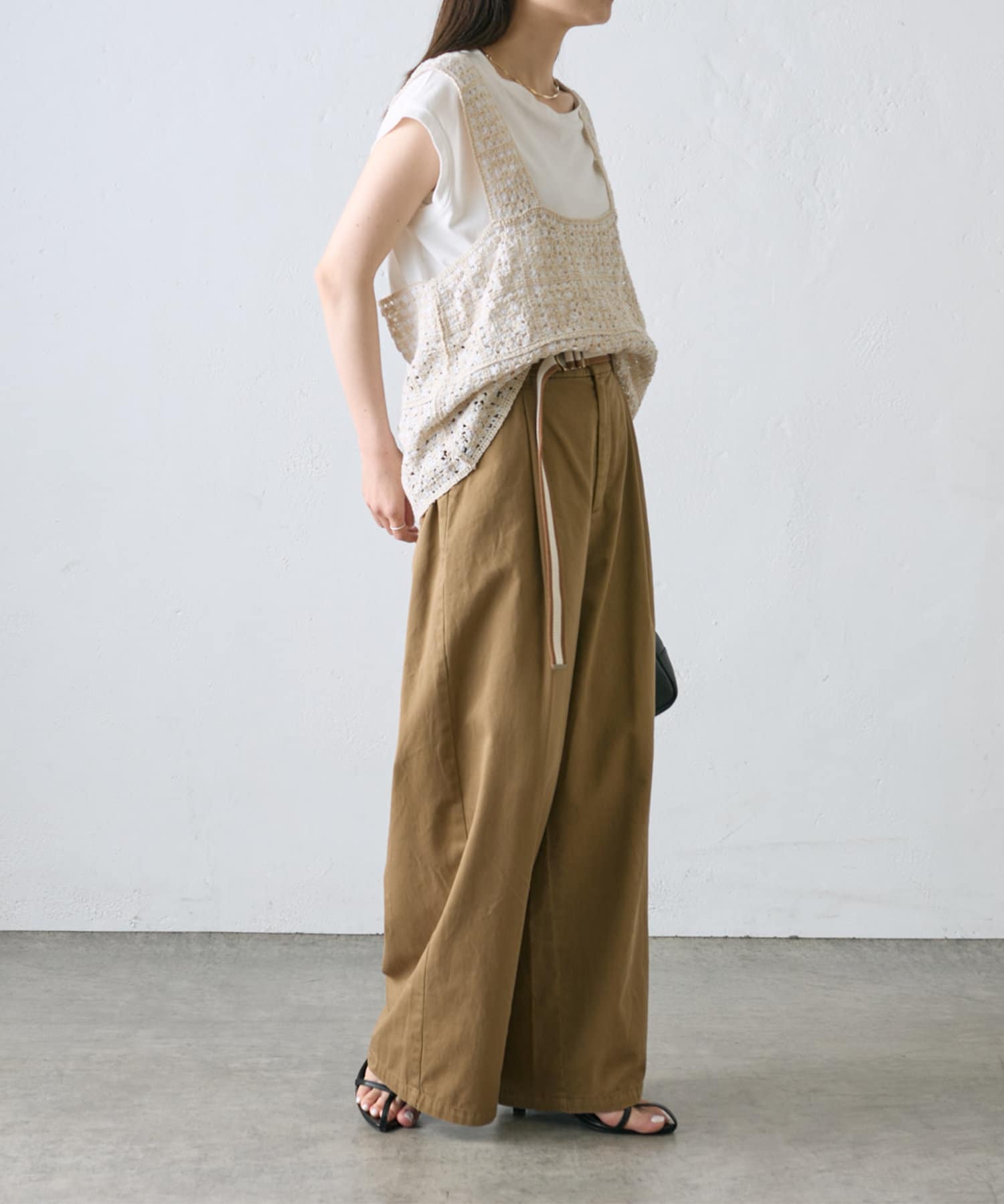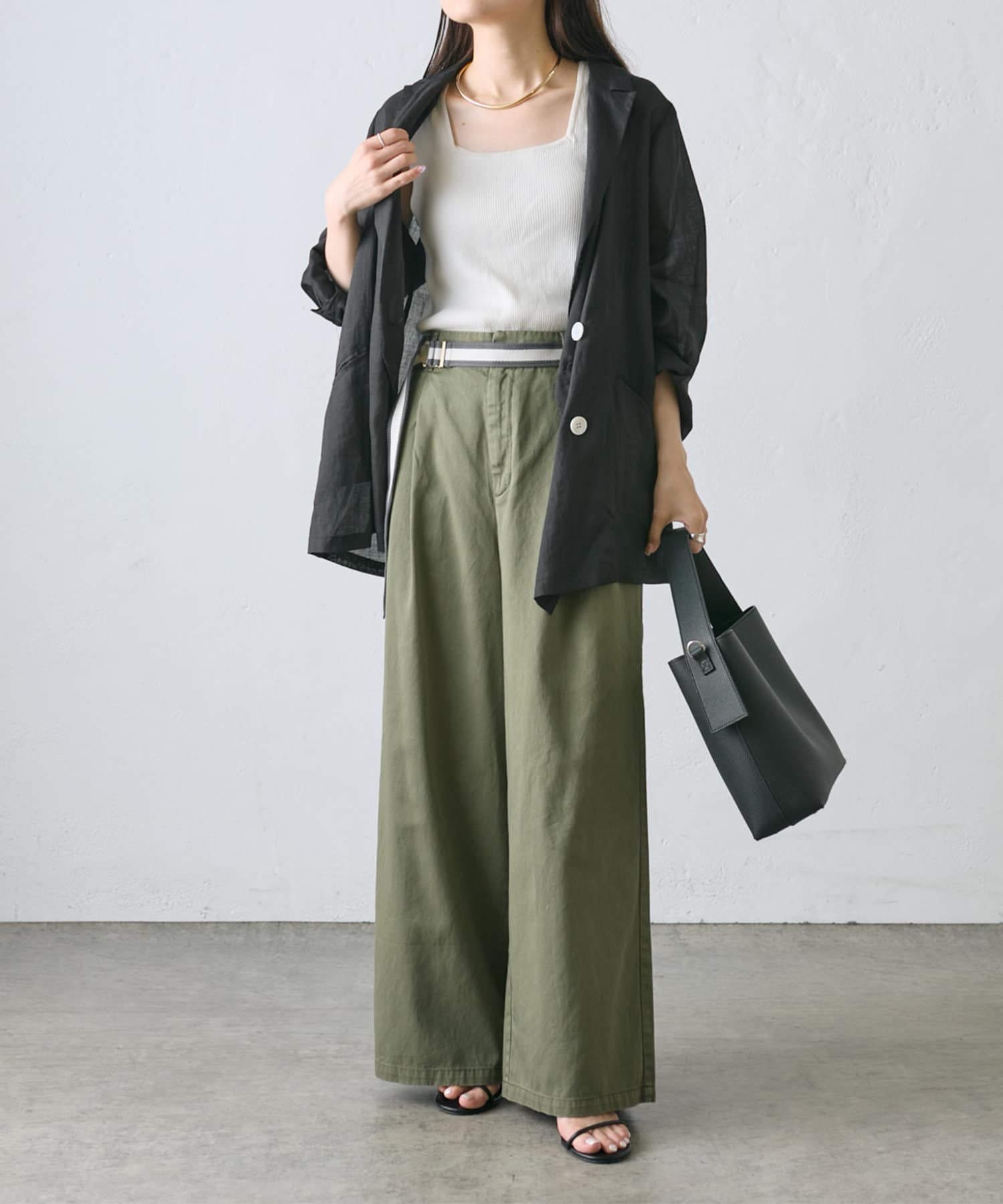 【ラインベルト付き】高密度コットンワイドパンツ