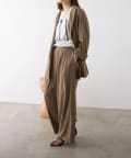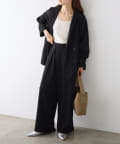 シャツや同素材のダブルテーラードジャケットと合わせたモードな着こなしも◎