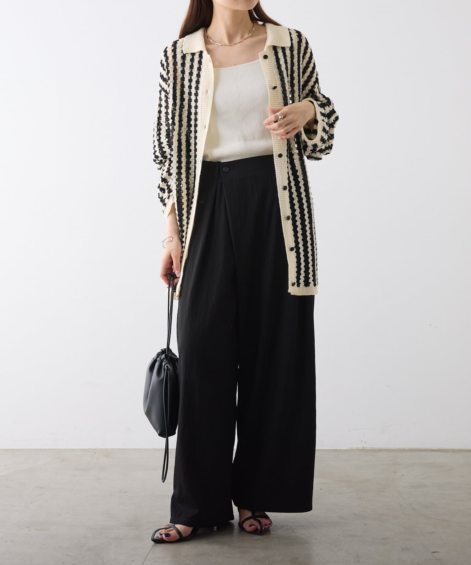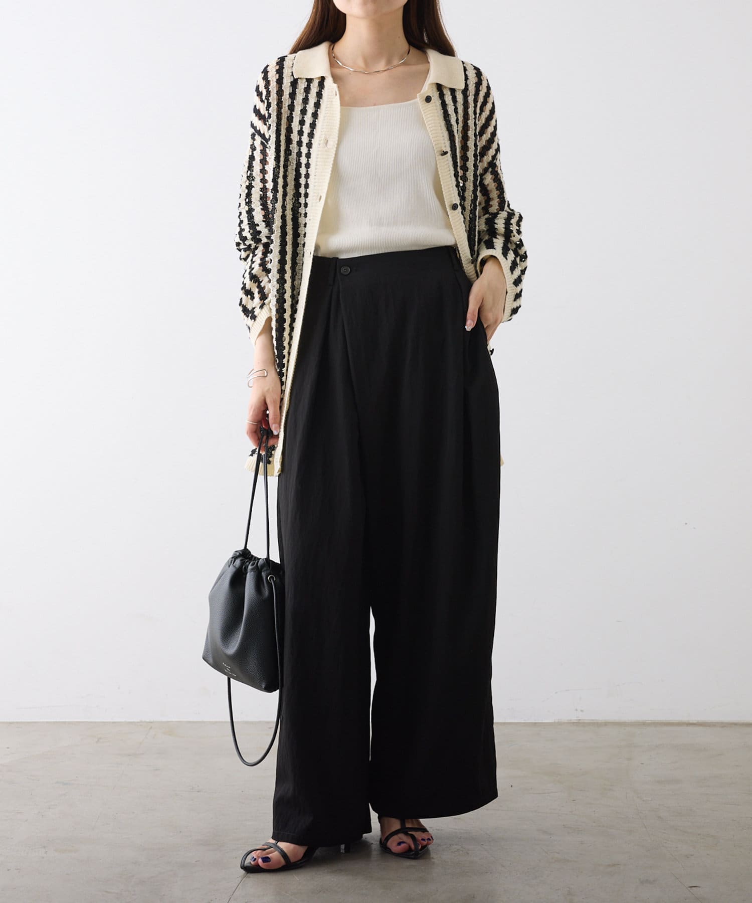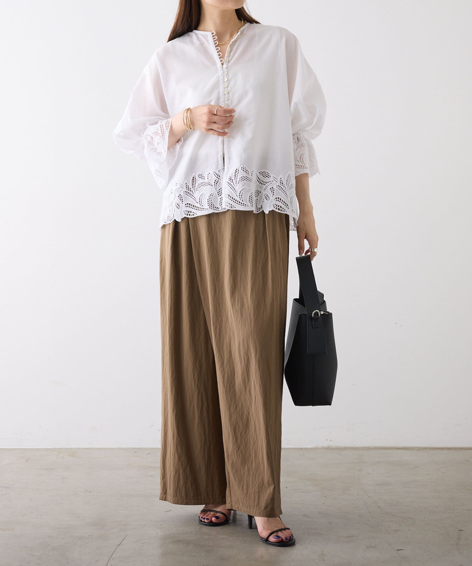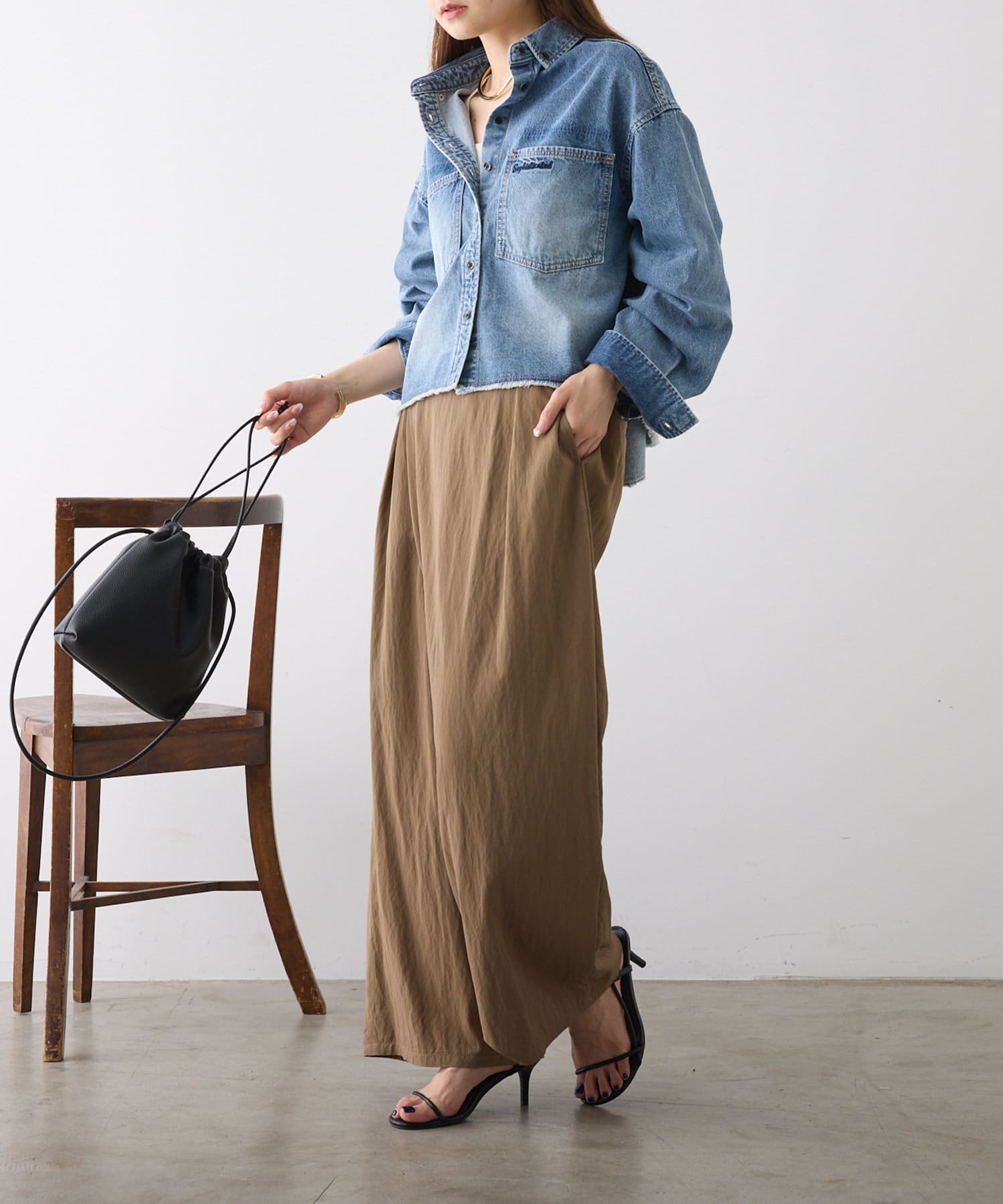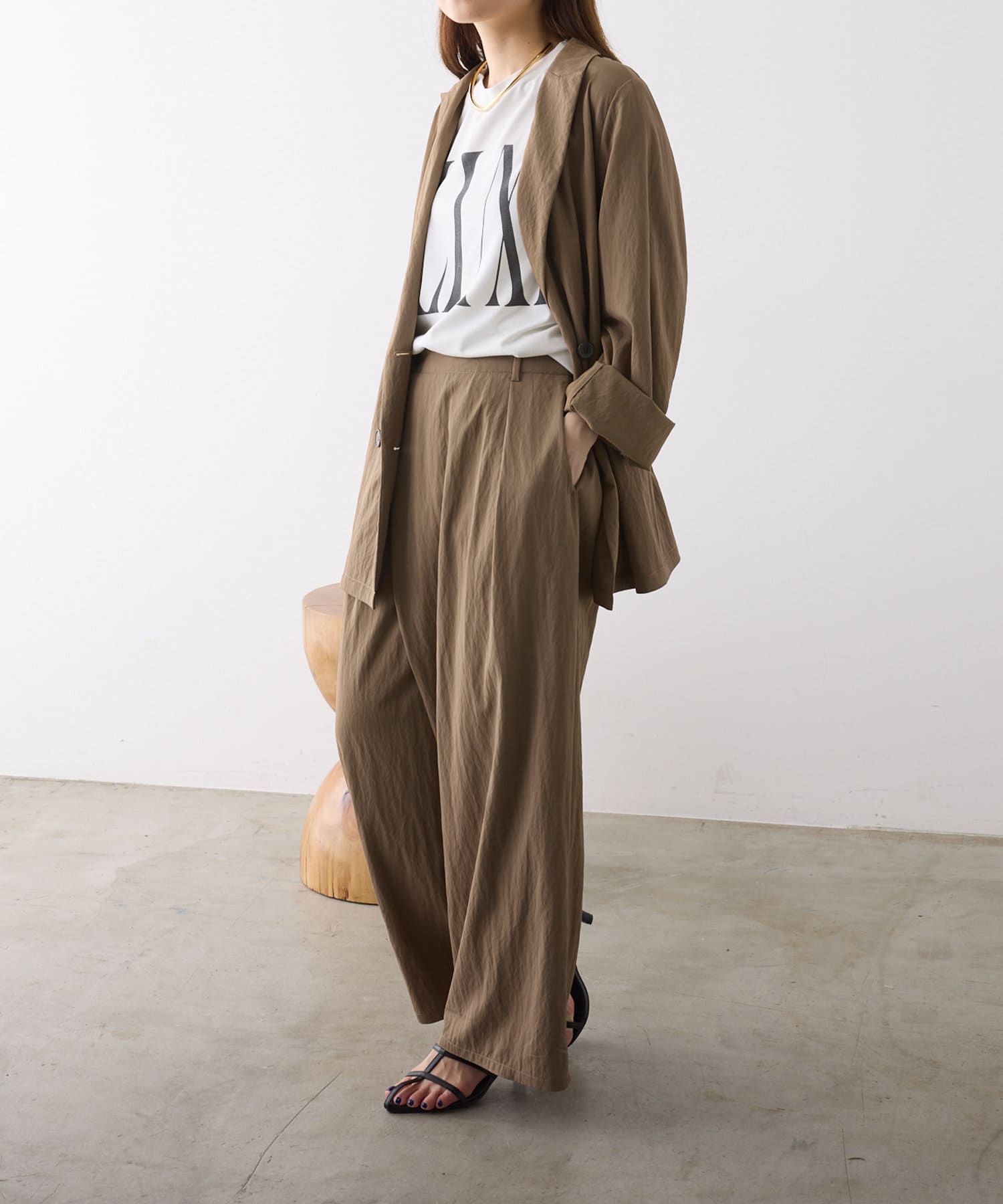 暑い季節にはTシャツなどカットソー合わせでも品よく決まる1枚。