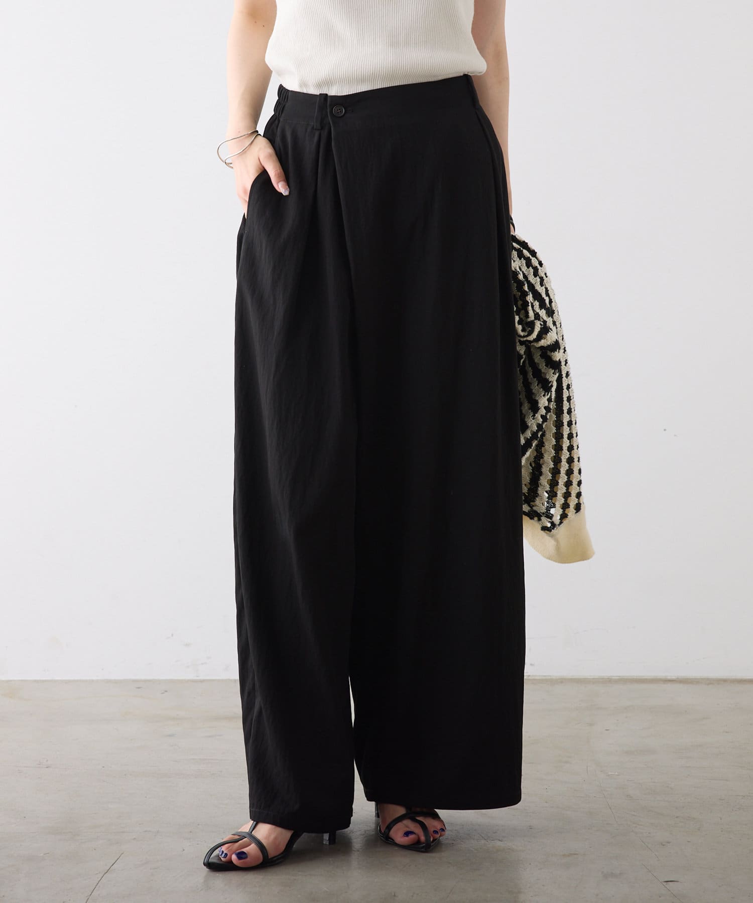 レーヨンナイロンラップワイドスラックス