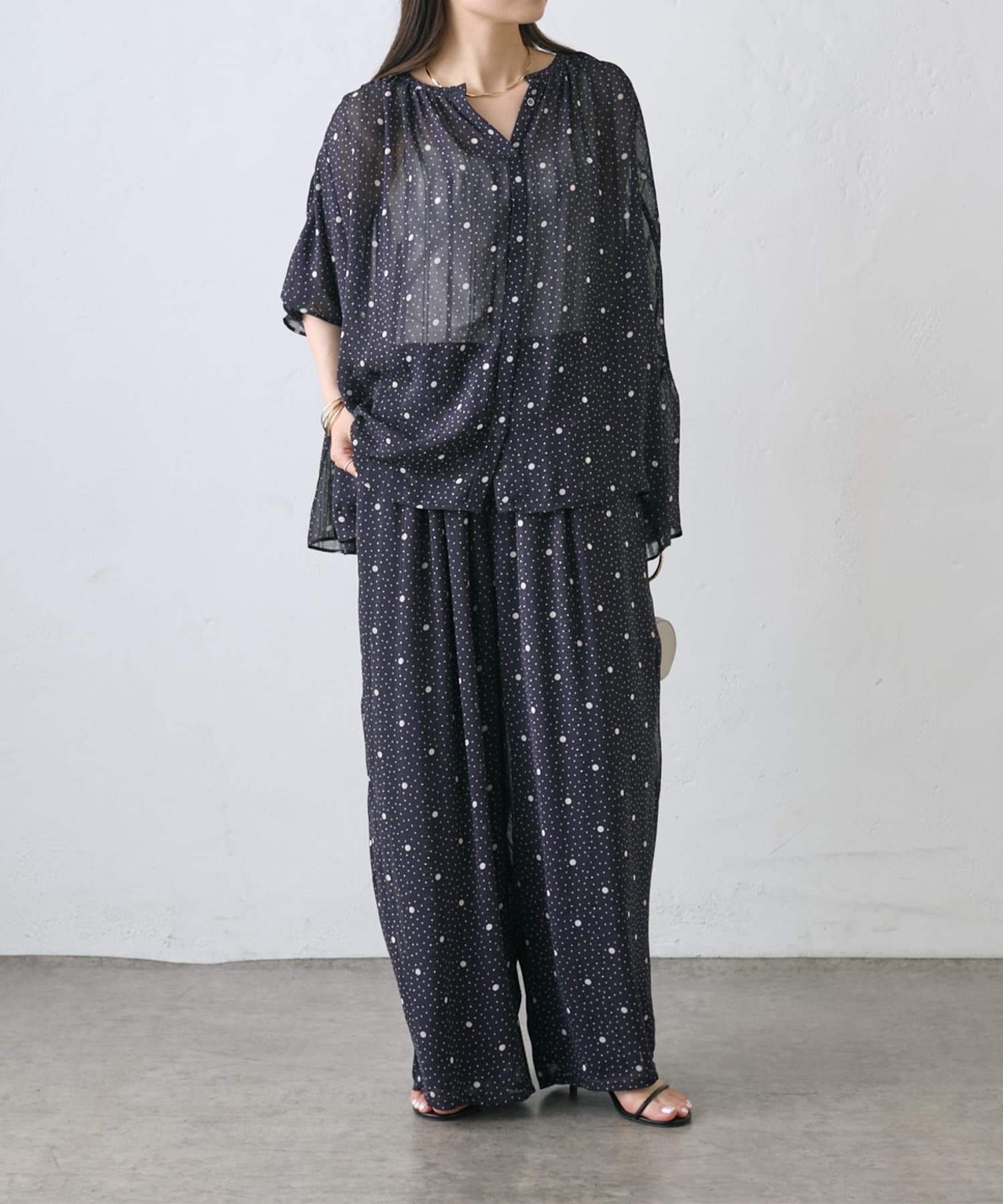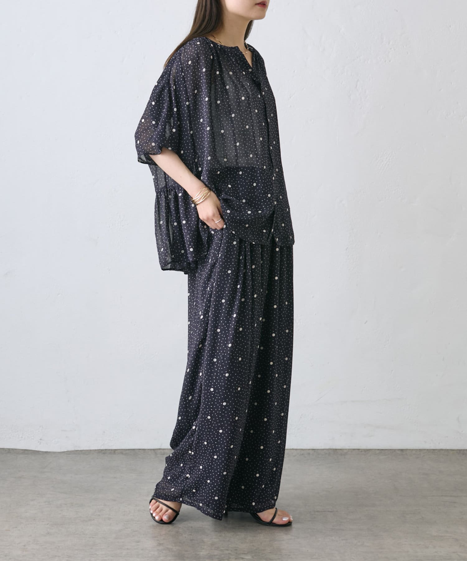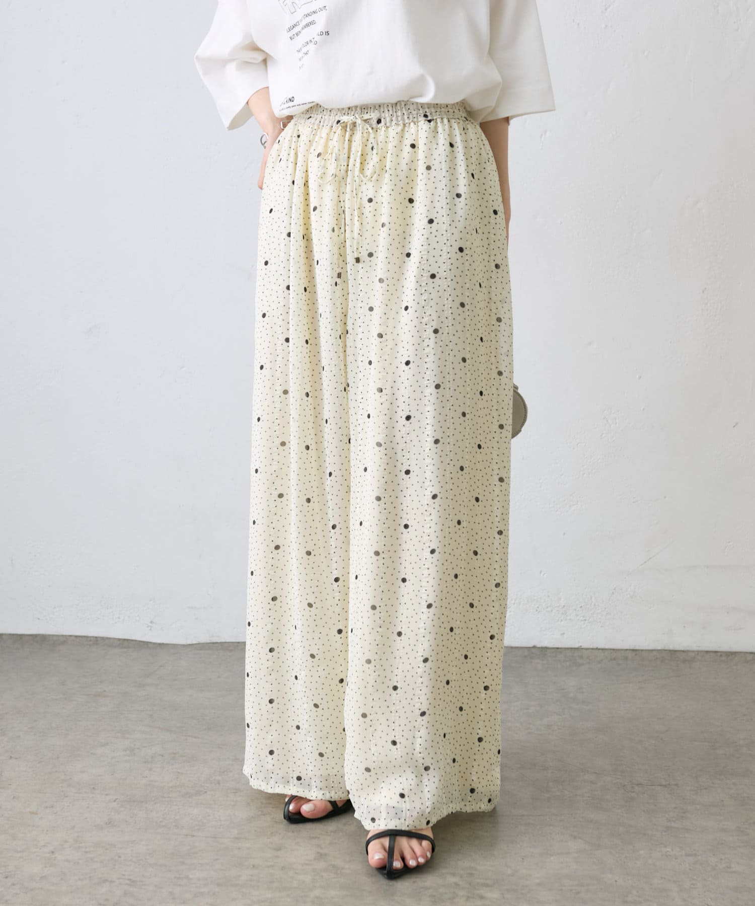 • PUAL CE CIN(ピュアルセシン) ドットシフォンイージーパンツ