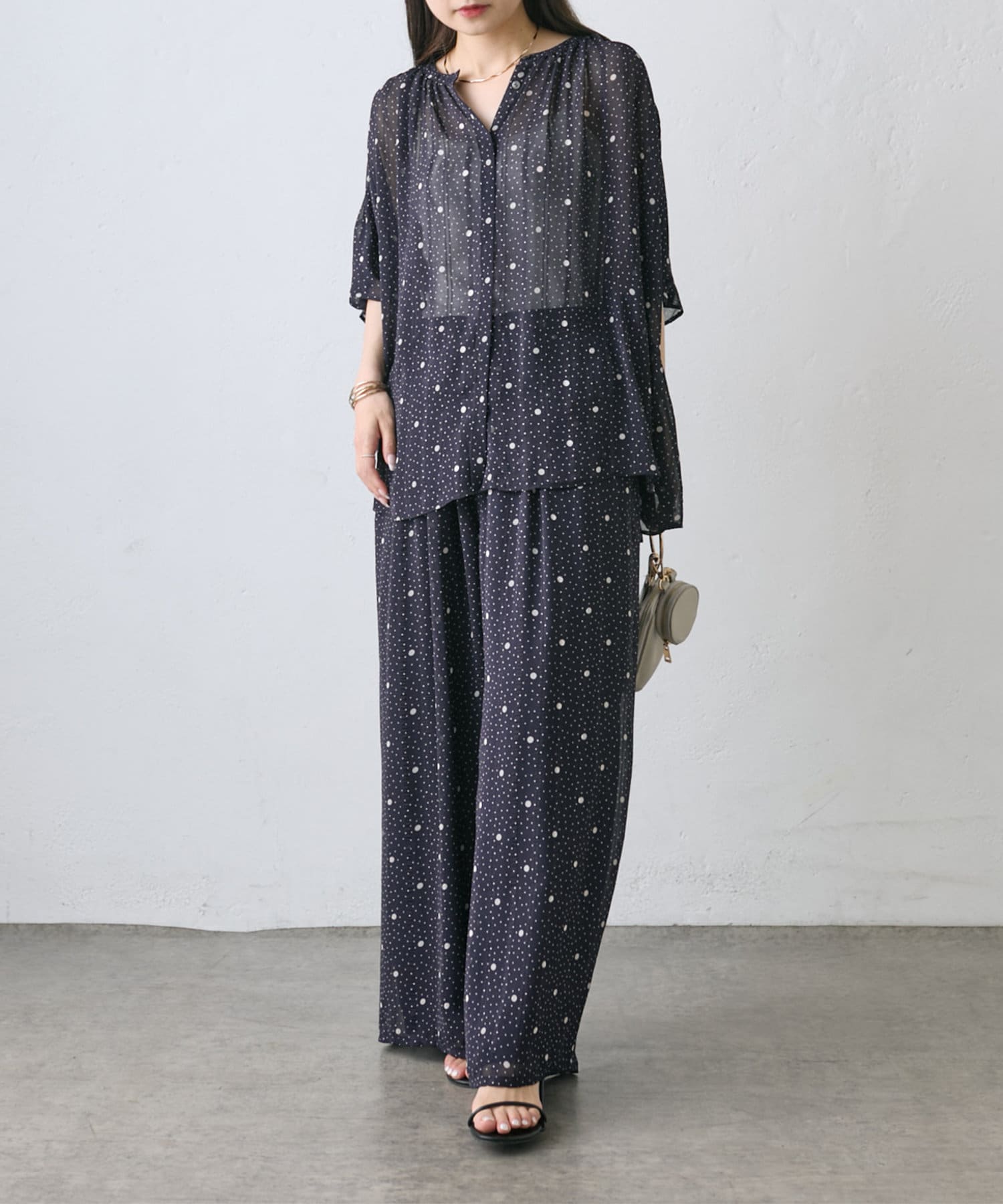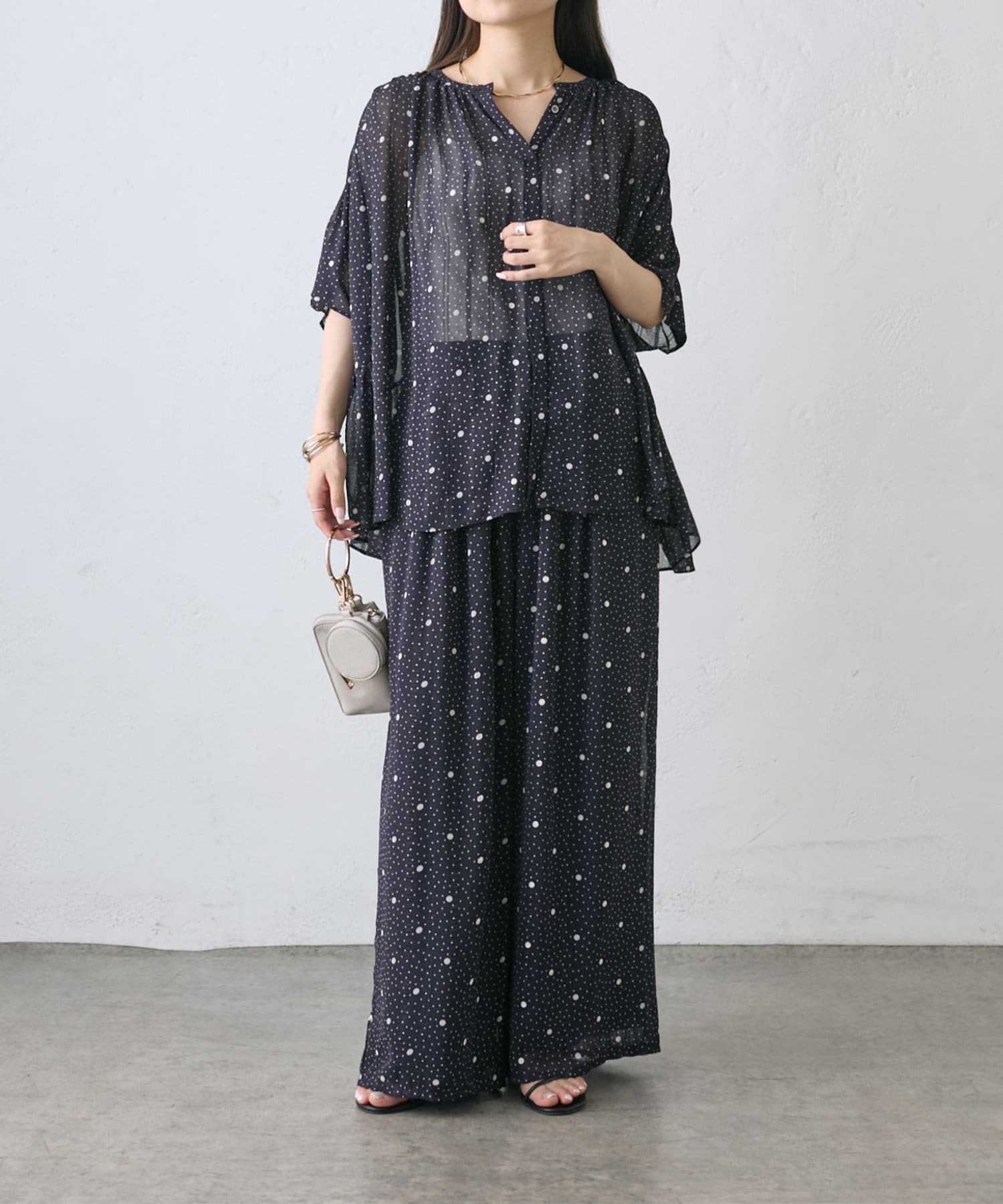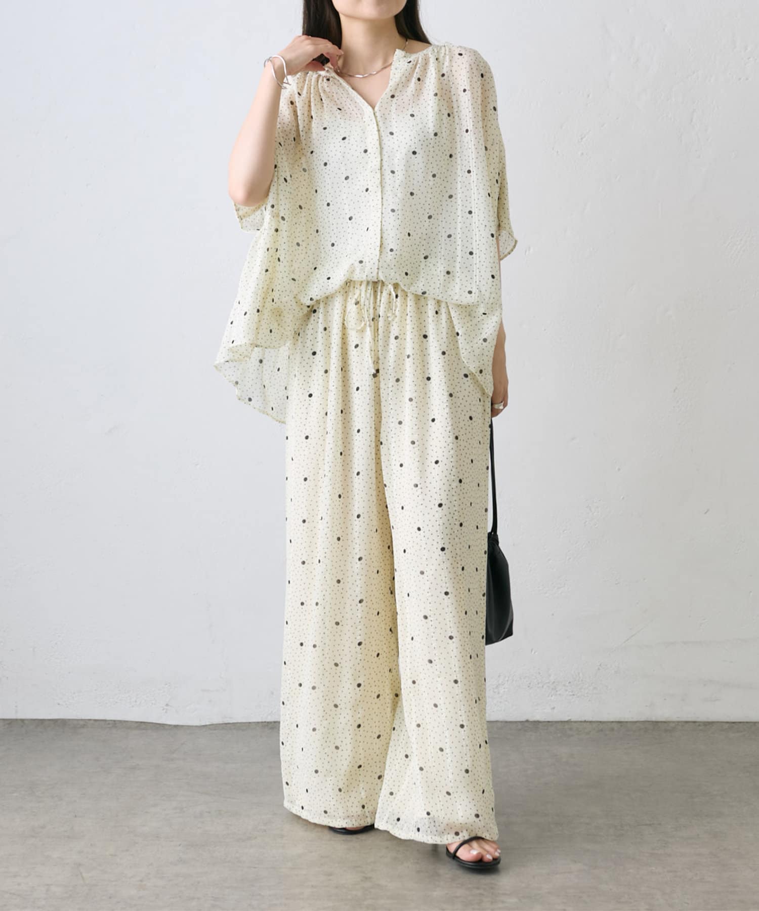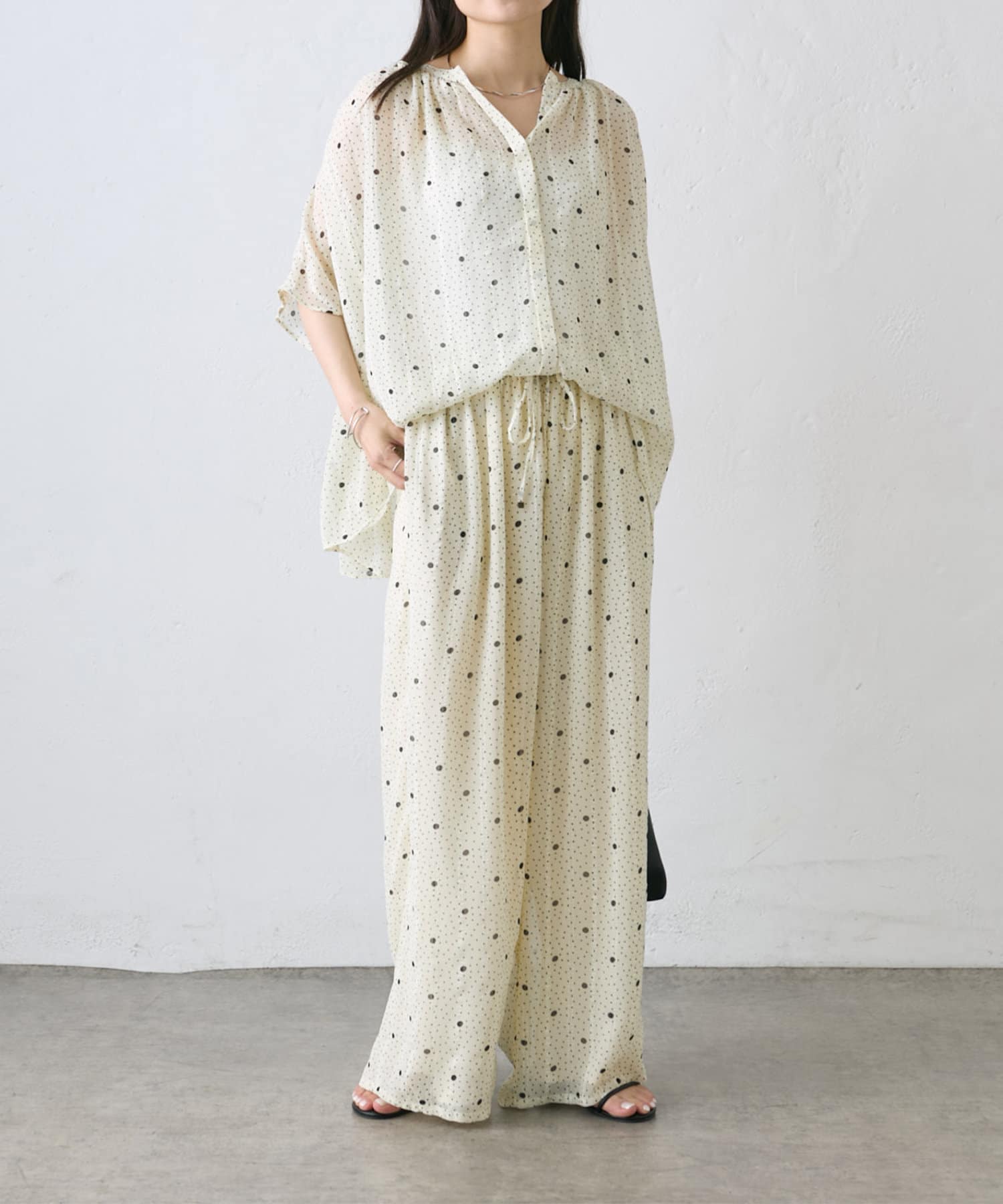 • PUAL CE CIN(ピュアルセシン) ドットシフォンイージーパンツ