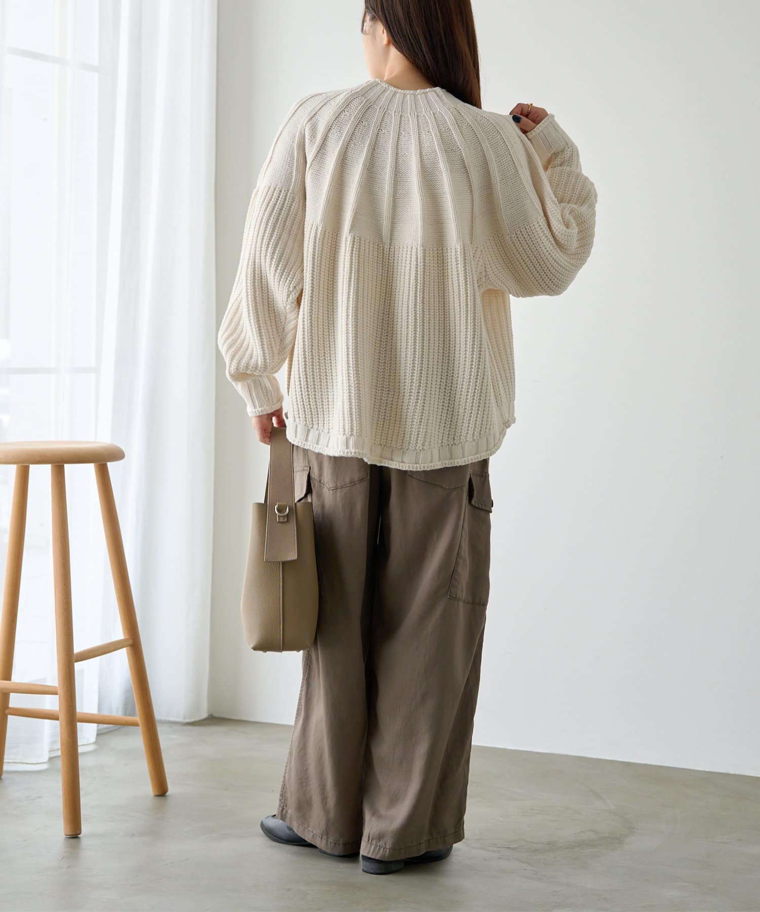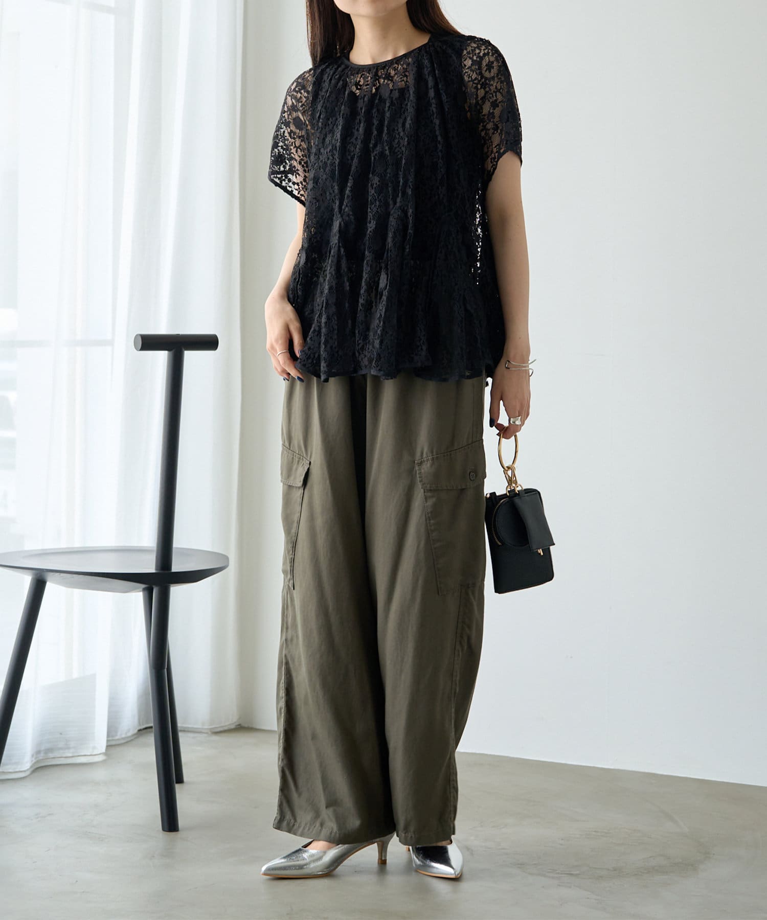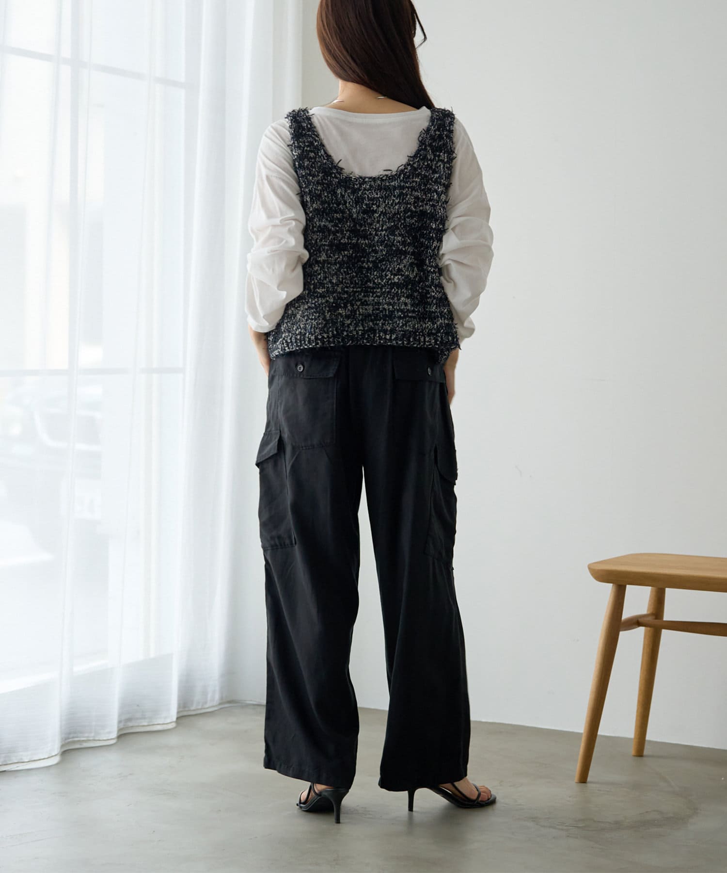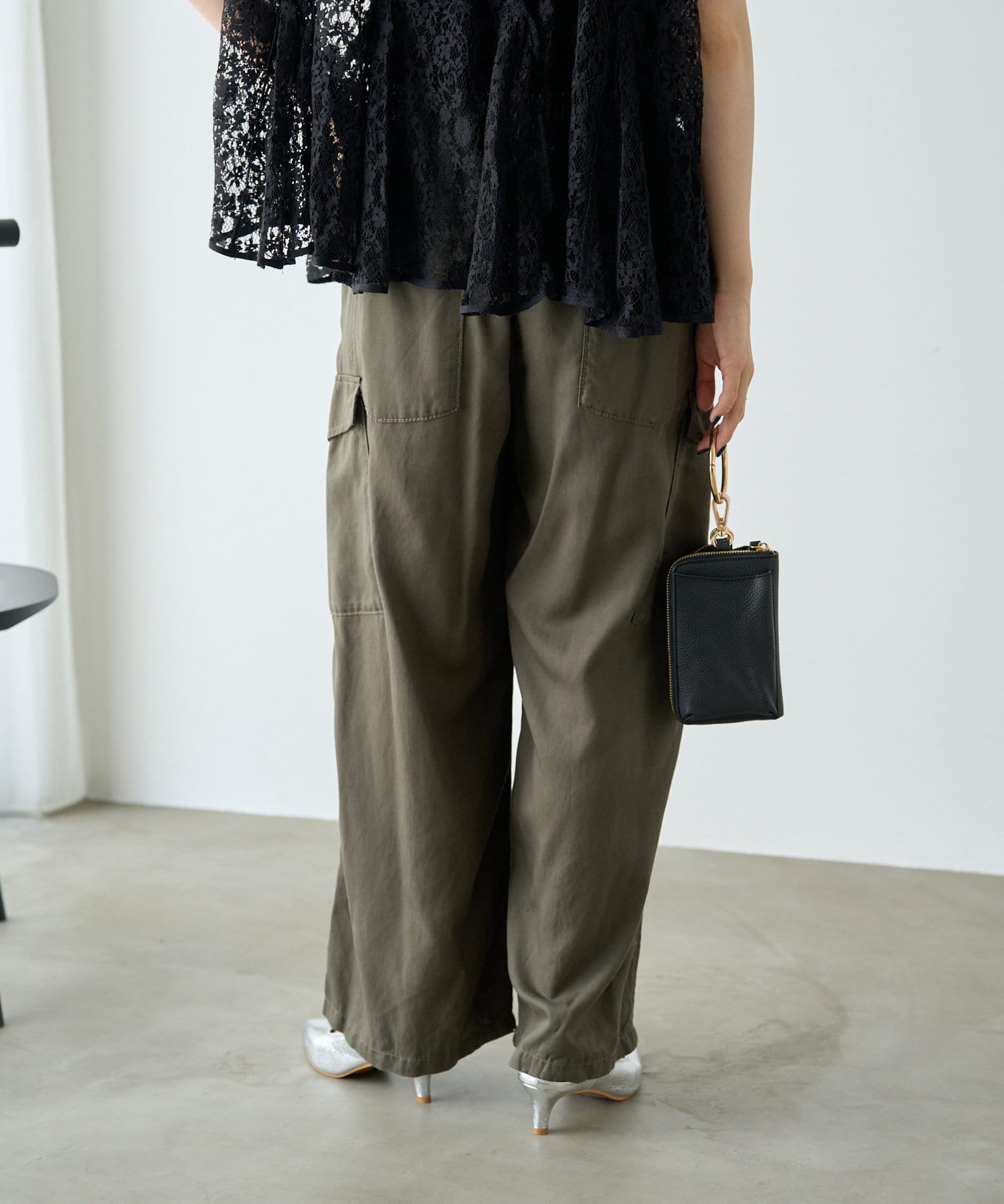 リネンテンセルの素材が女性らしいカーゴディテールパンツ。