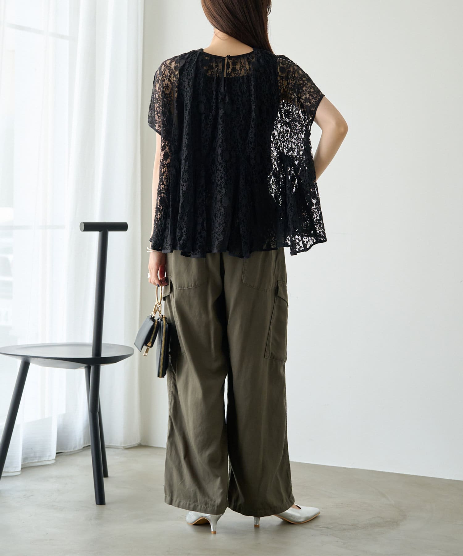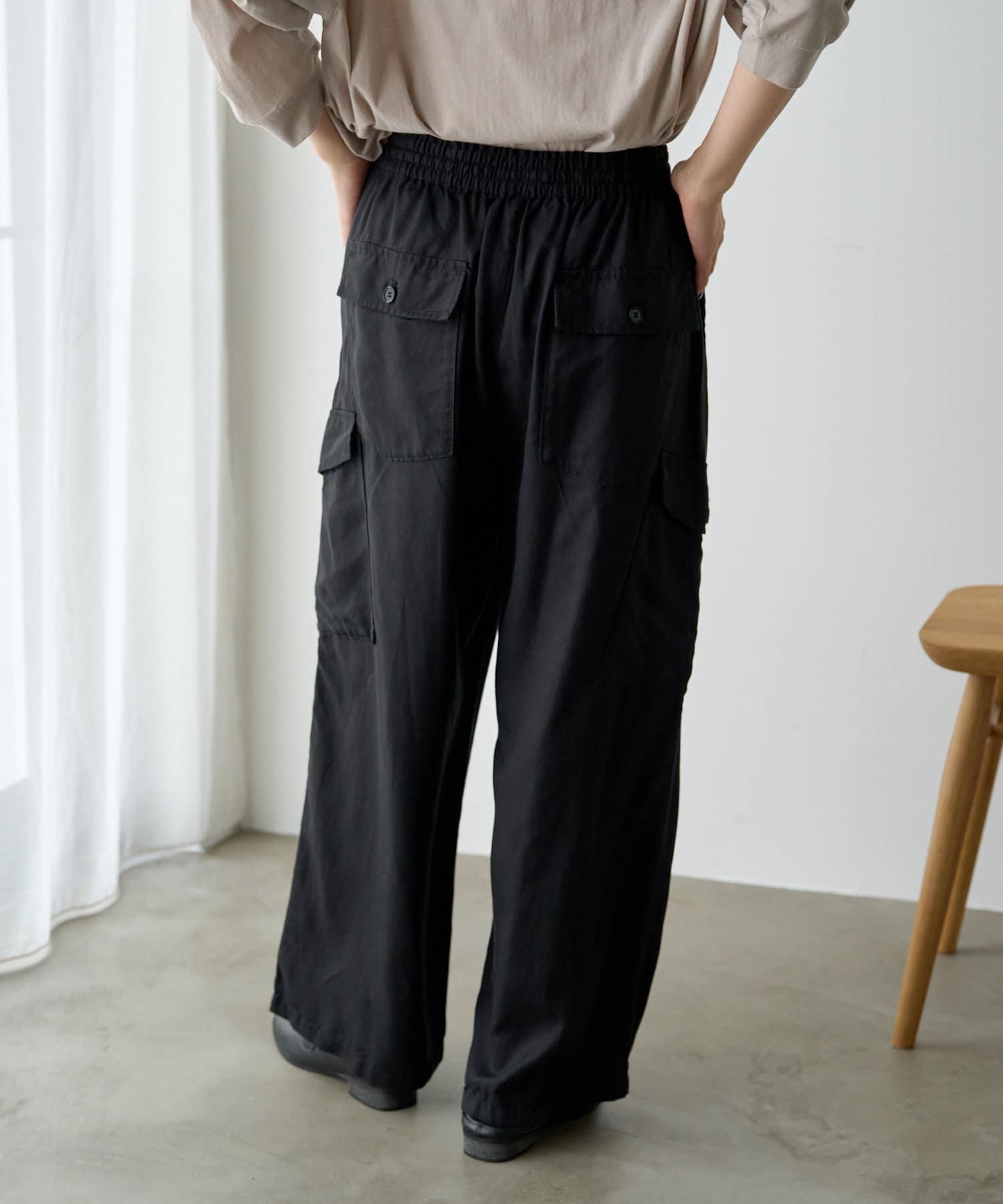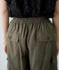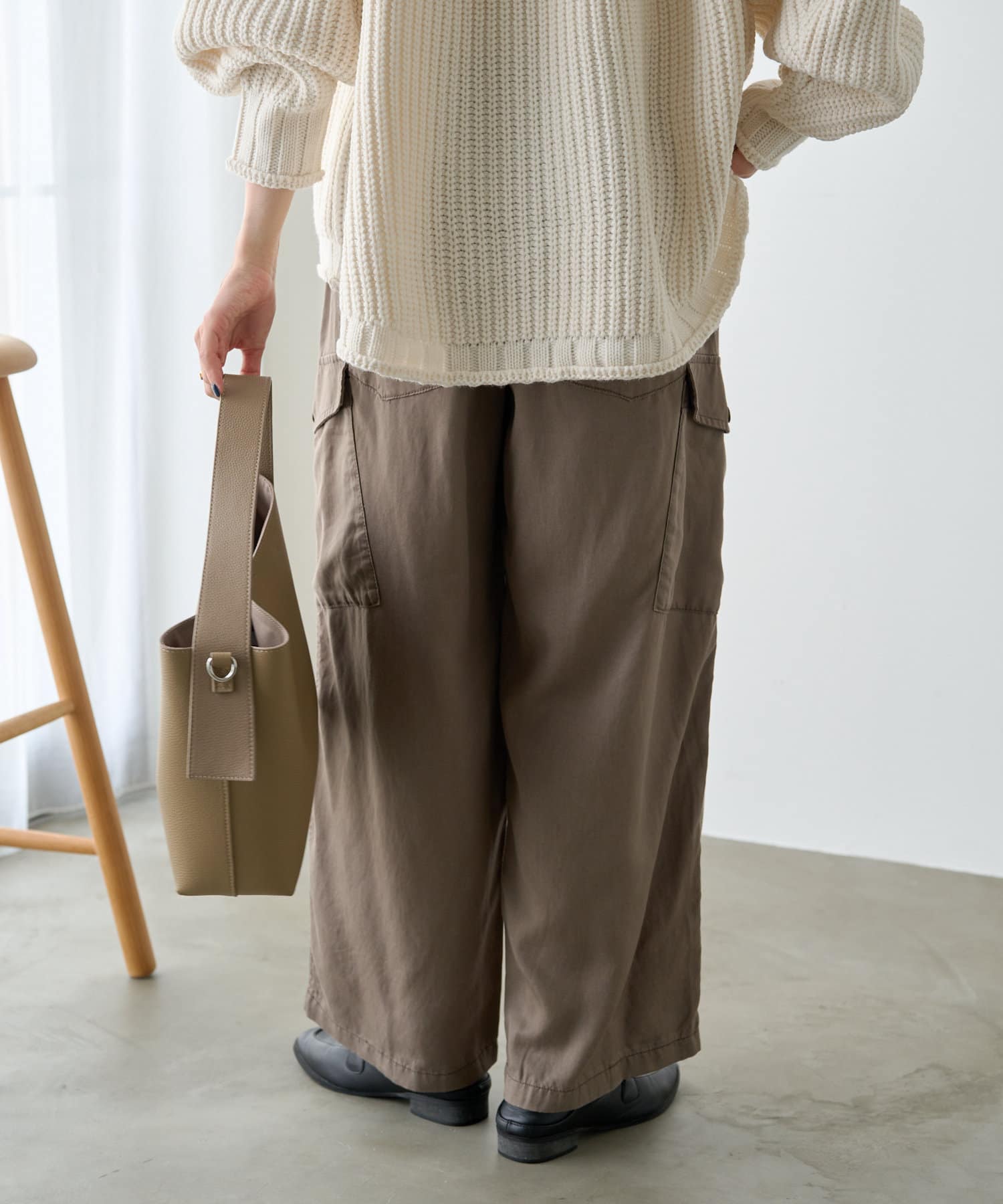リネンテンセルの素材が女性らしいカーゴディテールパンツ。