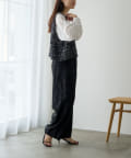 レースやブラウスなどのフェミニンなアイテムと合わせて
