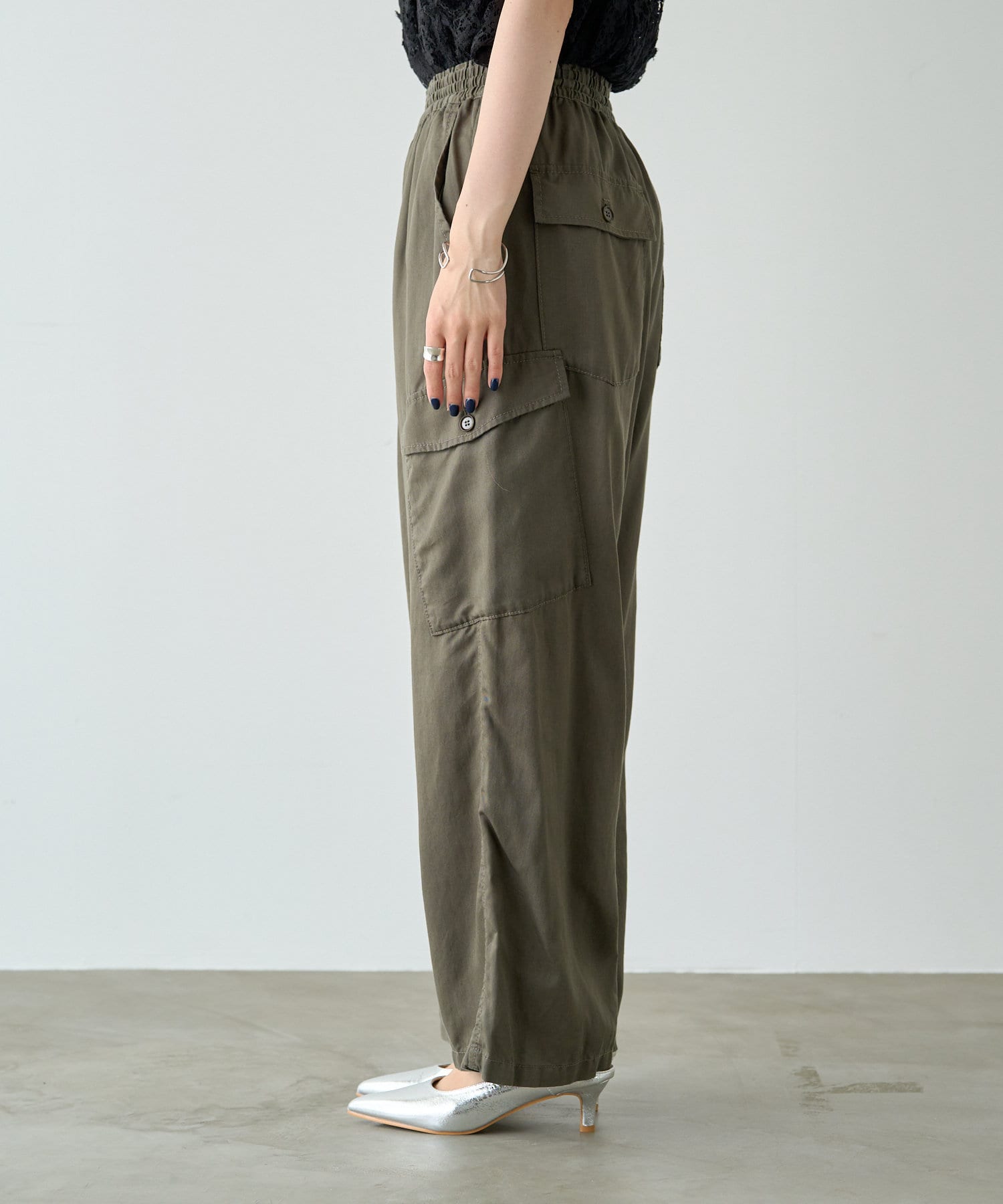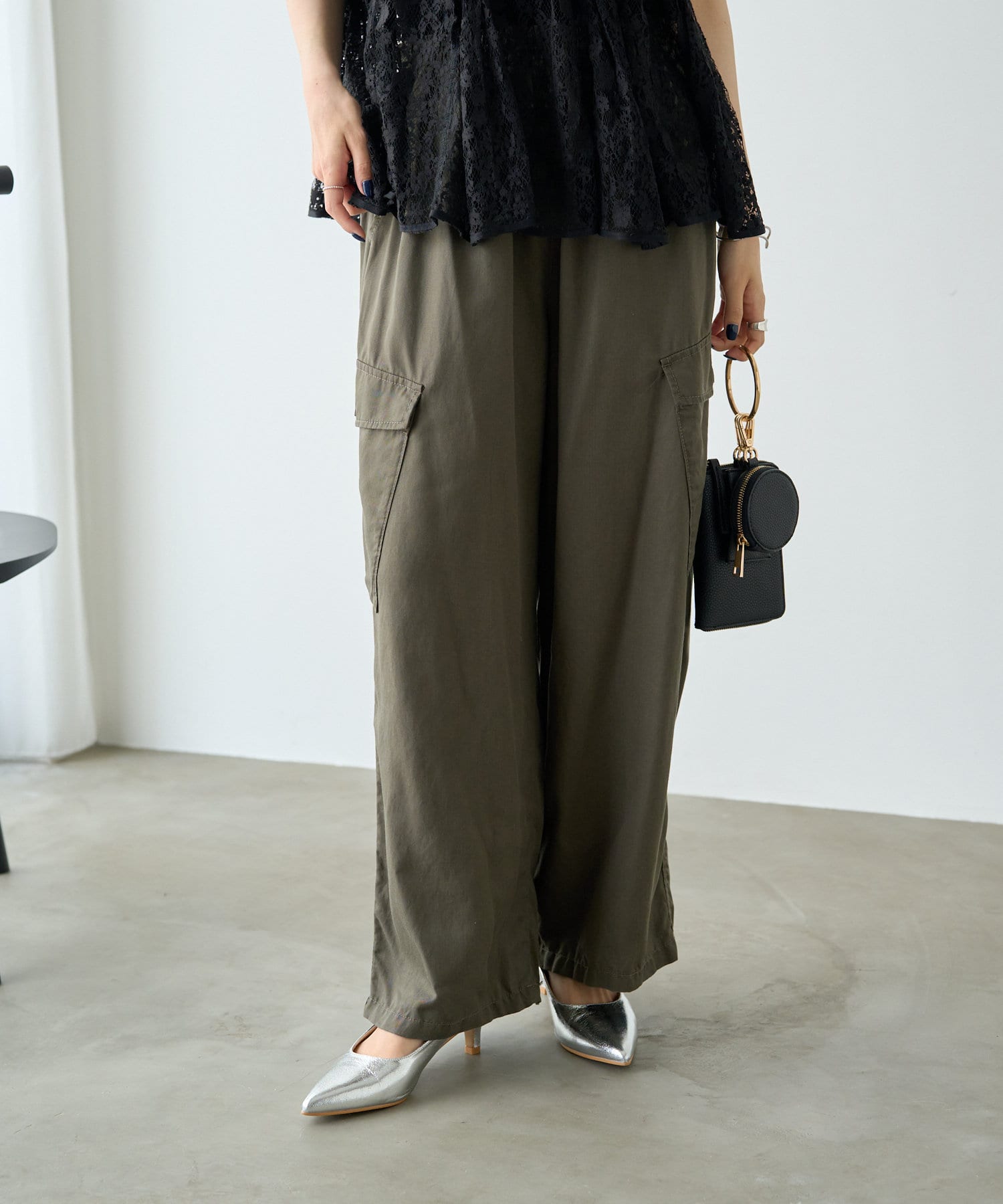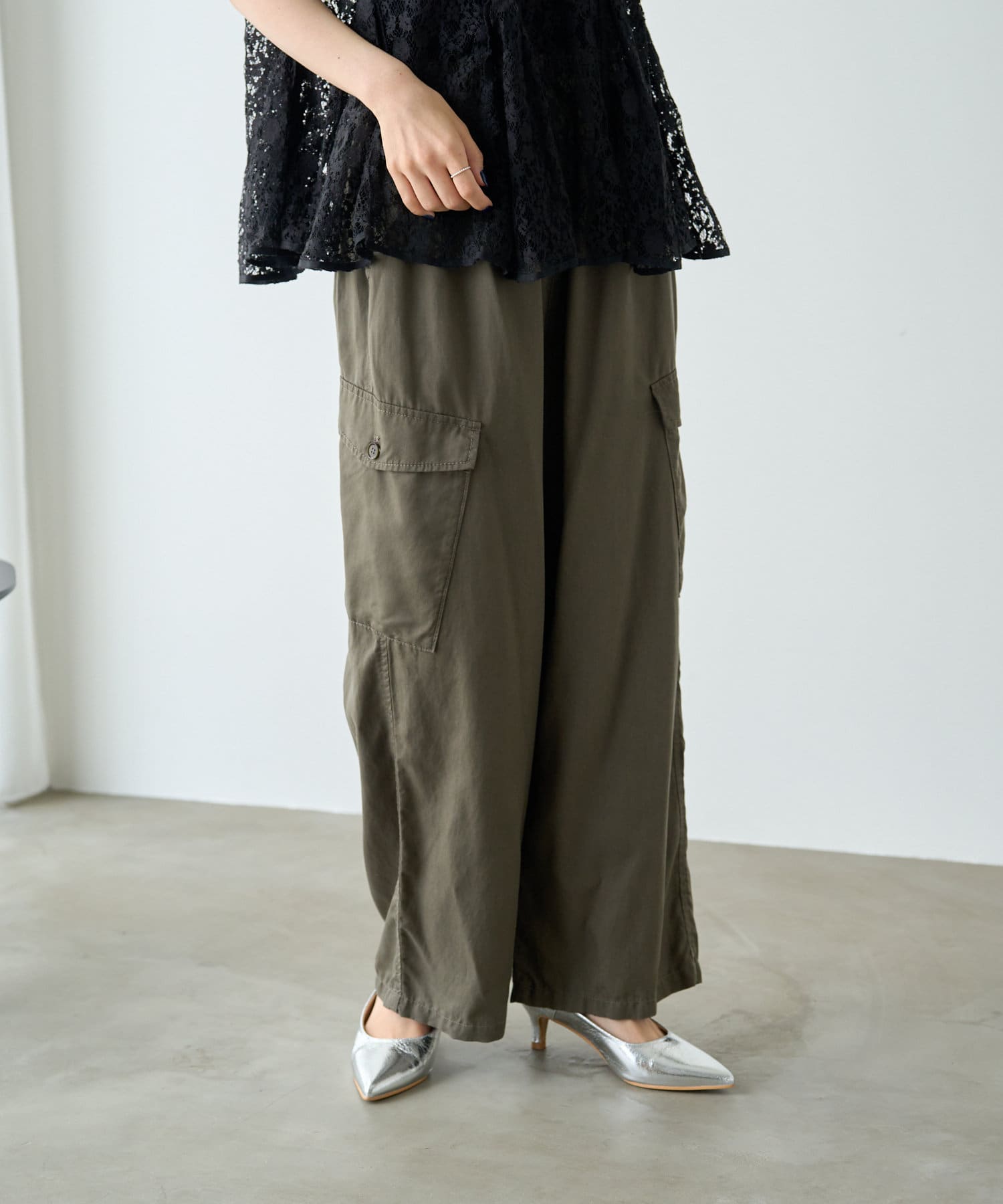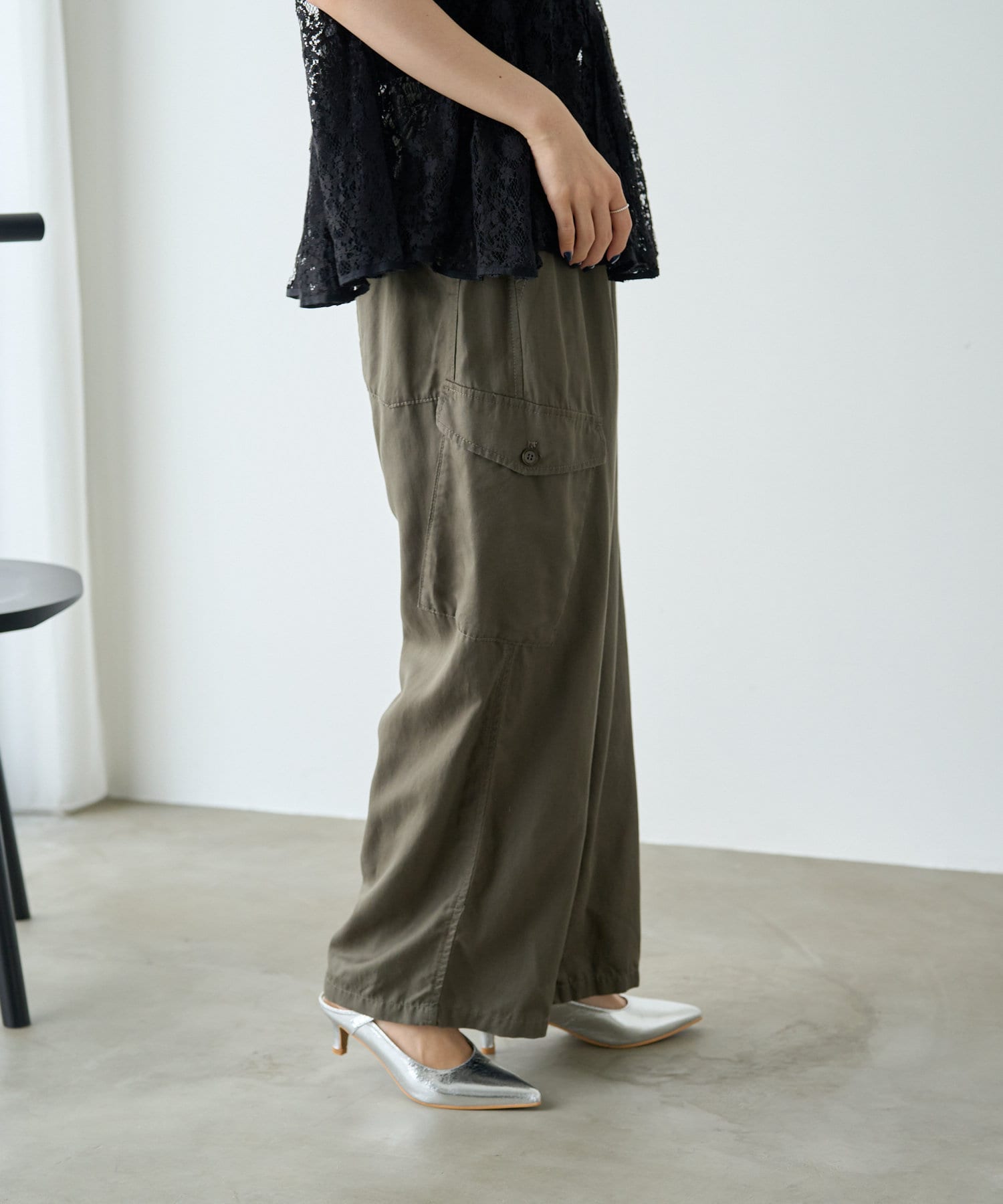 リネンテンセルの素材が女性らしいカーゴディテールパンツ。