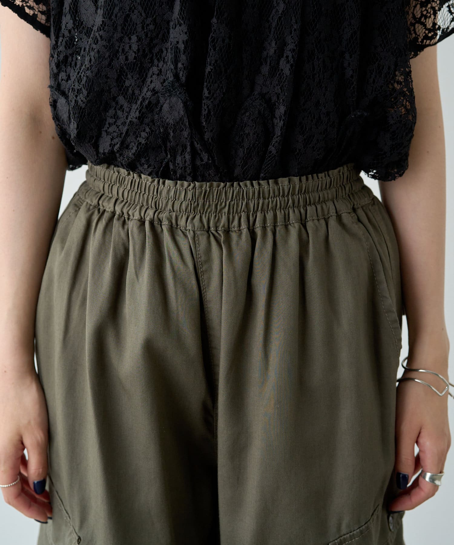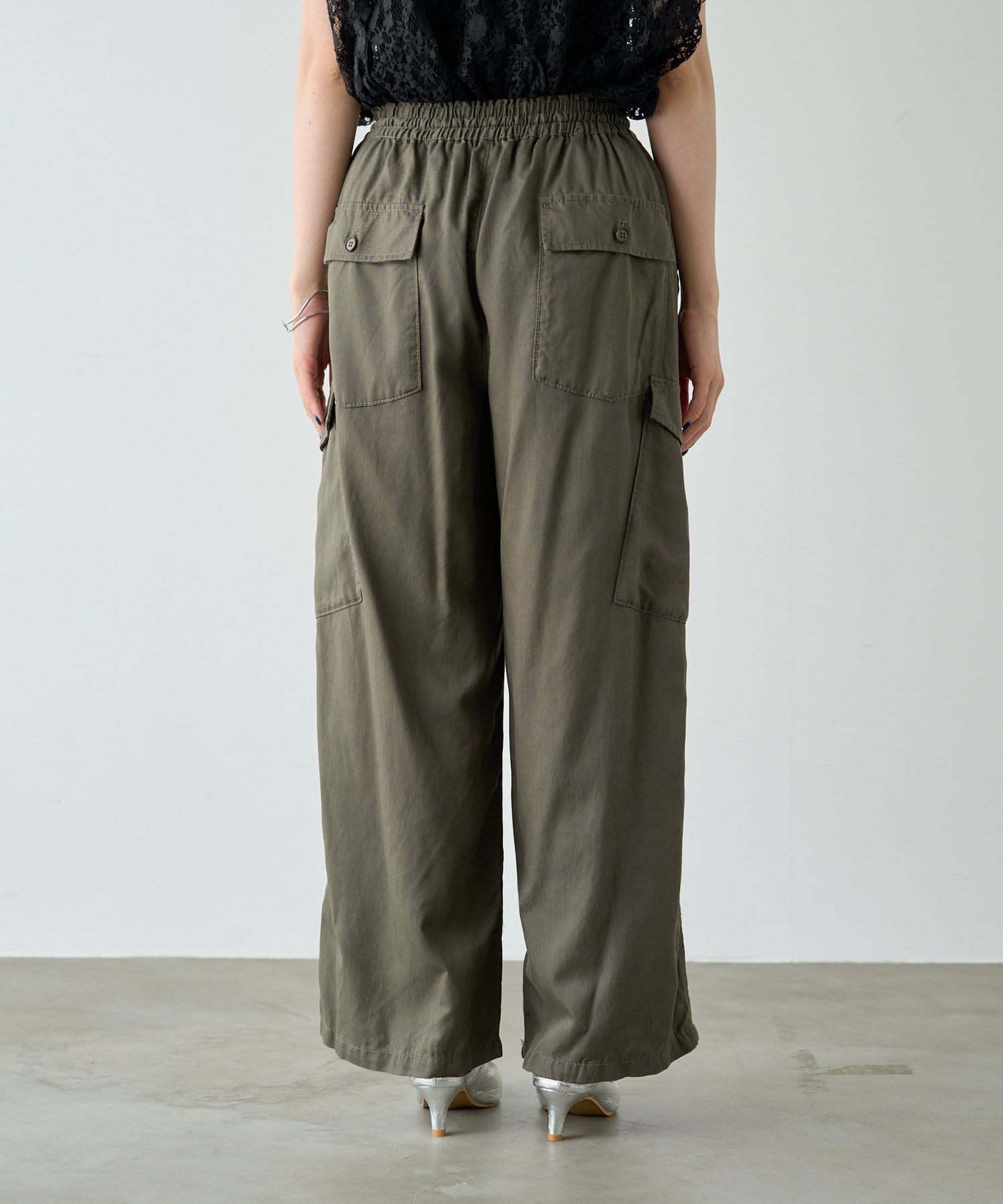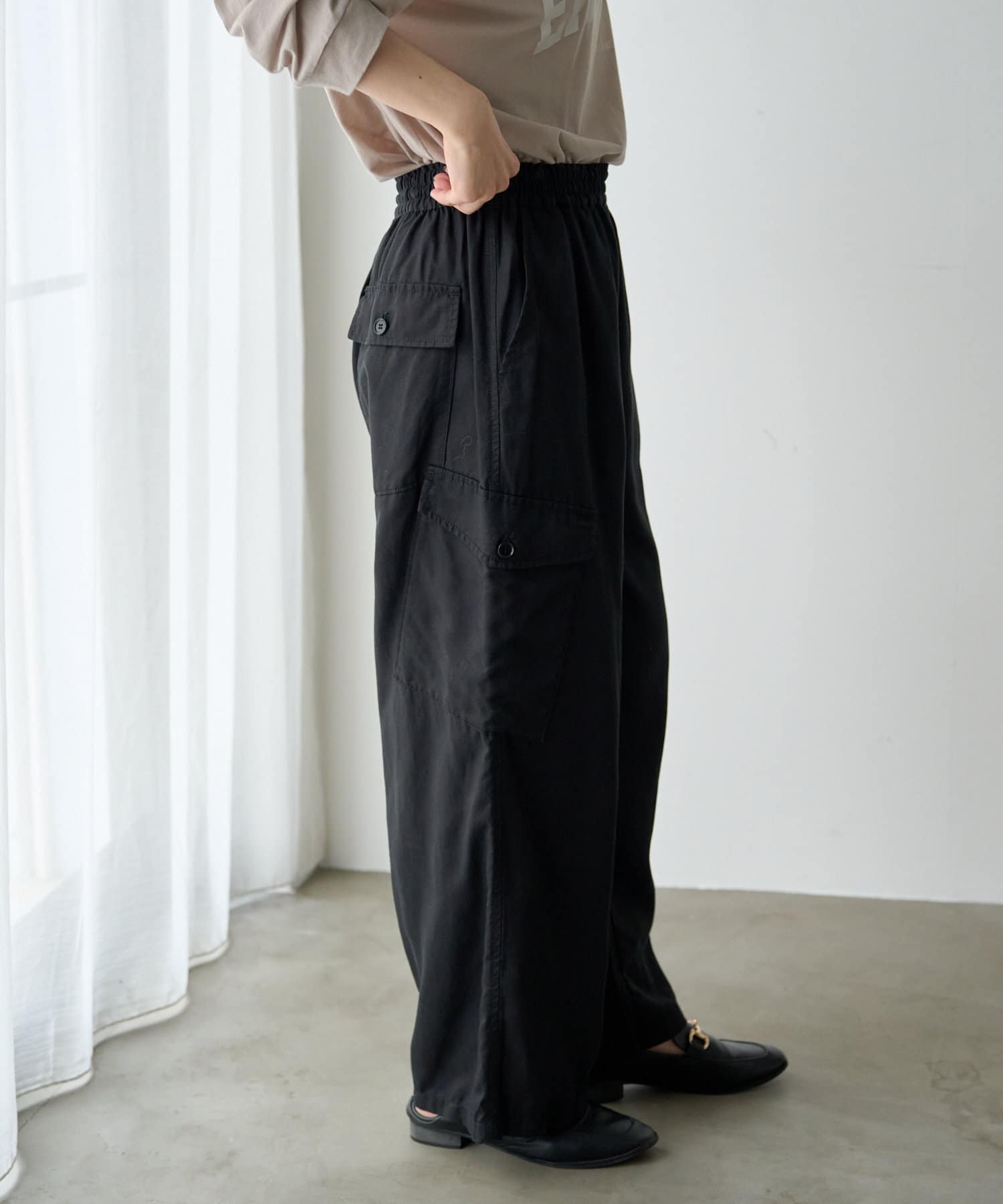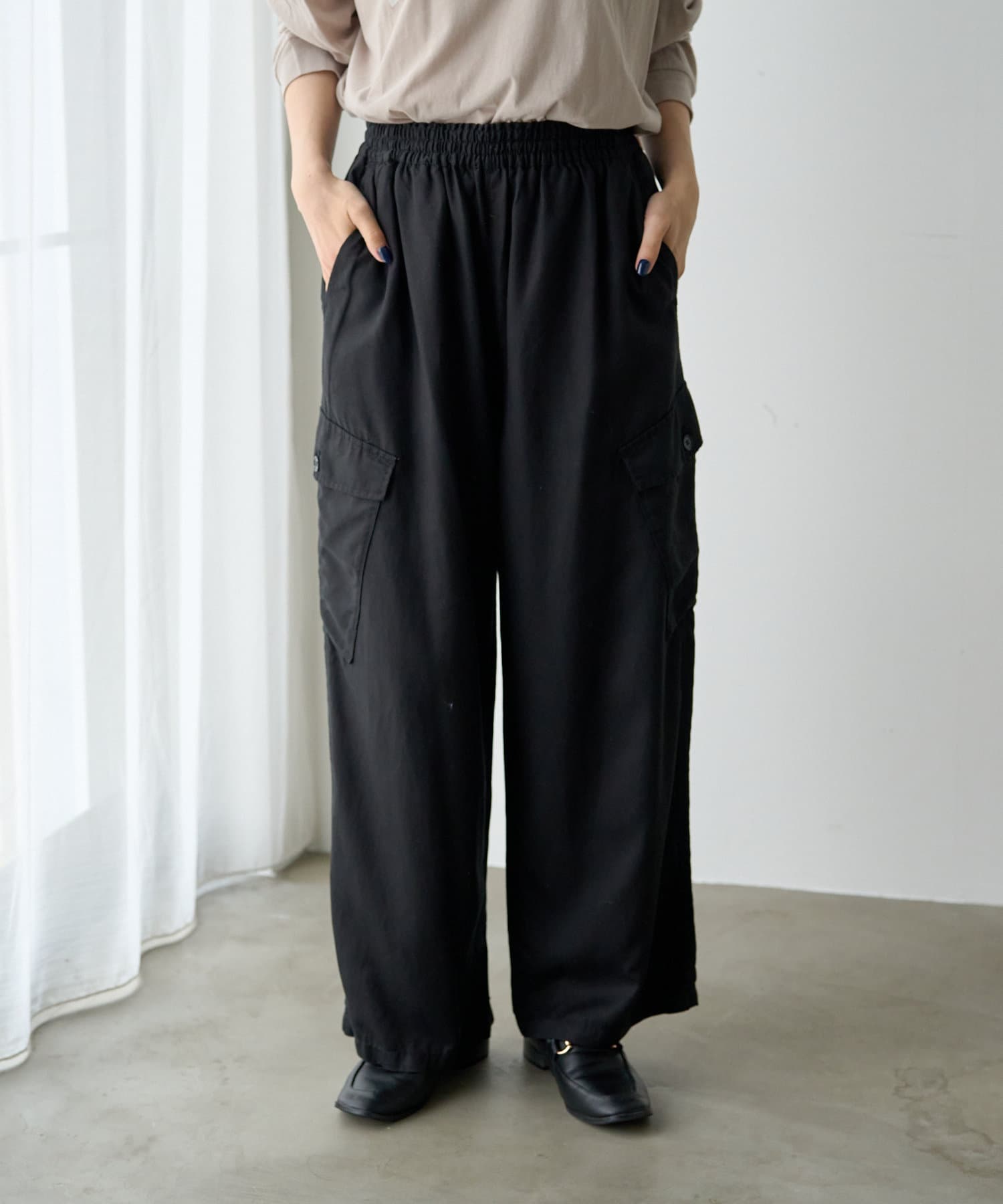 リネンテンセルの素材が女性らしいカーゴディテールパンツ。