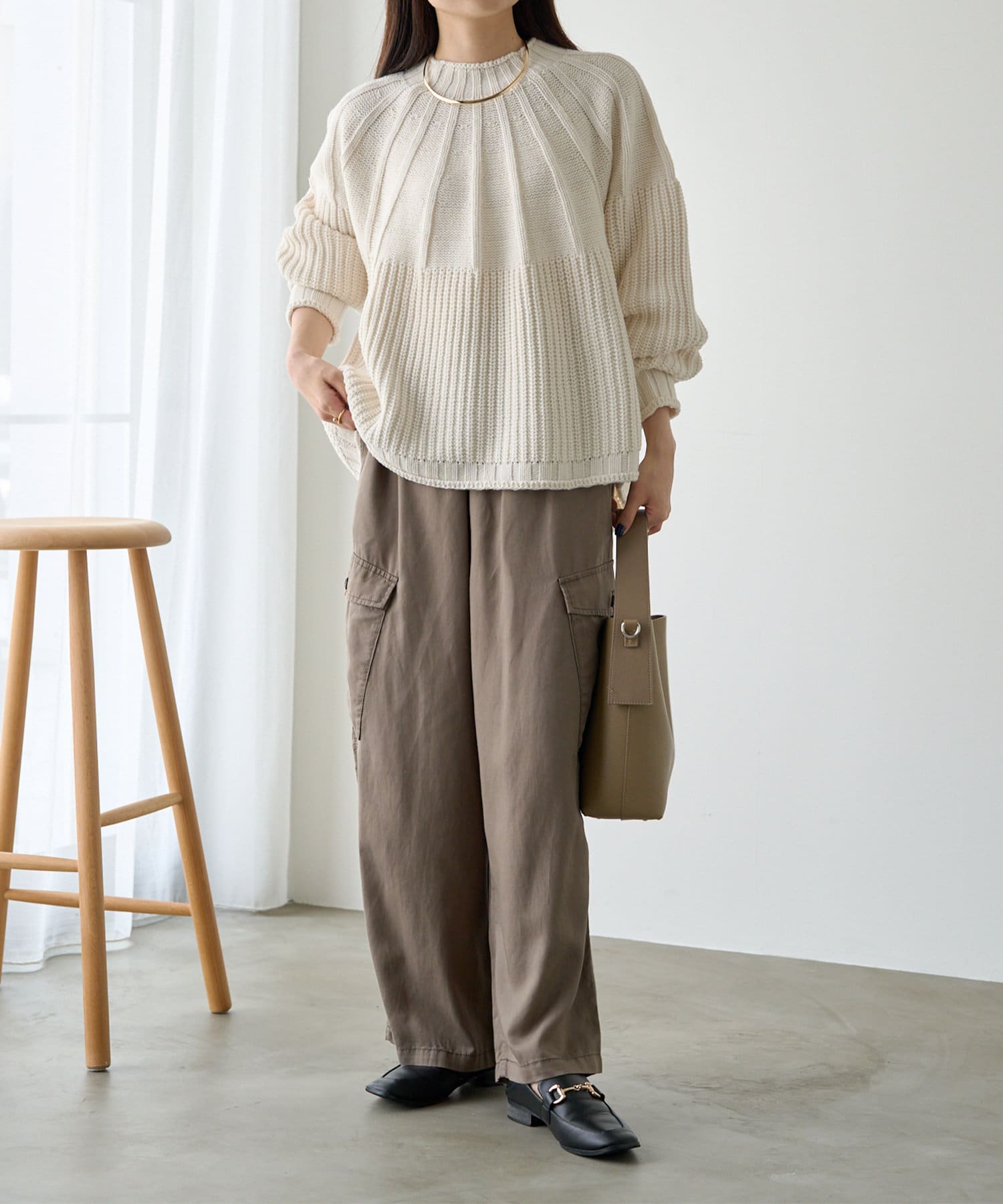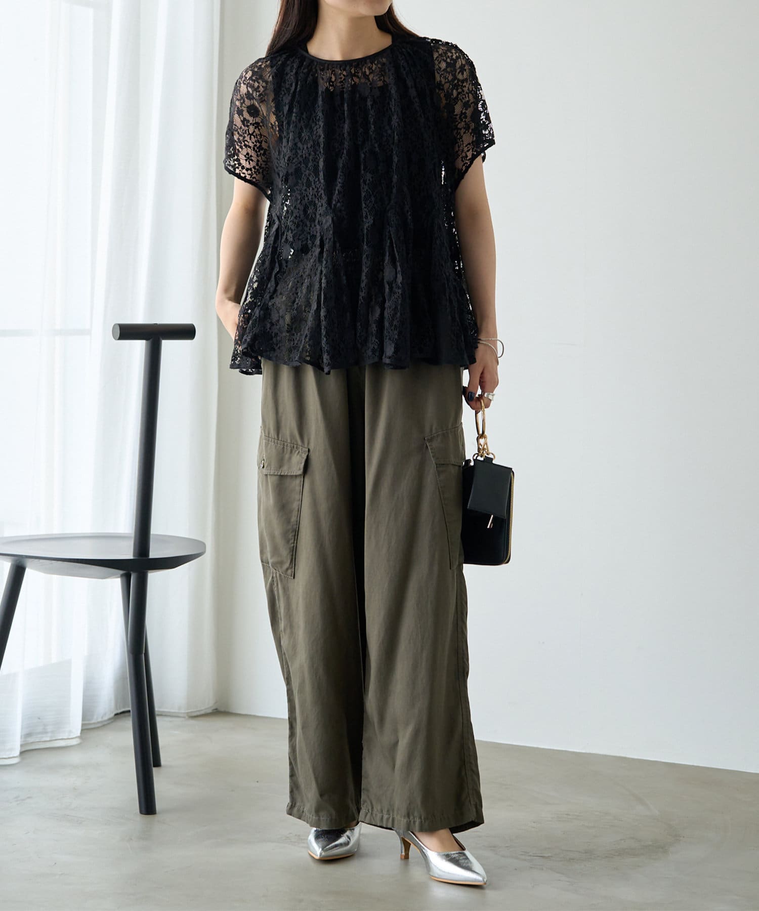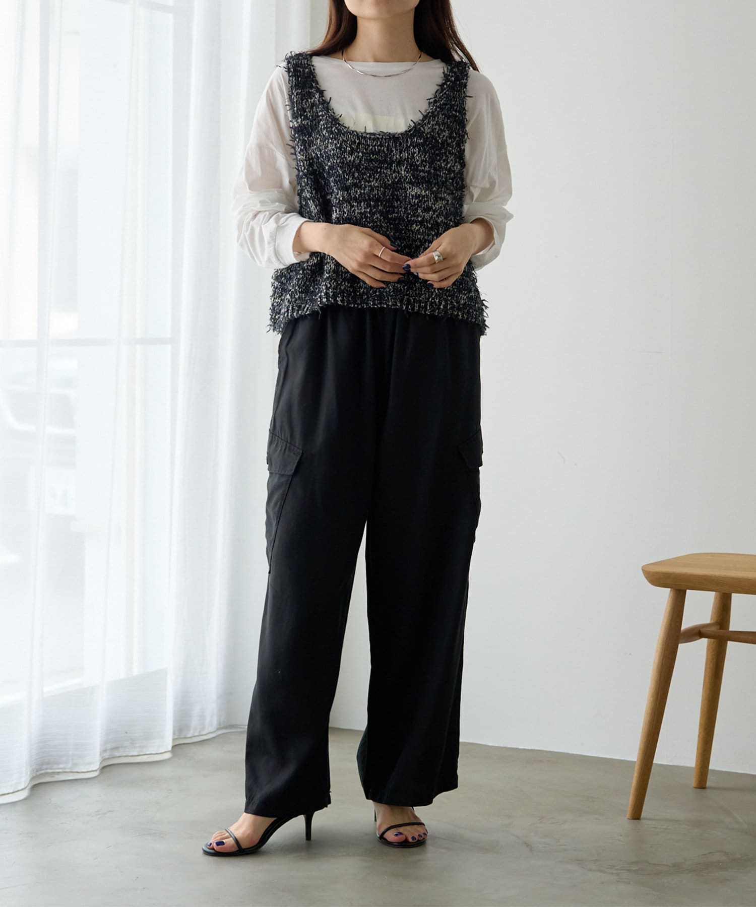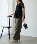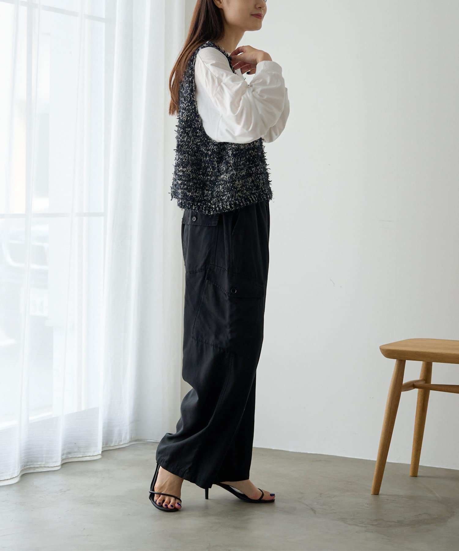 リネンテンセルの素材が女性らしいカーゴディテールパンツ。