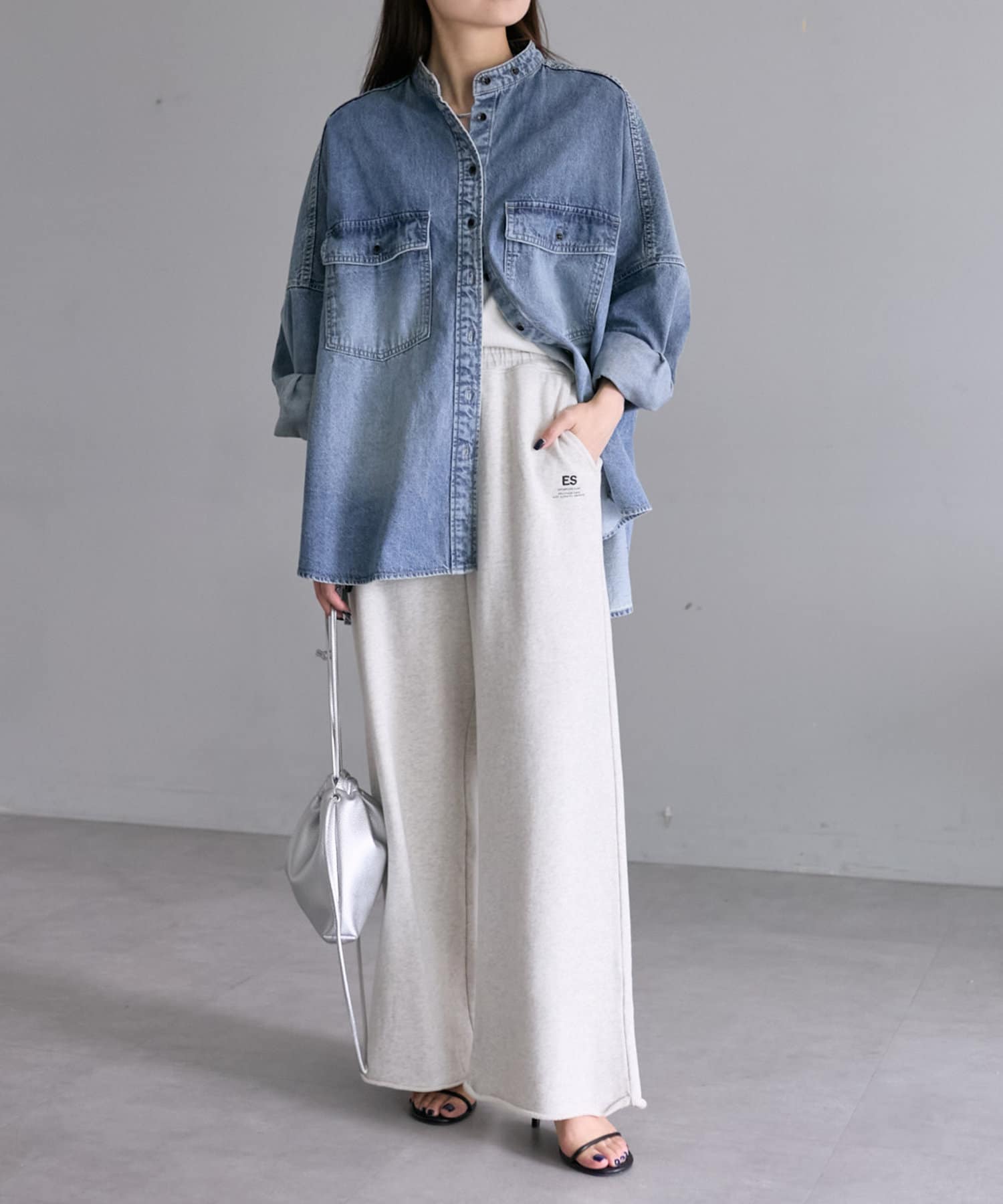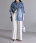 微フレアでワイドなシルエットを活かしたメンズライクな着こなしや、