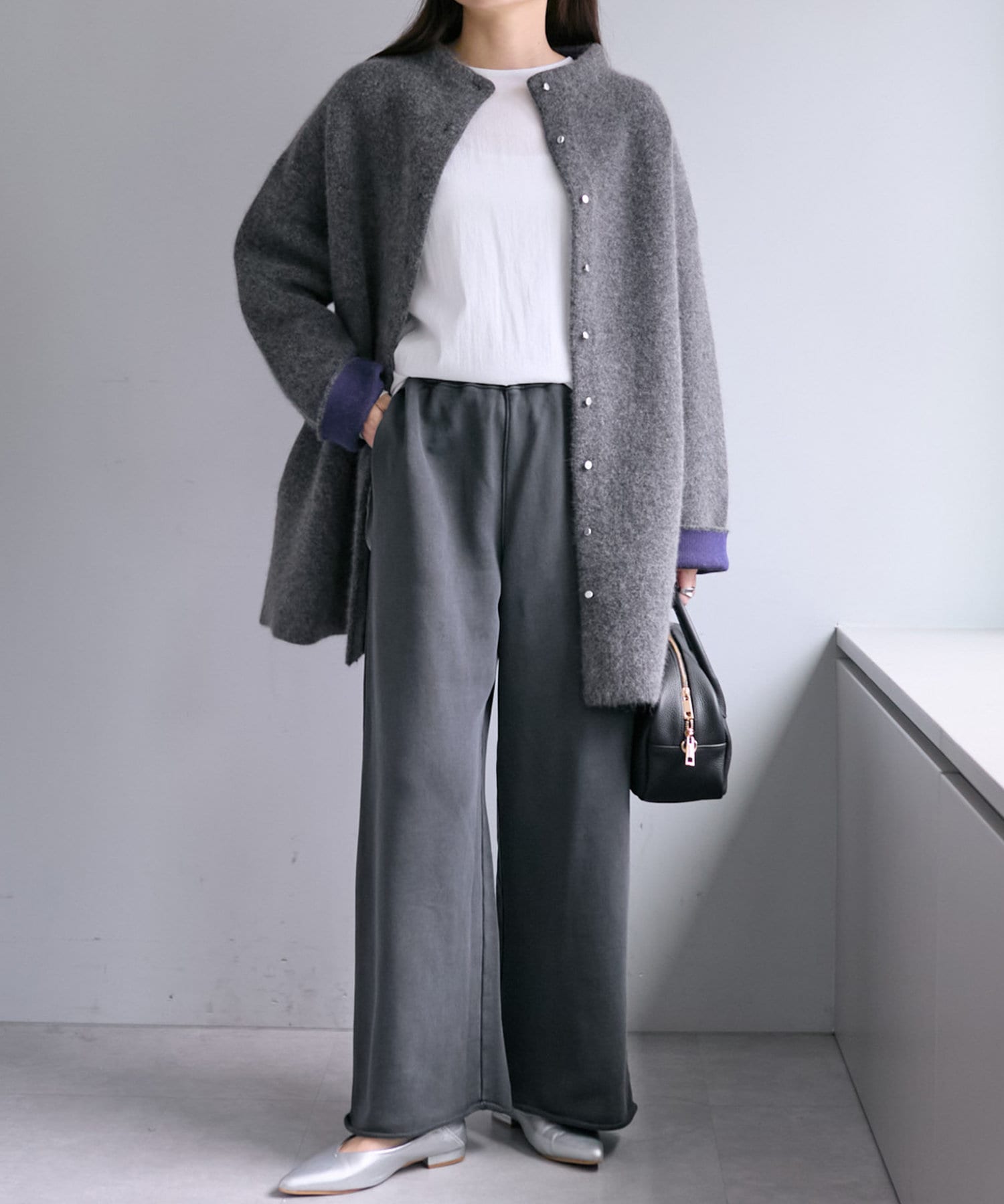 同素材の裏毛シンプルスェット(NO:0242060270)と合わせてセットアップでも着用可能です。