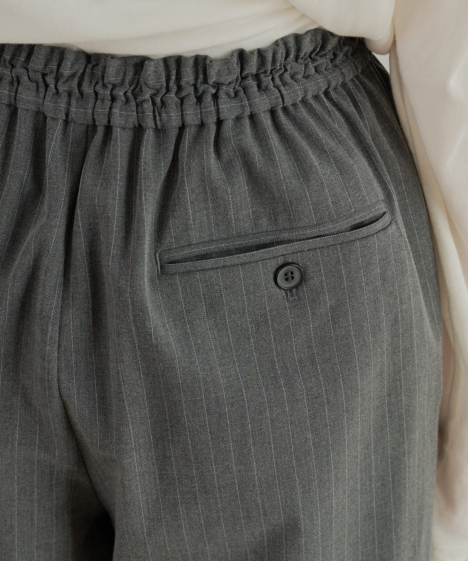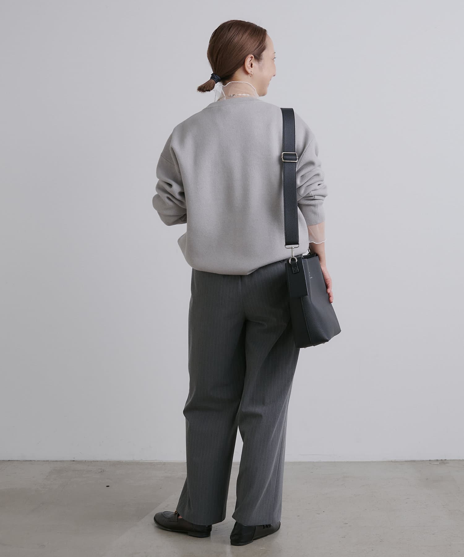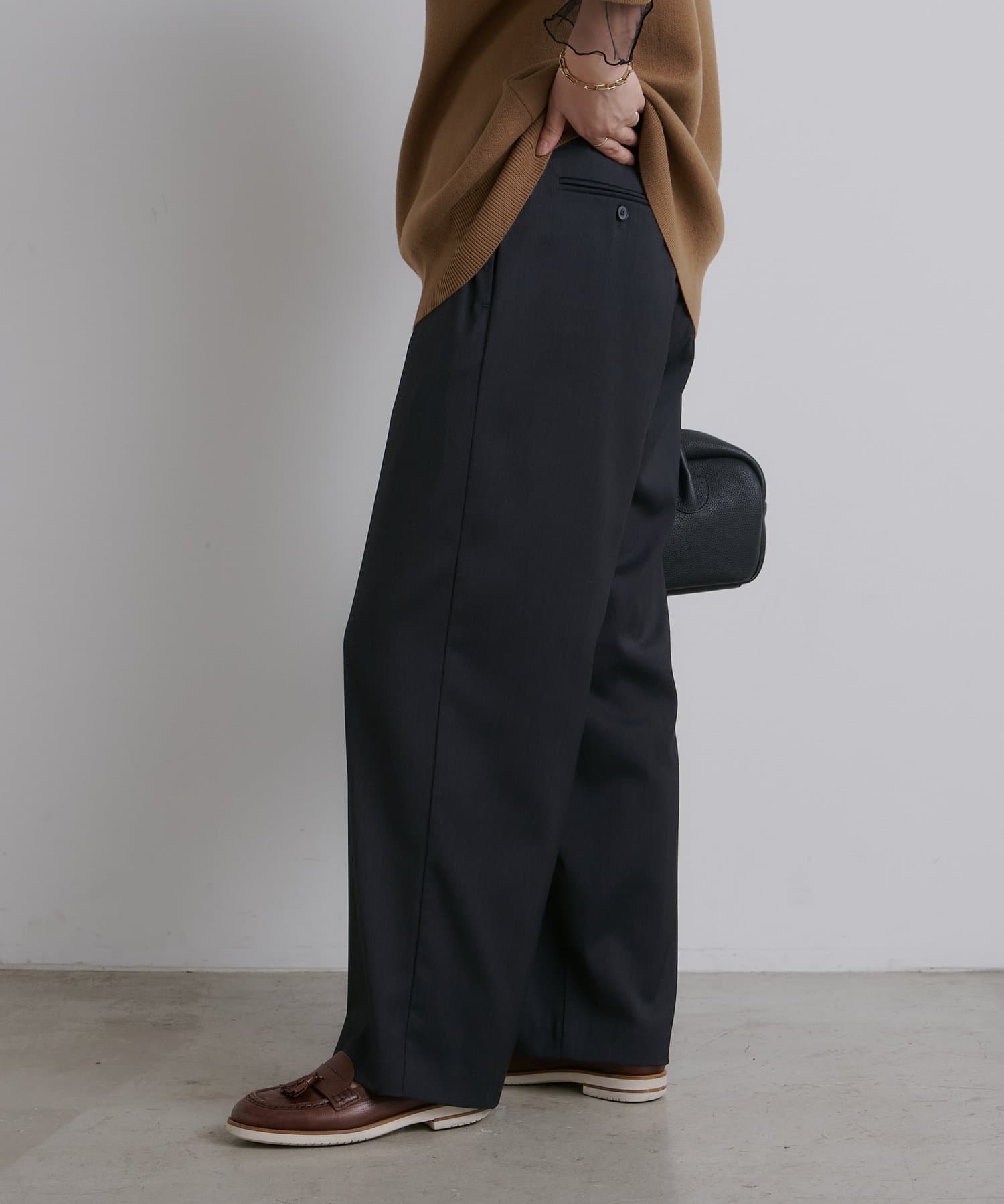 フロントはノータックでウエストや腰回りはすっきり見えるように仕上げ、ルーズになり過ぎないスマートなストレートシルエットが、合わせやすさと細見えを叶えるスラックスパンツ。