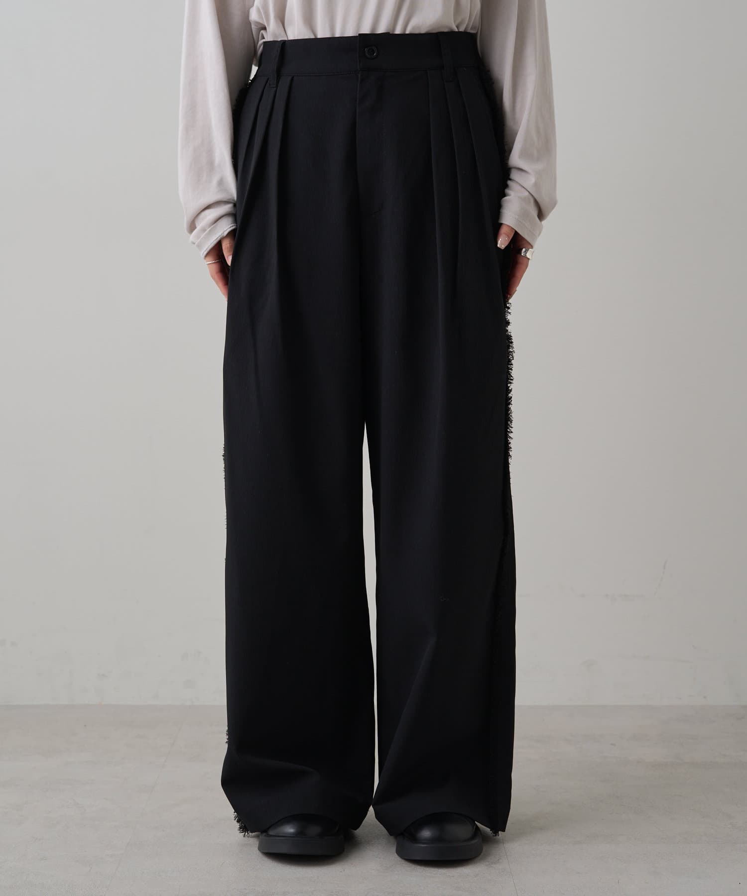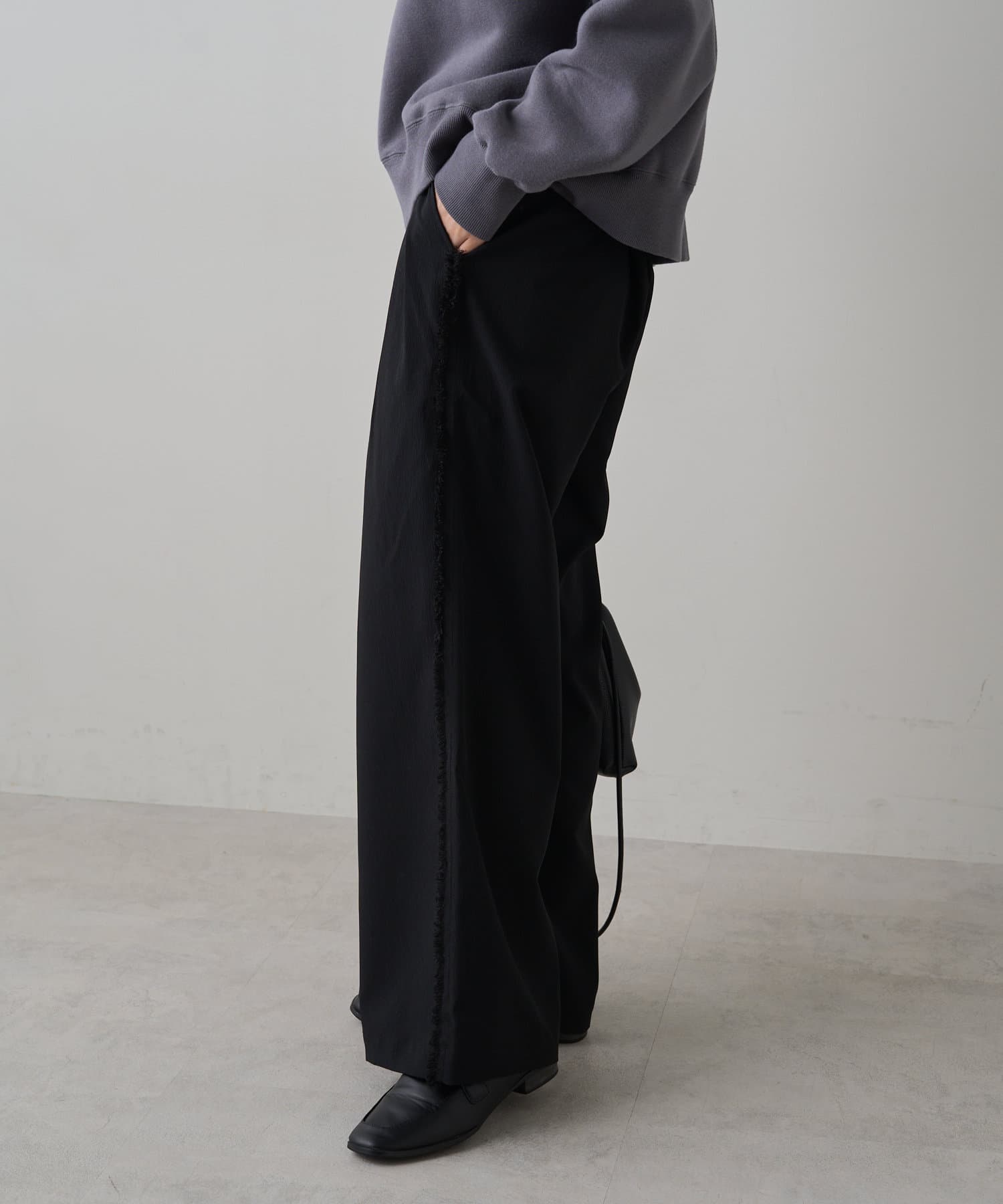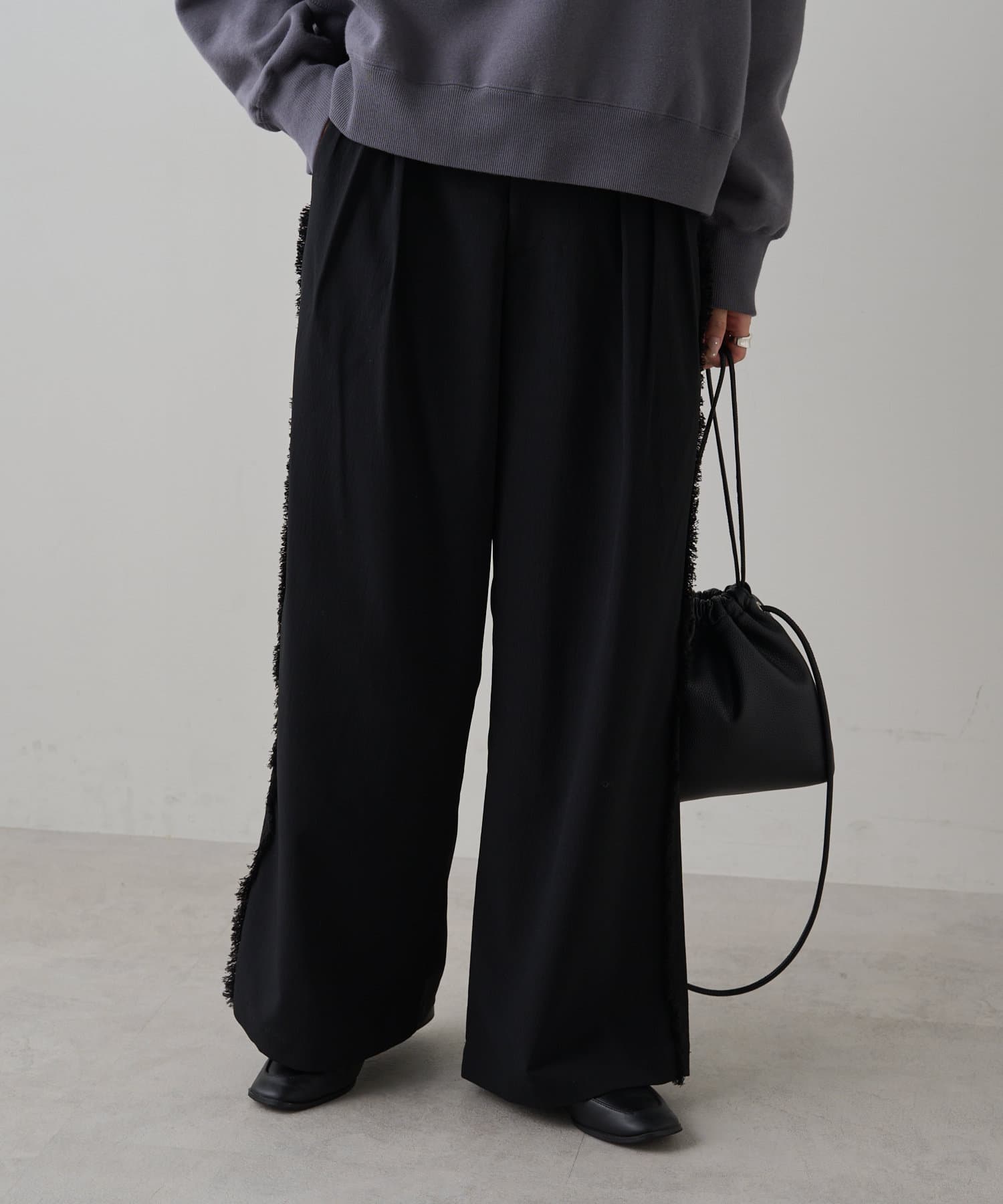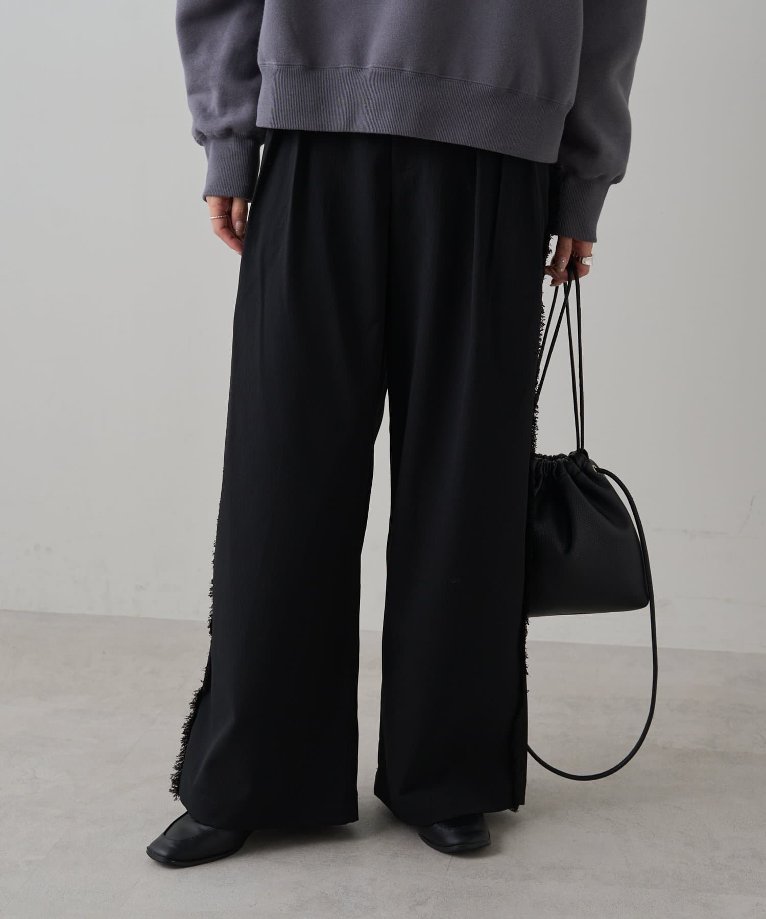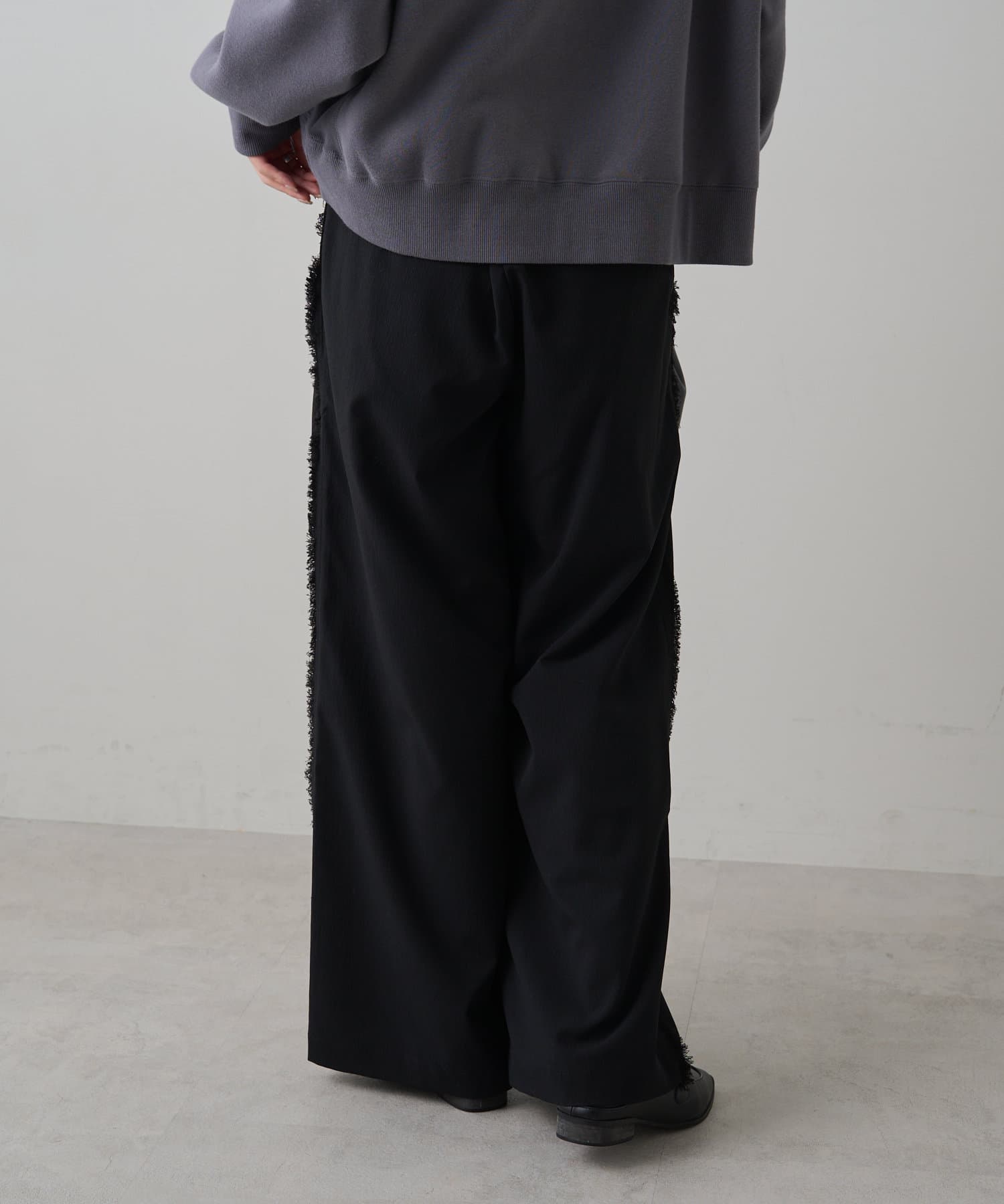 サイドにフリンジを配した、デザイン性に富んだスラックスパンツ。