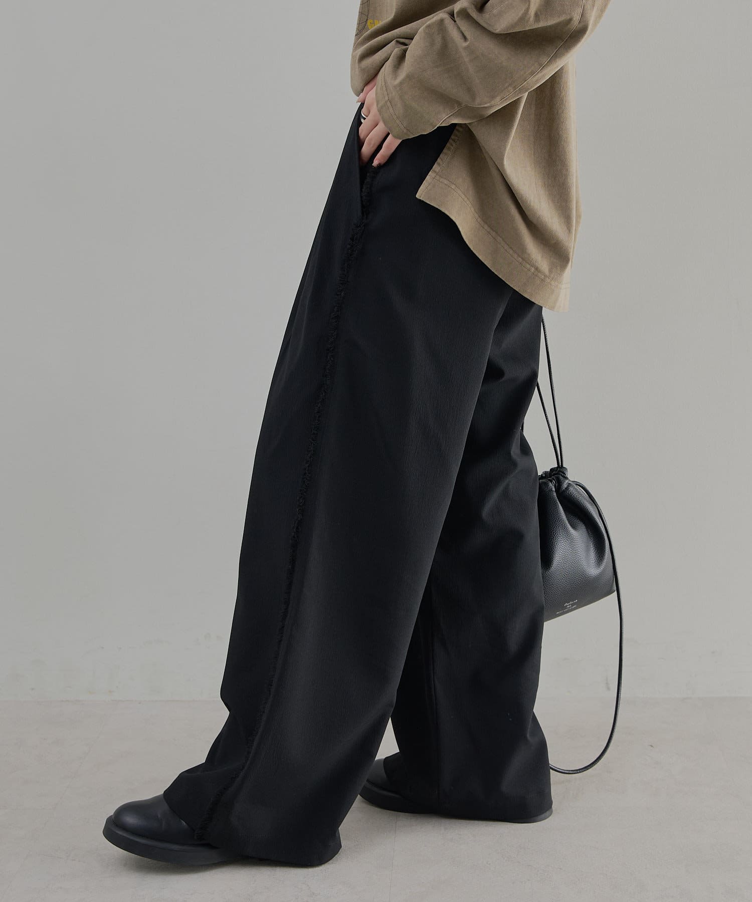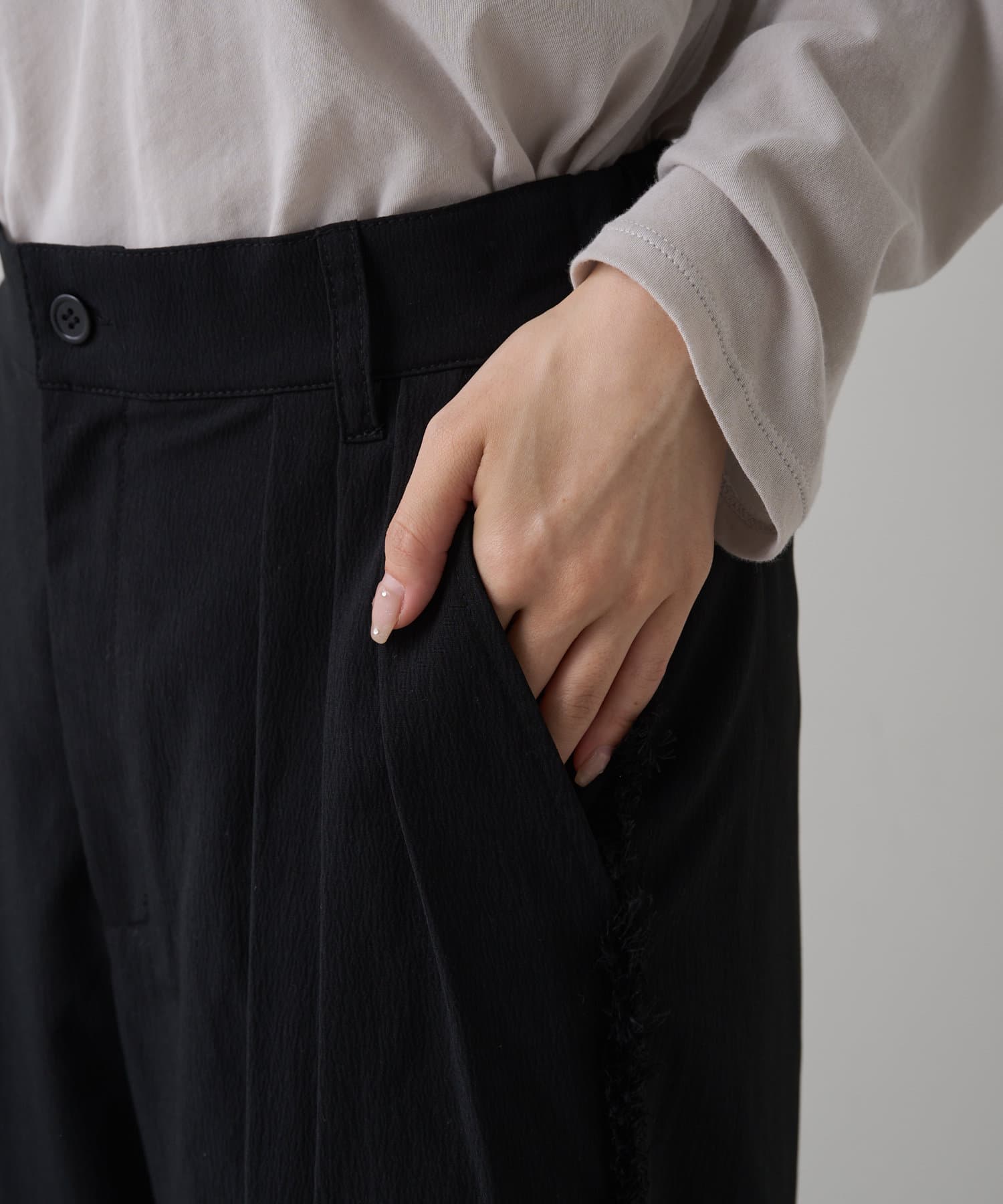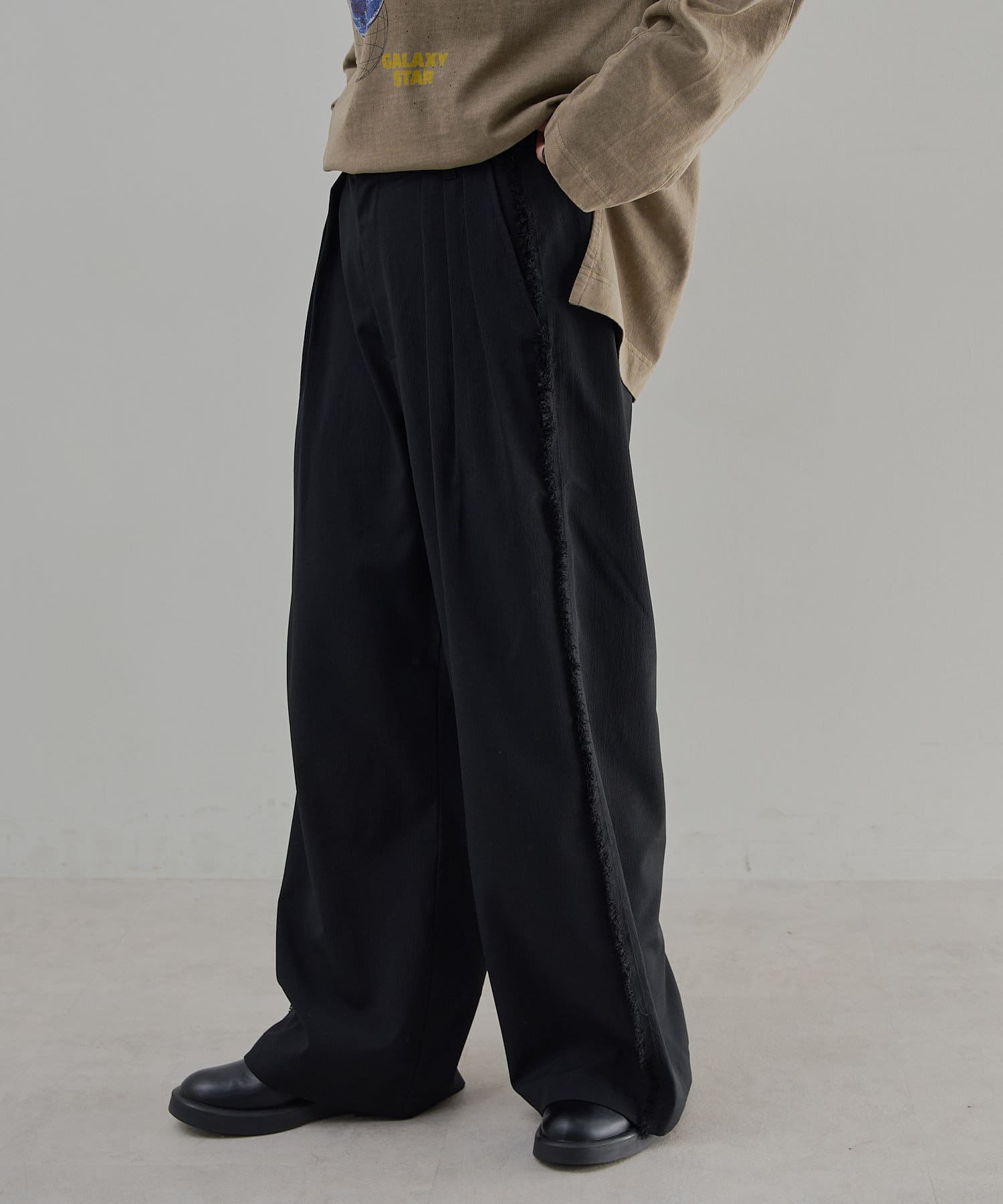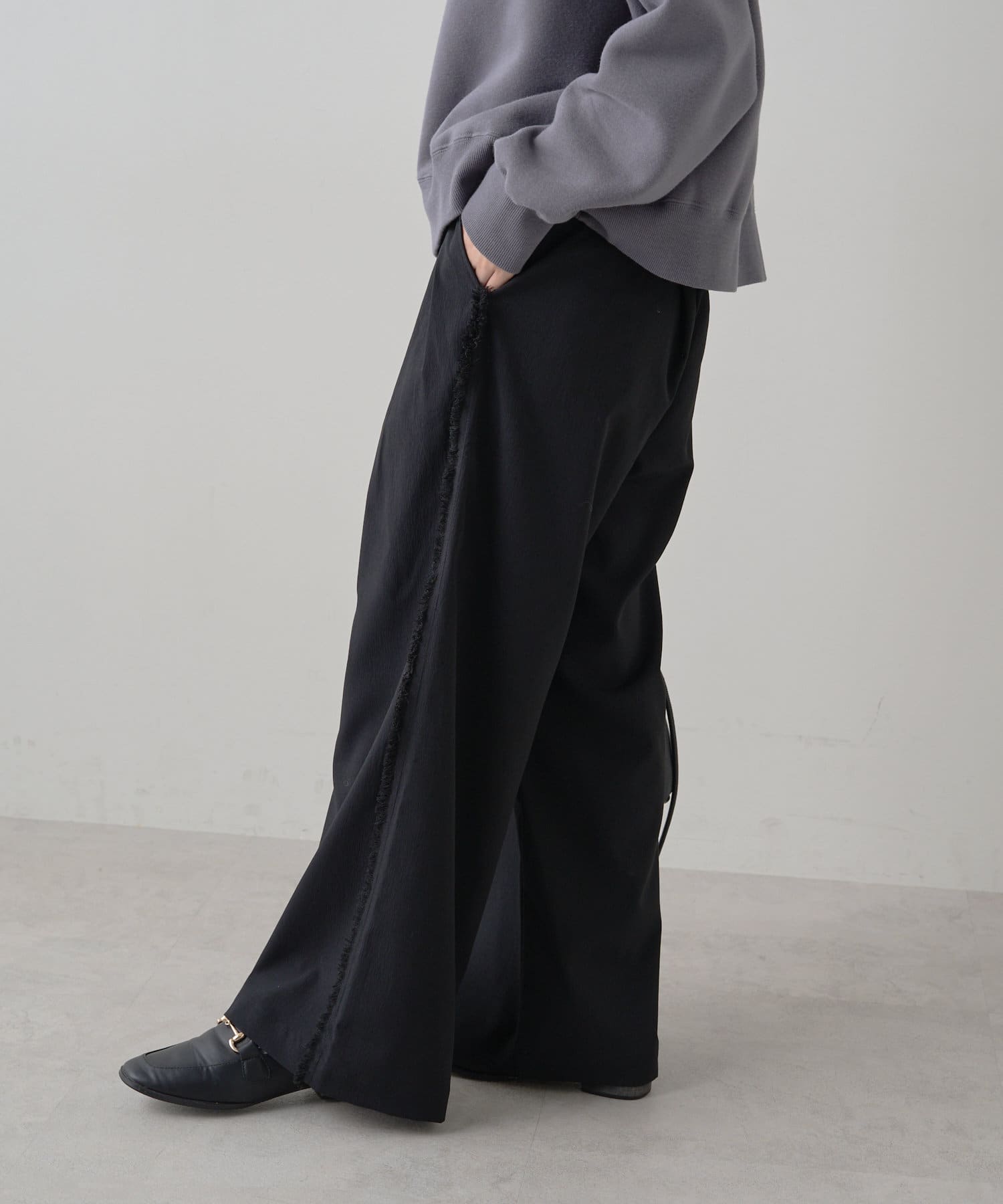 サイドにフリンジを配した、デザイン性に富んだスラックスパンツ。
