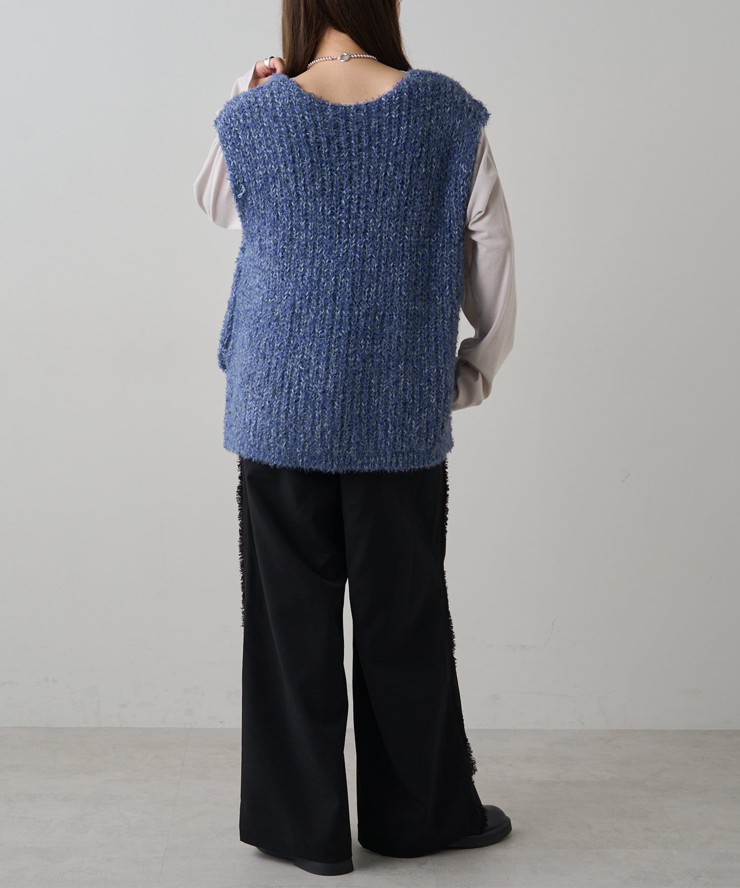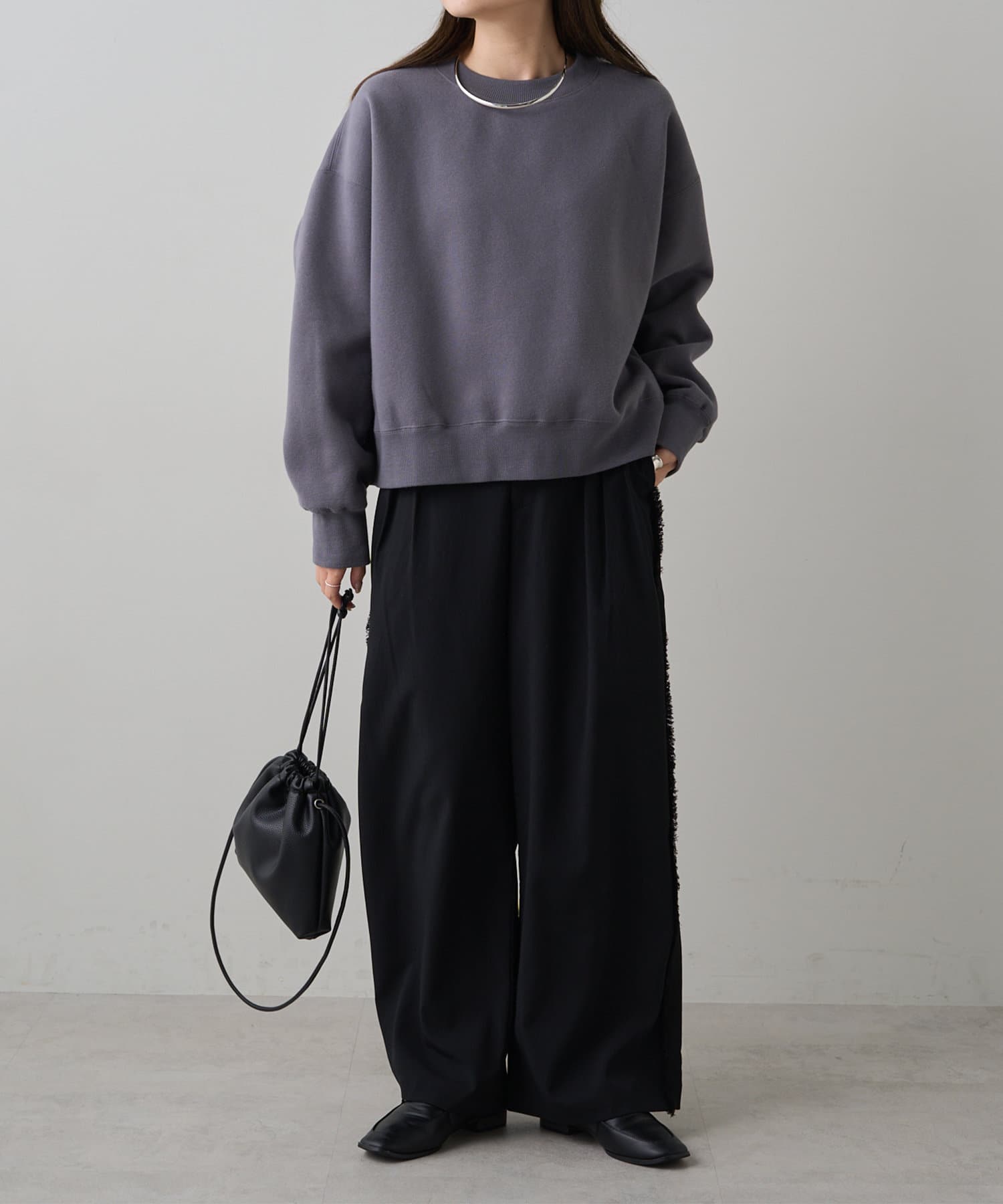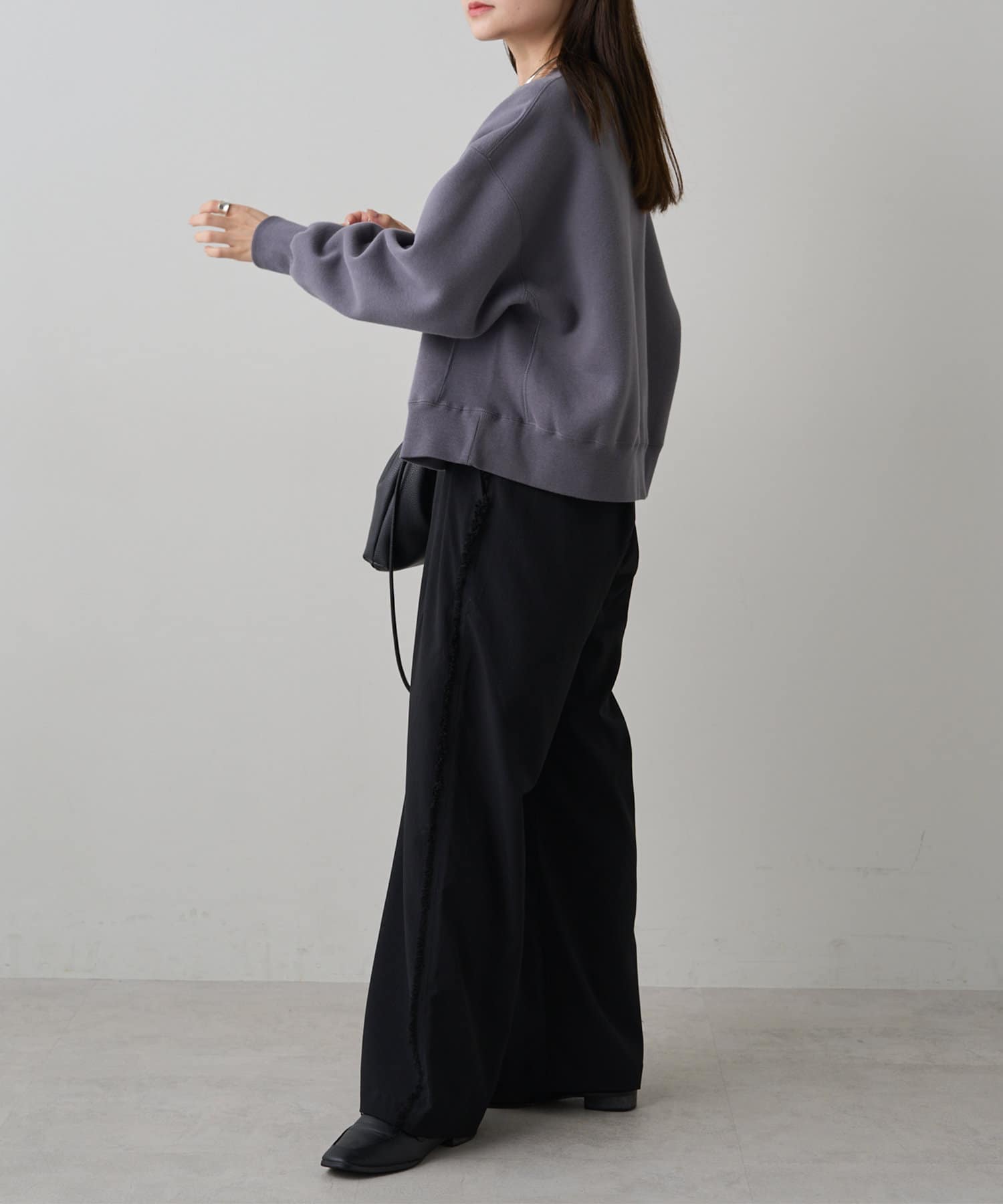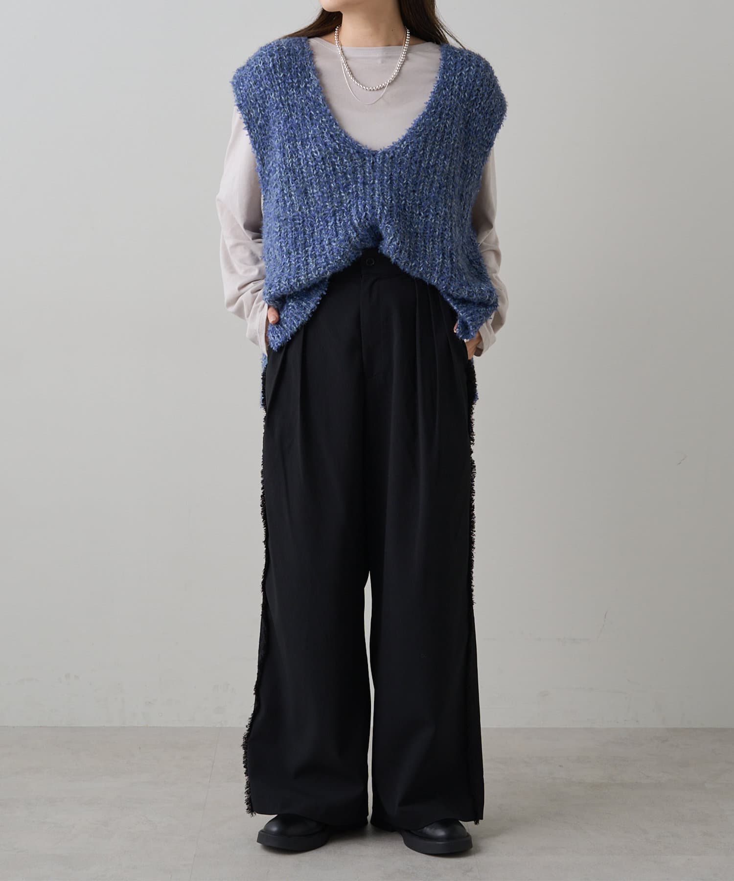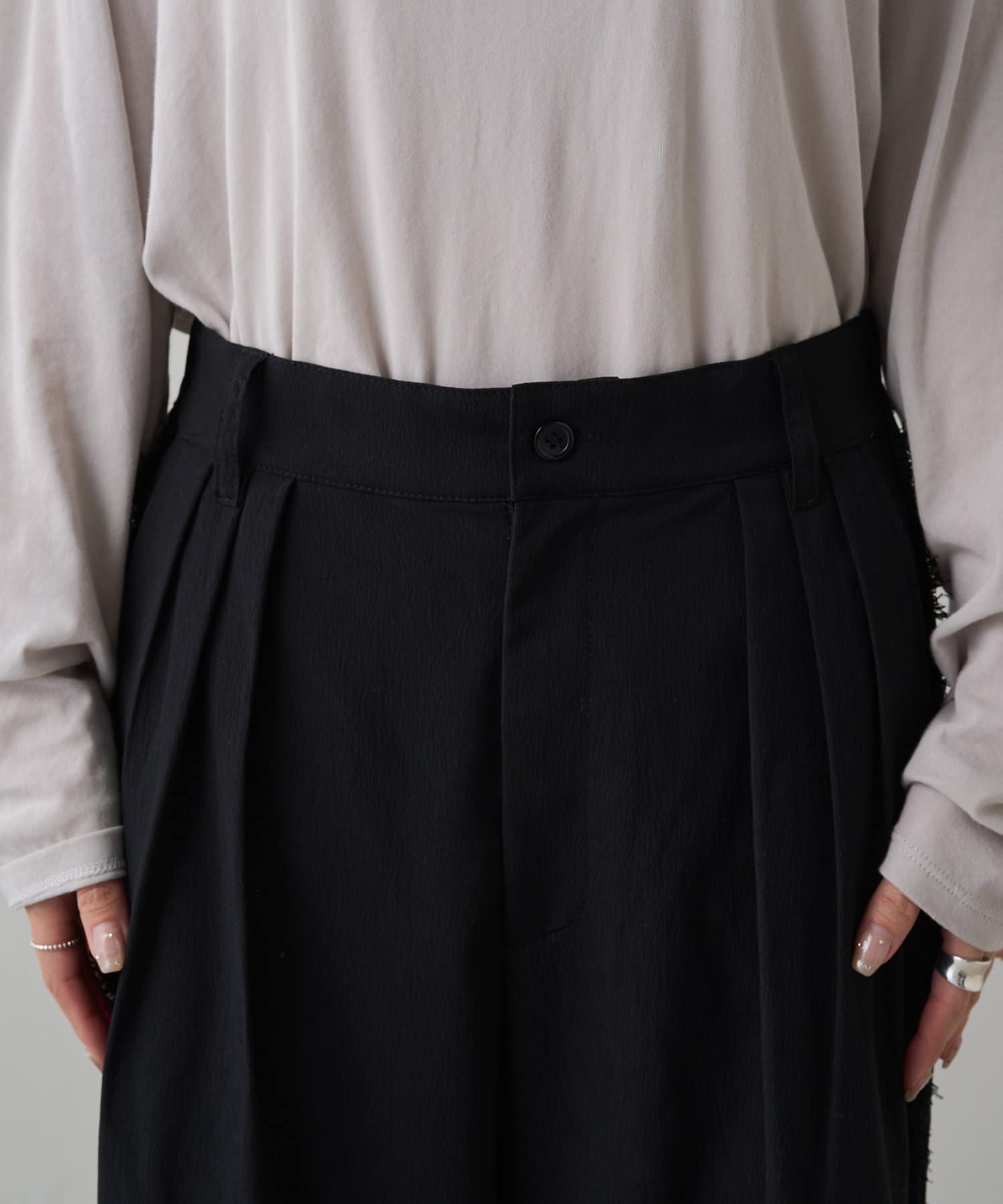 サイドにフリンジを配した、デザイン性に富んだスラックスパンツ。
