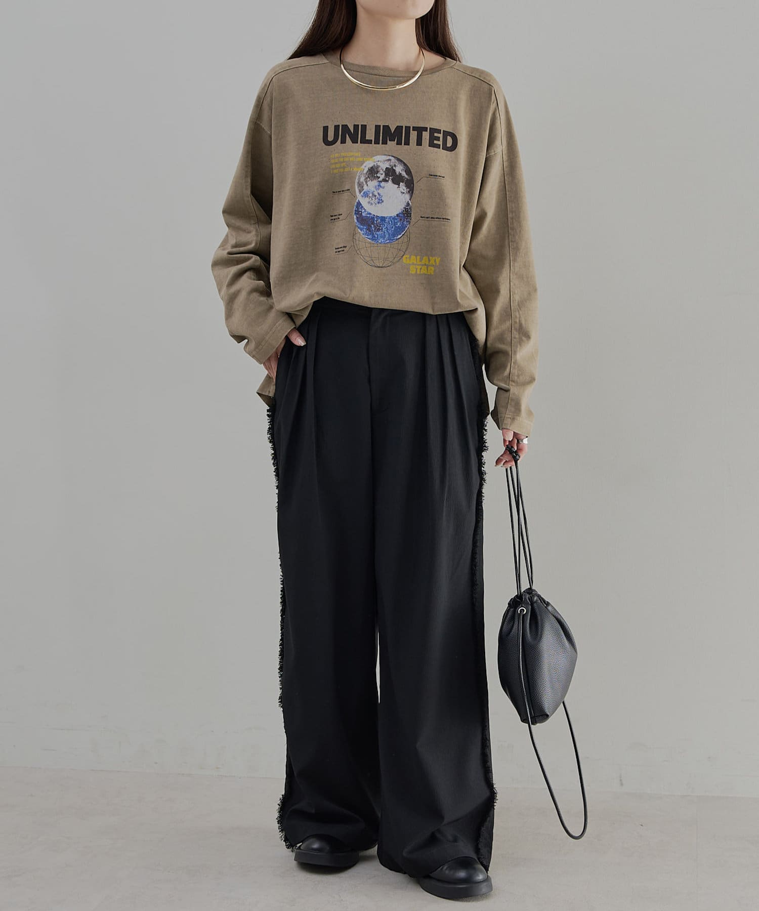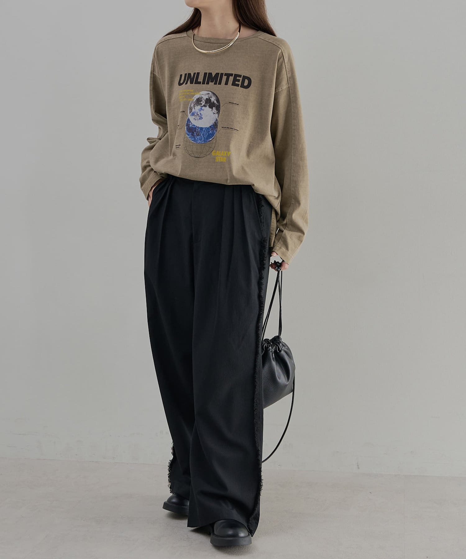脚のラインを拾わないワイドシルエットが嬉しいポイント◎