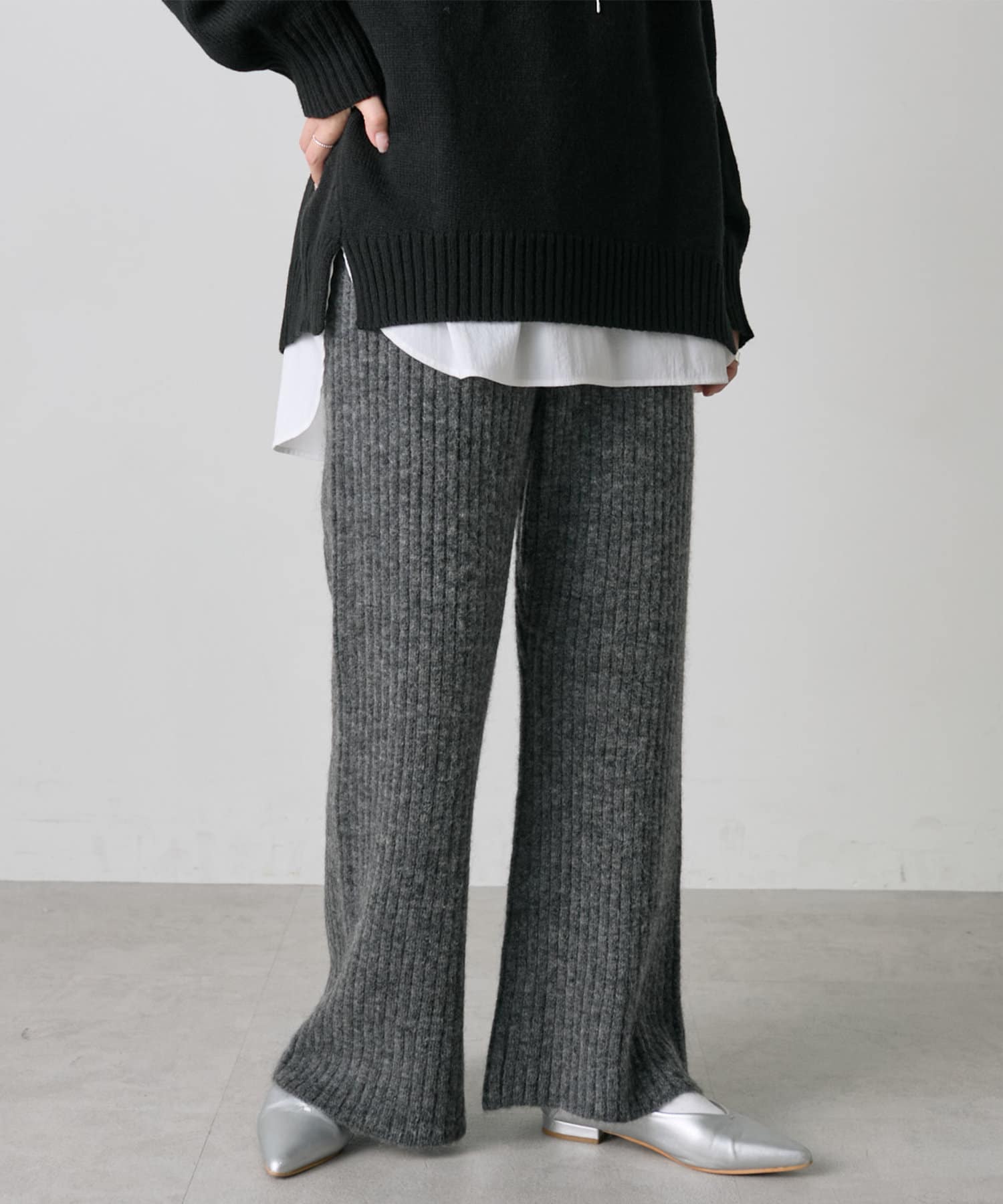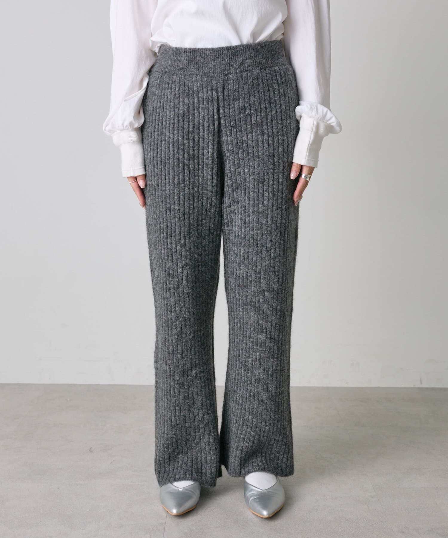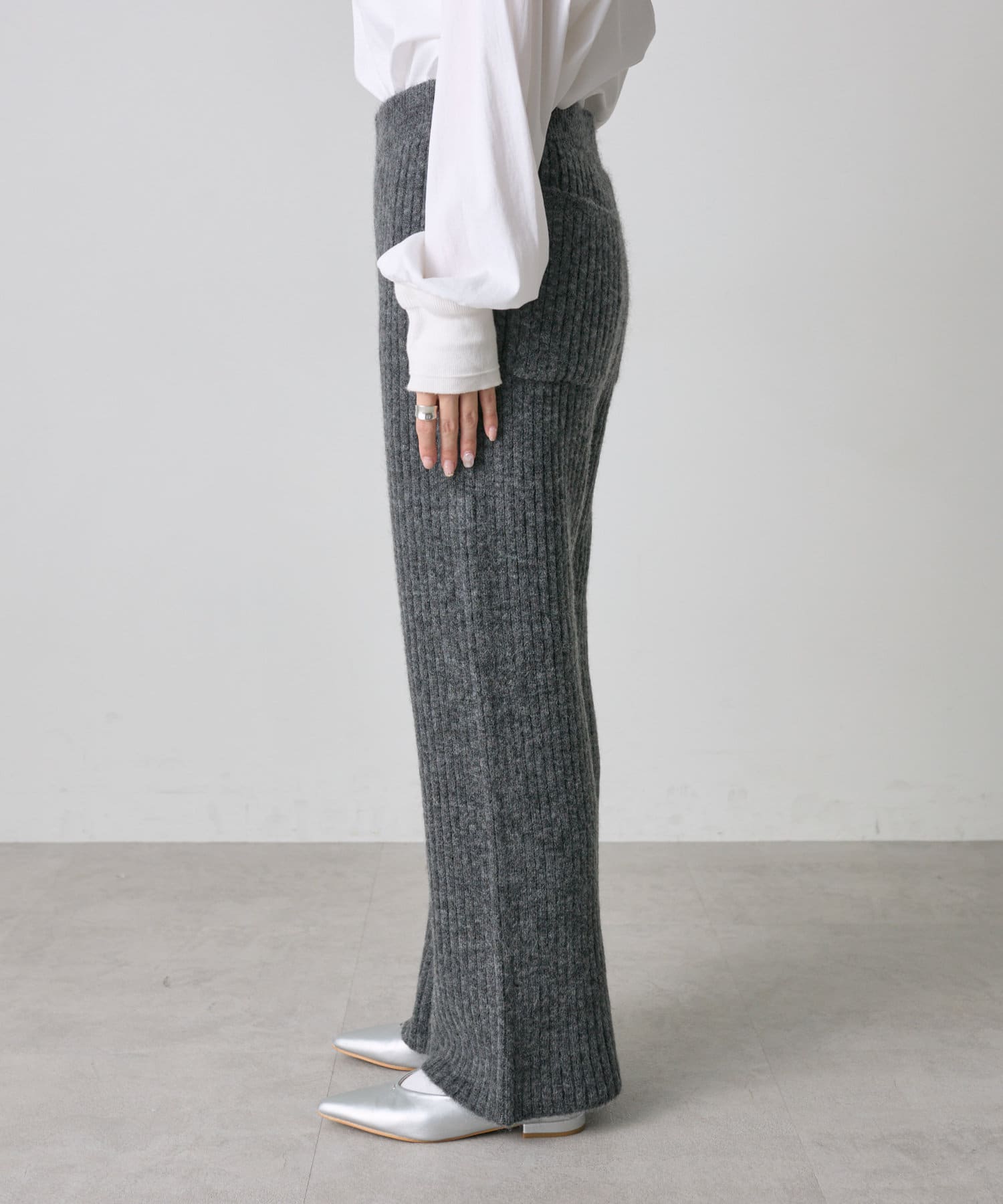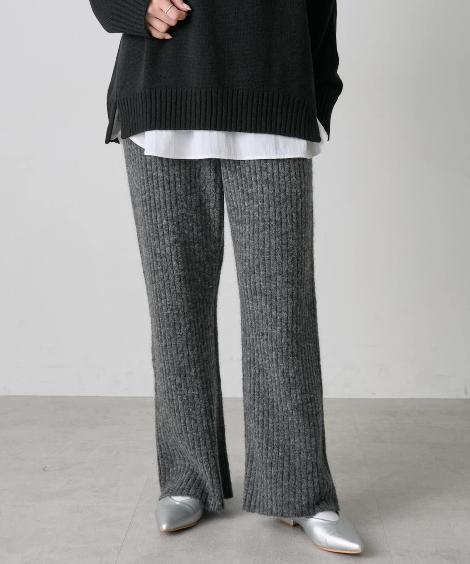 ワイドリブニットフレアパンツ