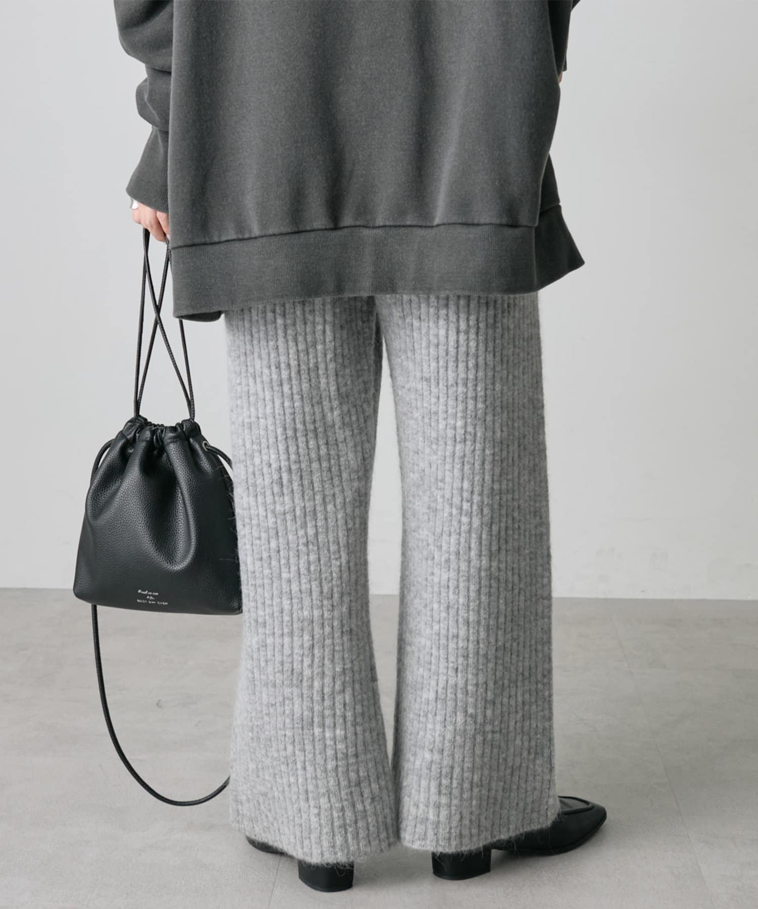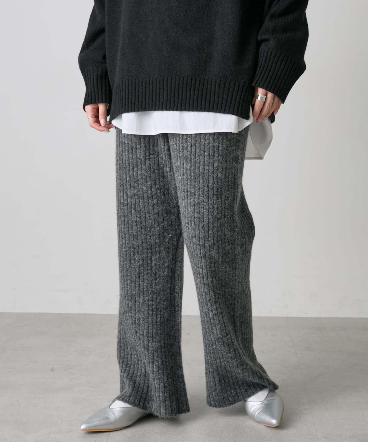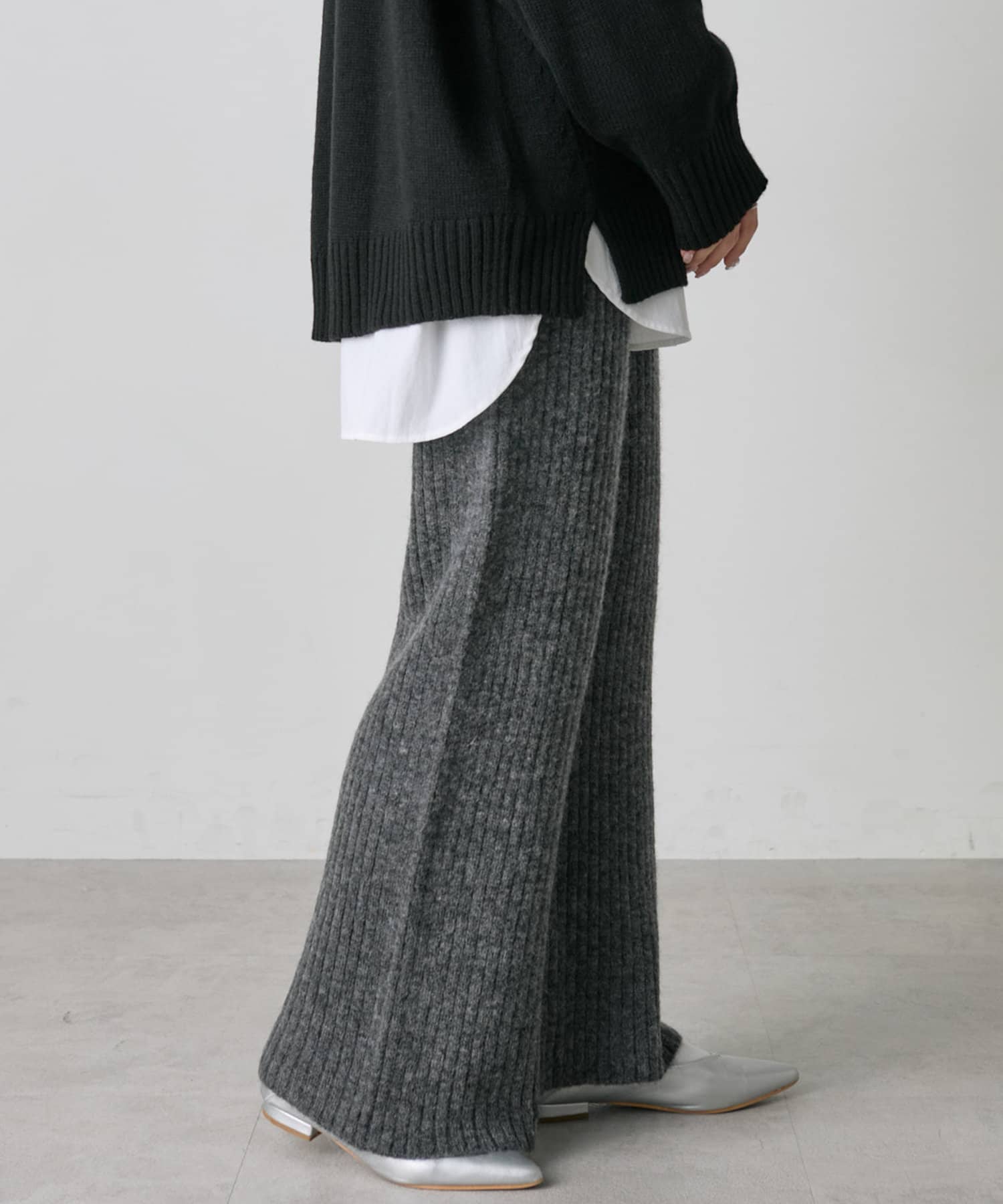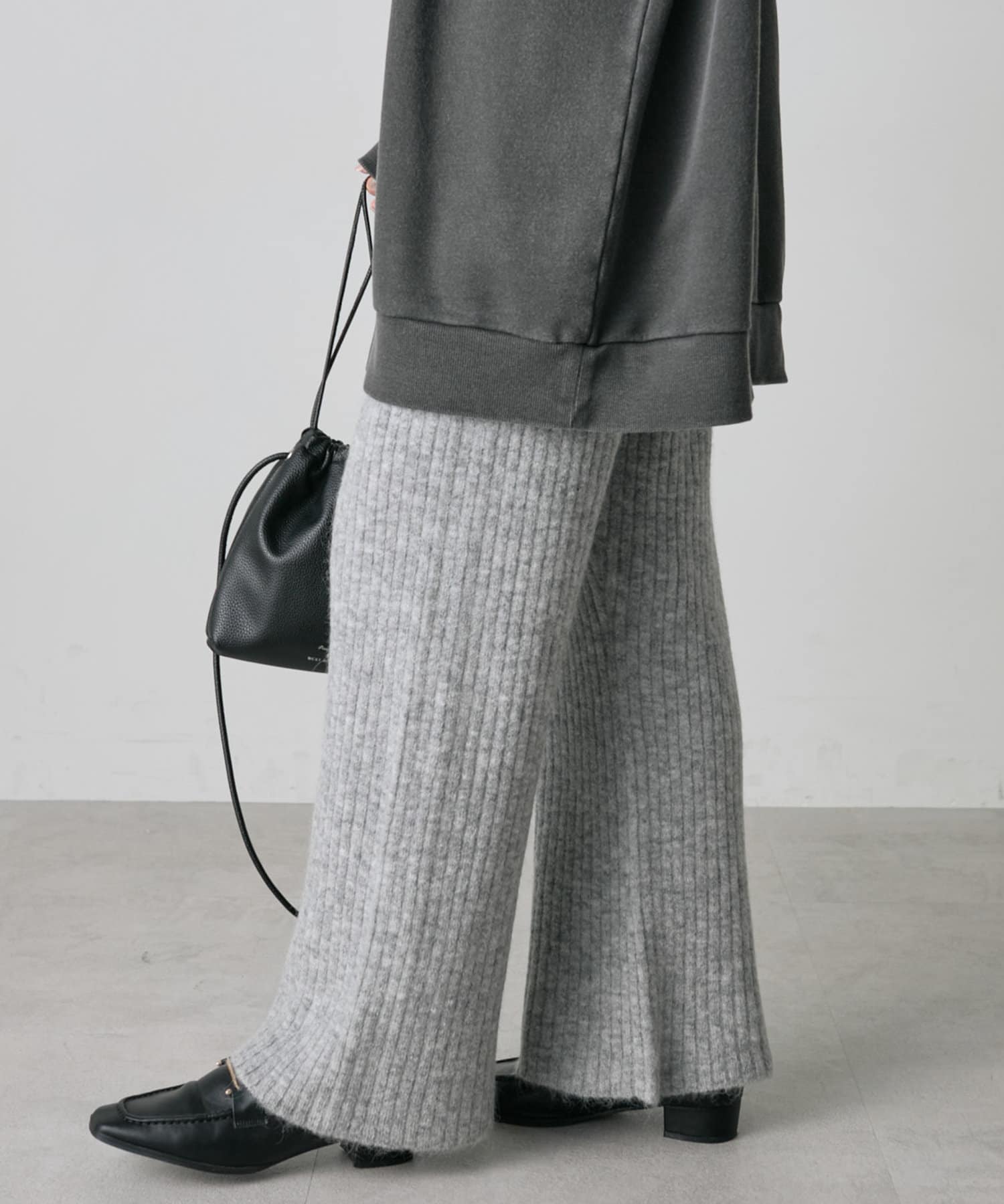 ワイドリブニットフレアパンツ
