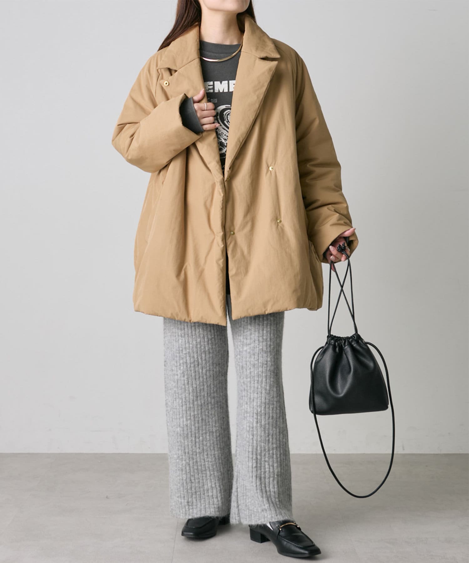 カジュアルさをプラスしたスタイリングもオススメです。