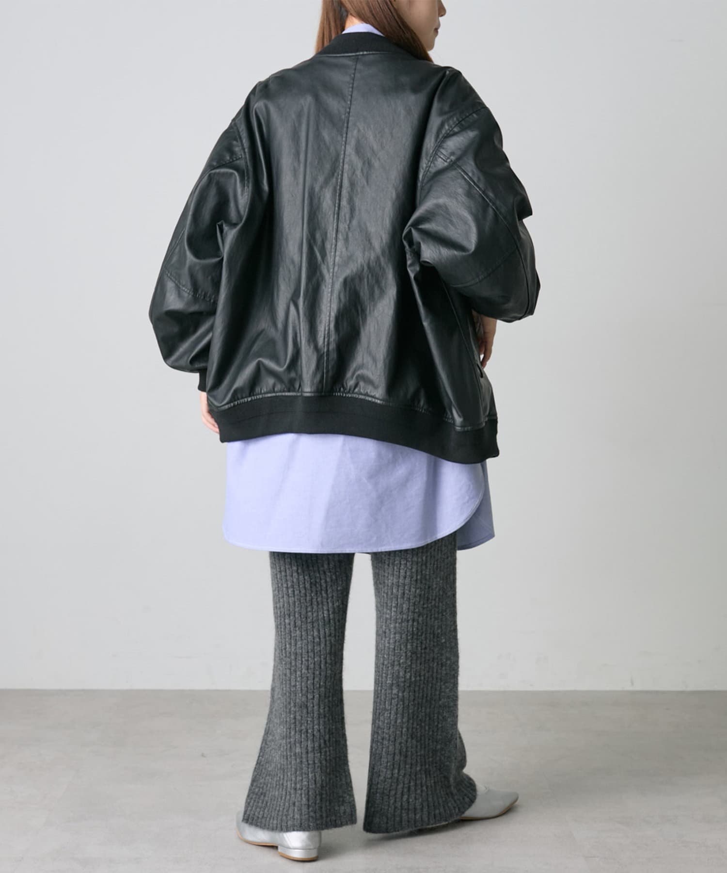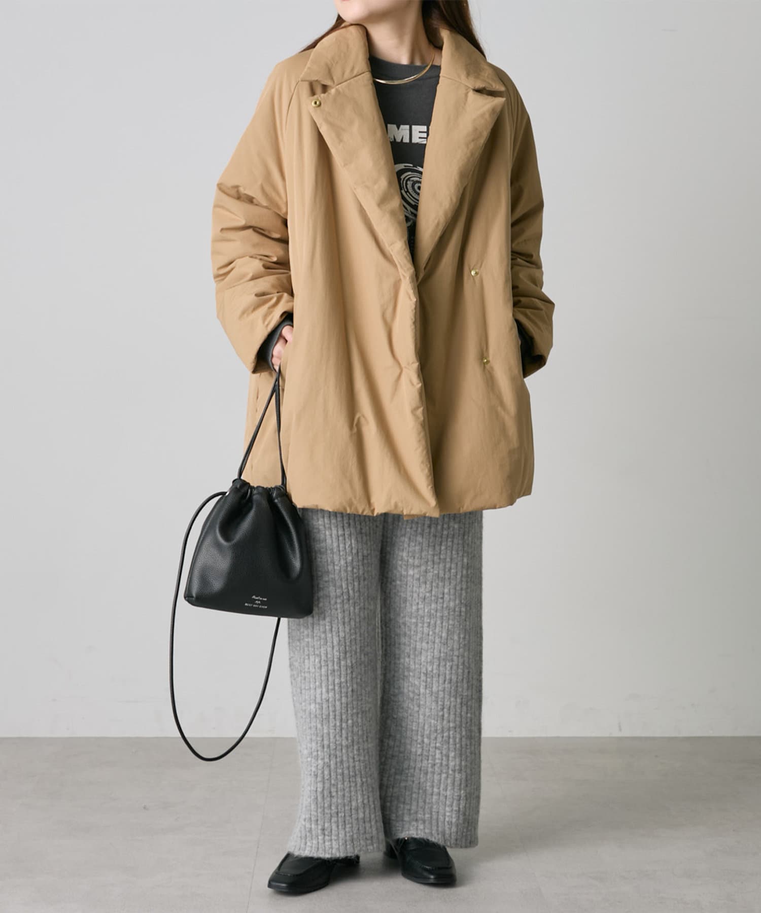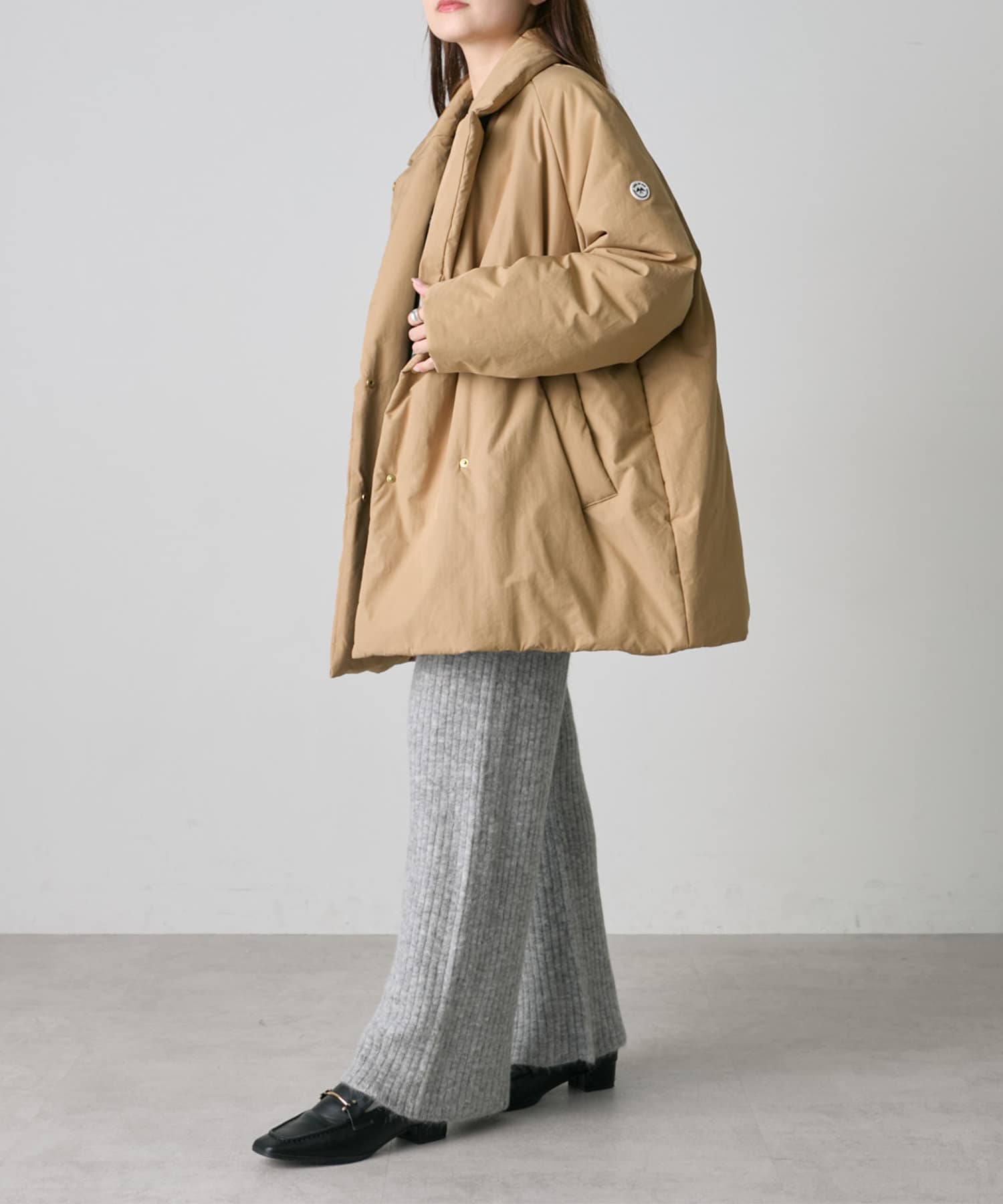 着用感:ニットパンツですが、すっきりとしたデザインなので、もたつかず綺麗めな着こなしが叶います。
