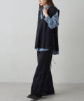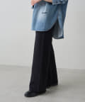 ウエスト部分はリブ編みに切替わり、トップスをインした時にはベルトの様なアクセントとしてもお使いいただけます。