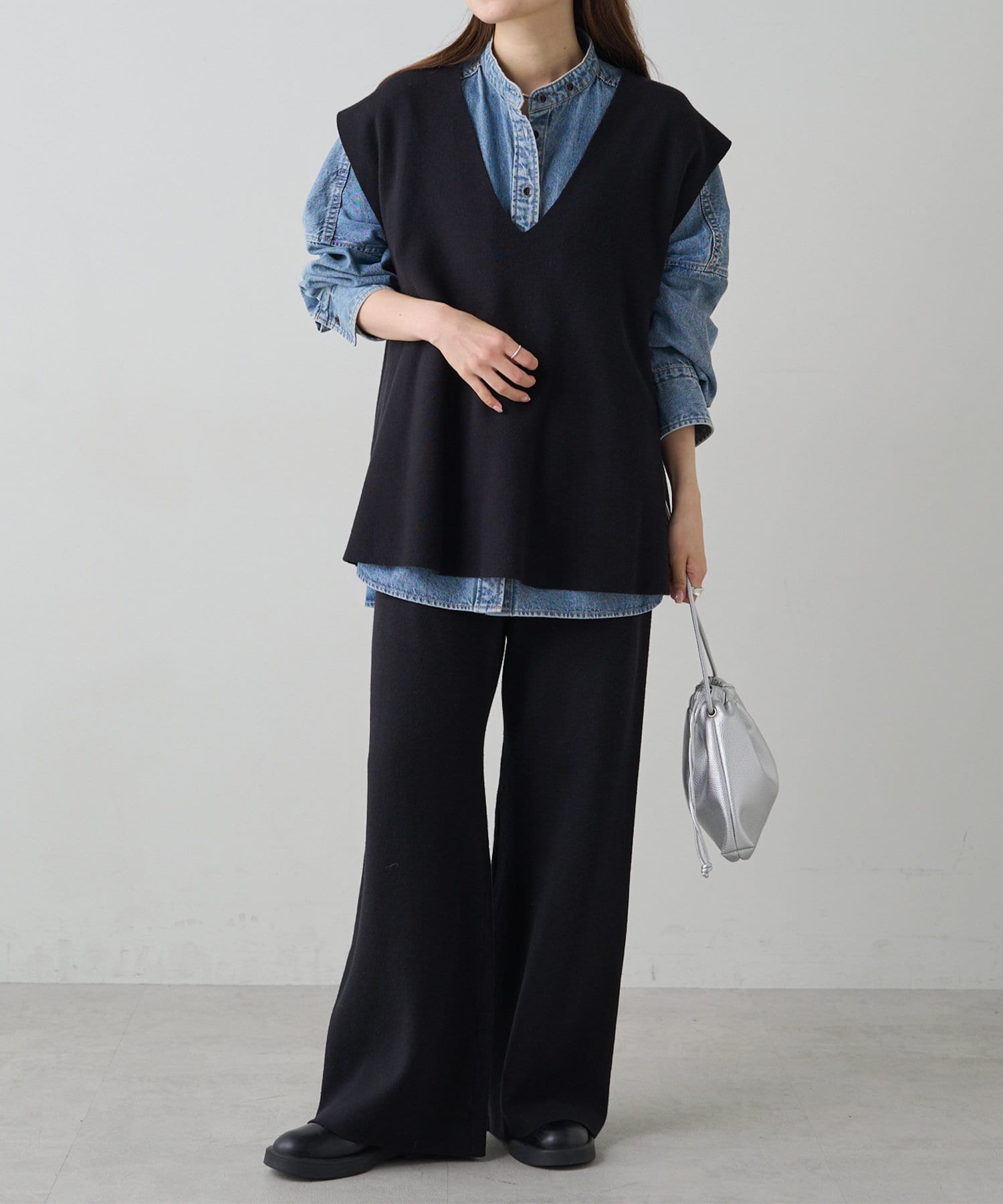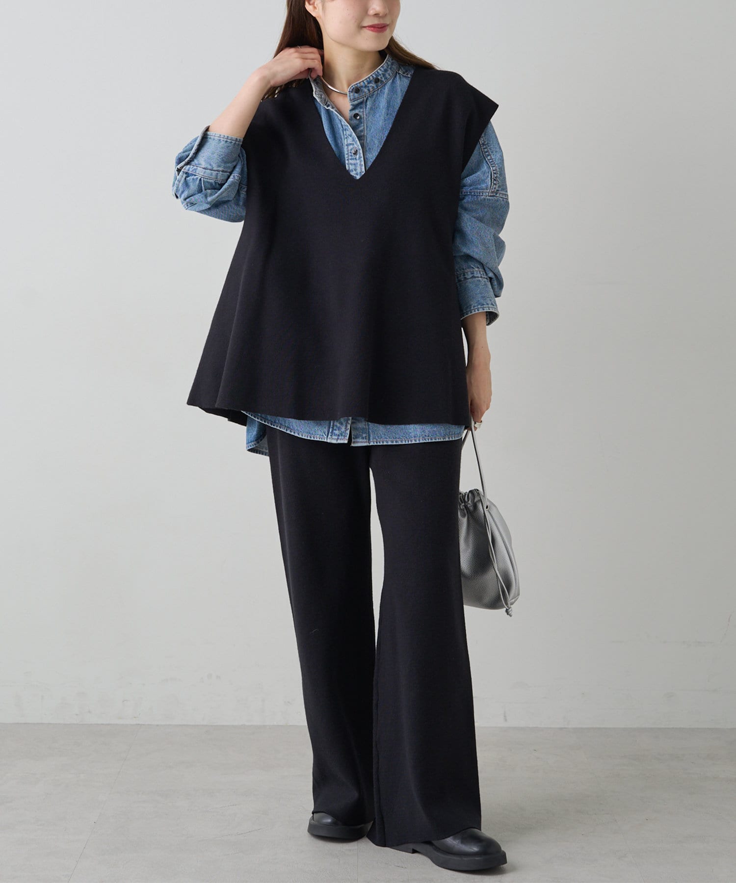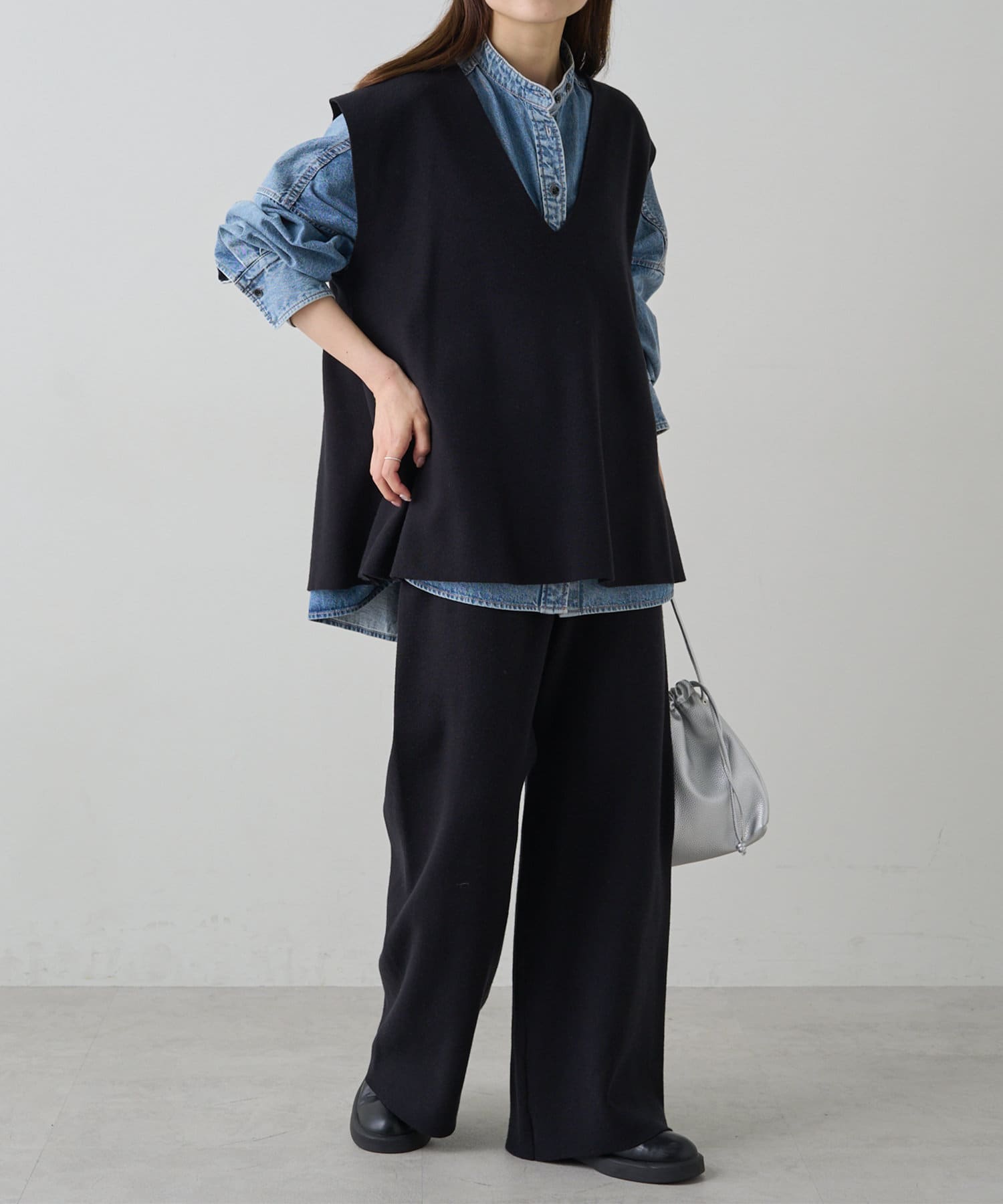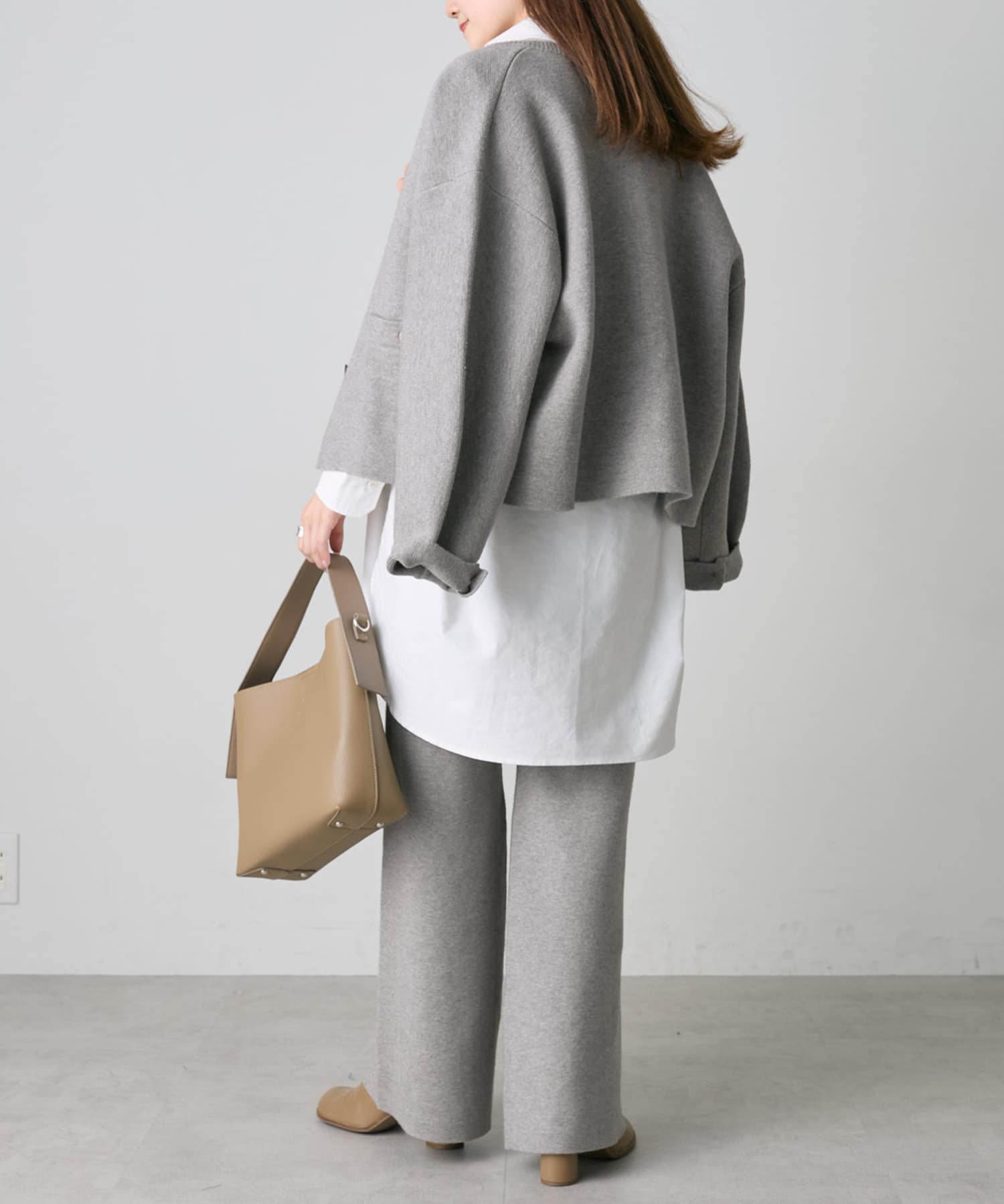 同素材のシリーズのベストやカーディガンを合わせると、セットアップで着用して頂けます。