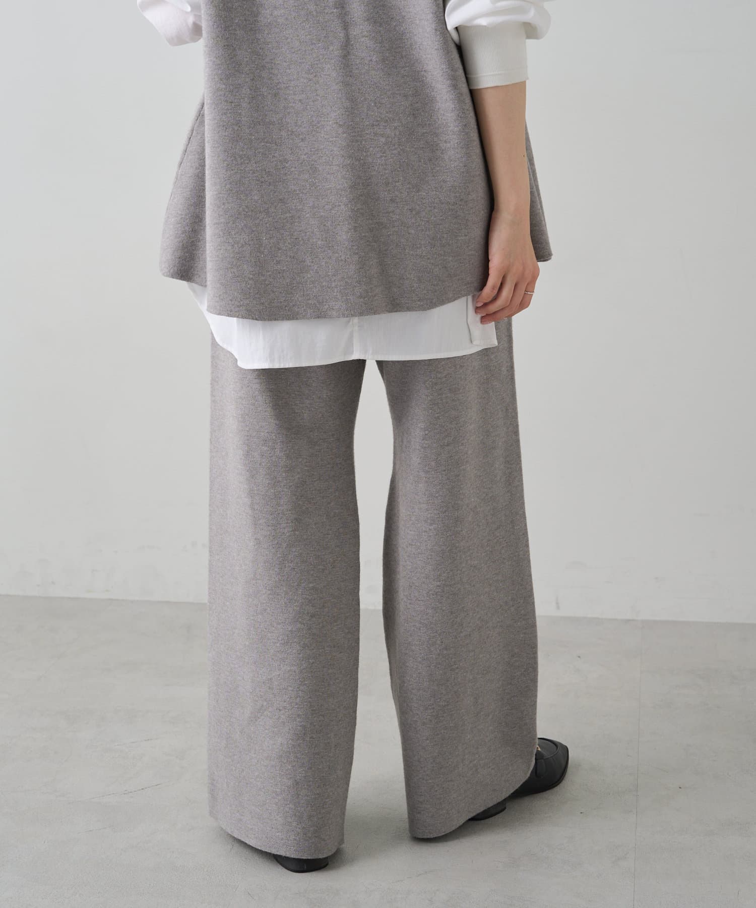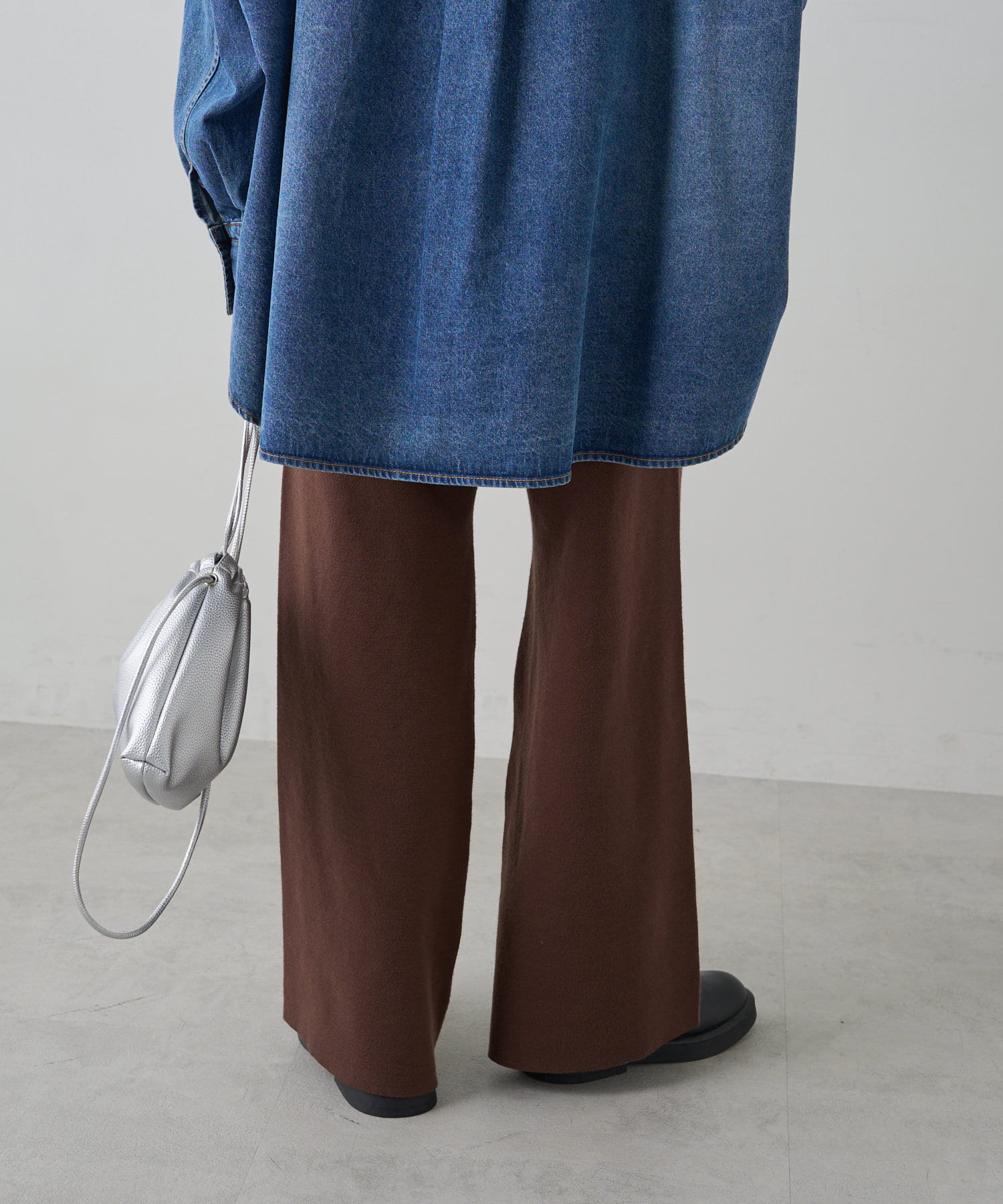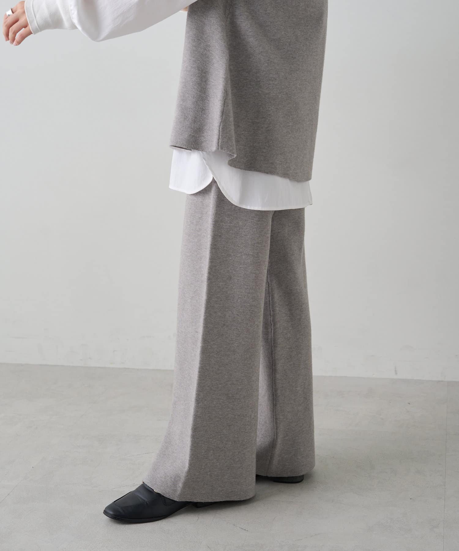 ミラノリブのフラットな編み地により上品なイメージで着られるニットパンツ。