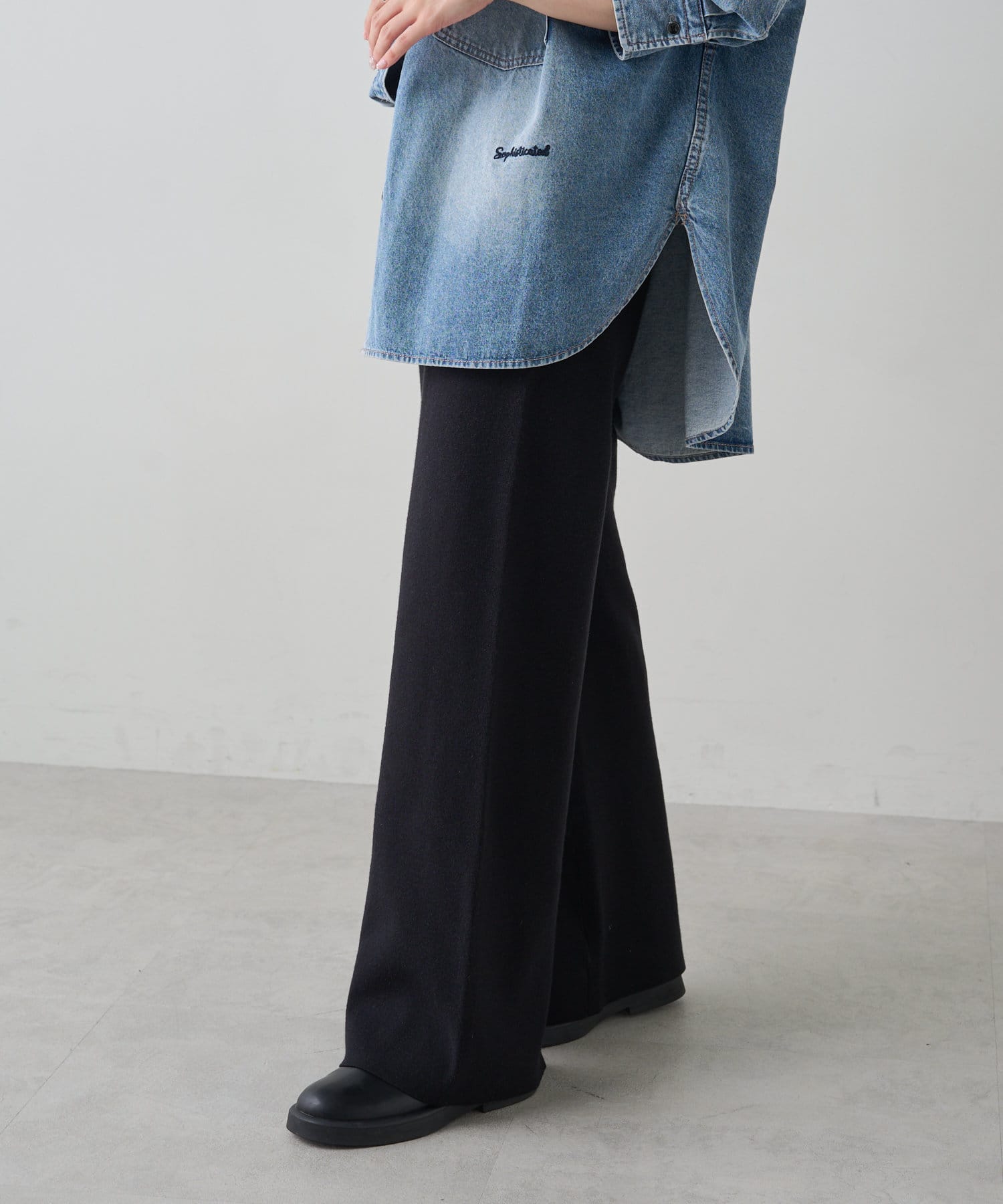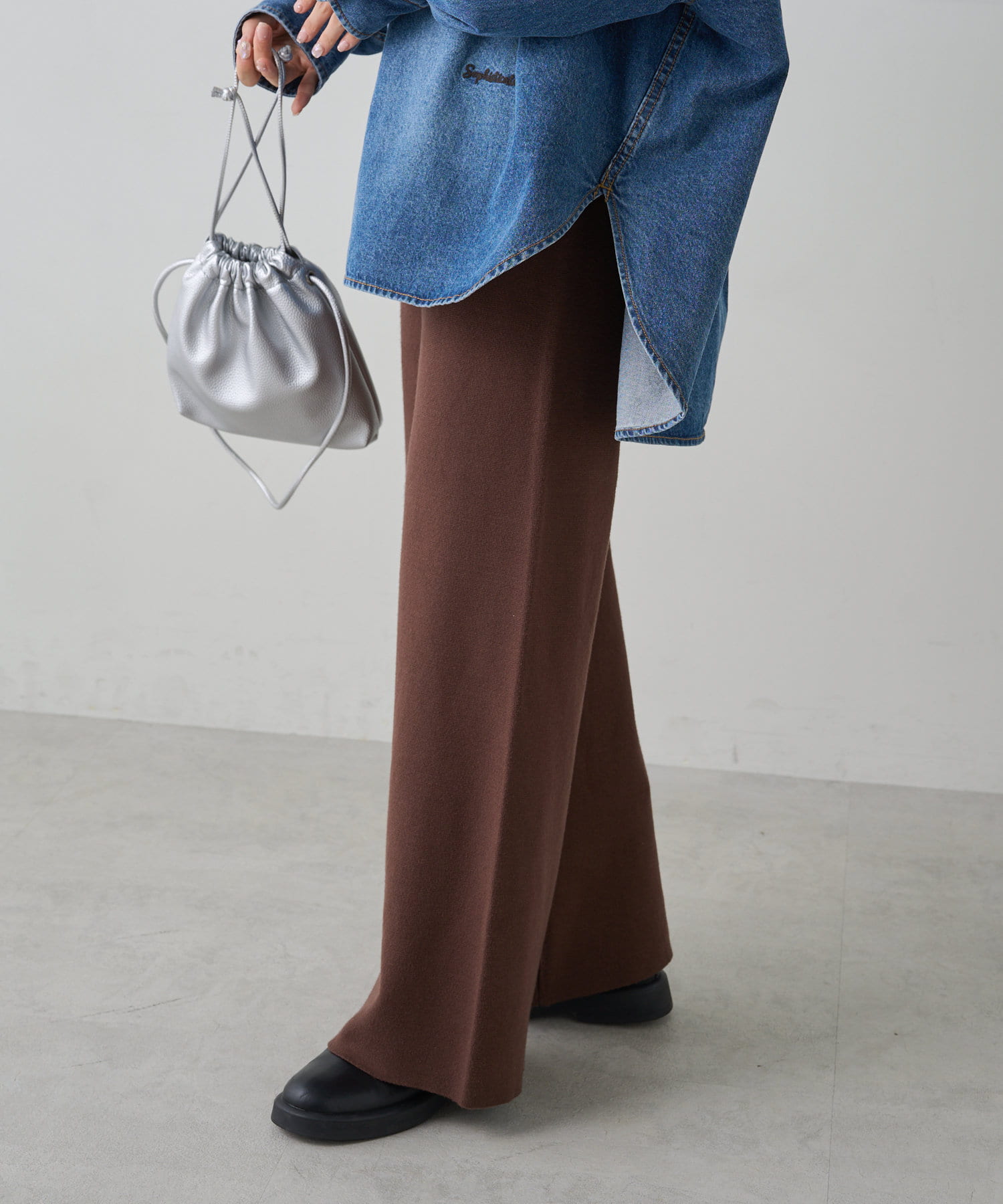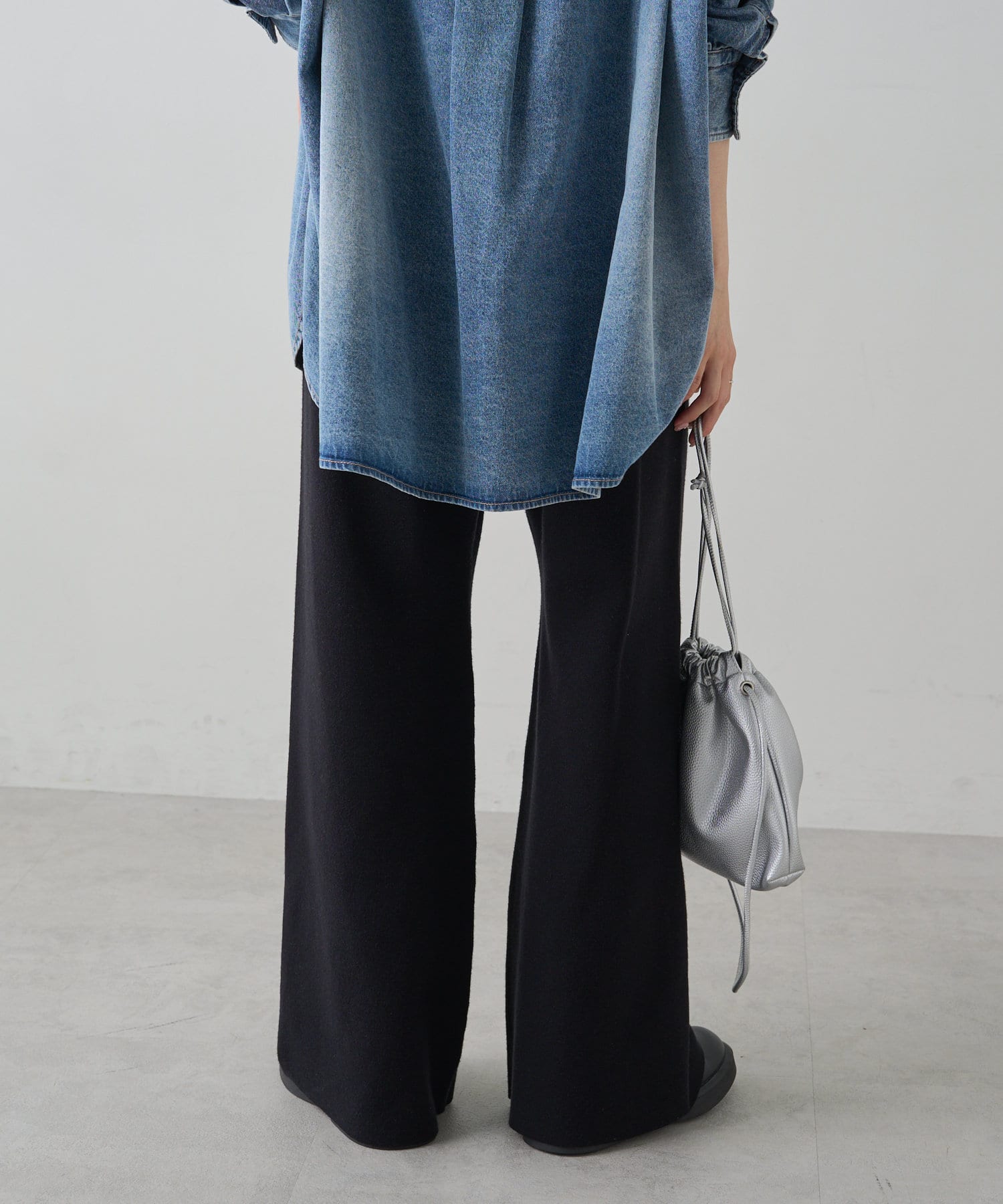 ミラノリブのフラットな編み地により上品なイメージで着られるニットパンツ。