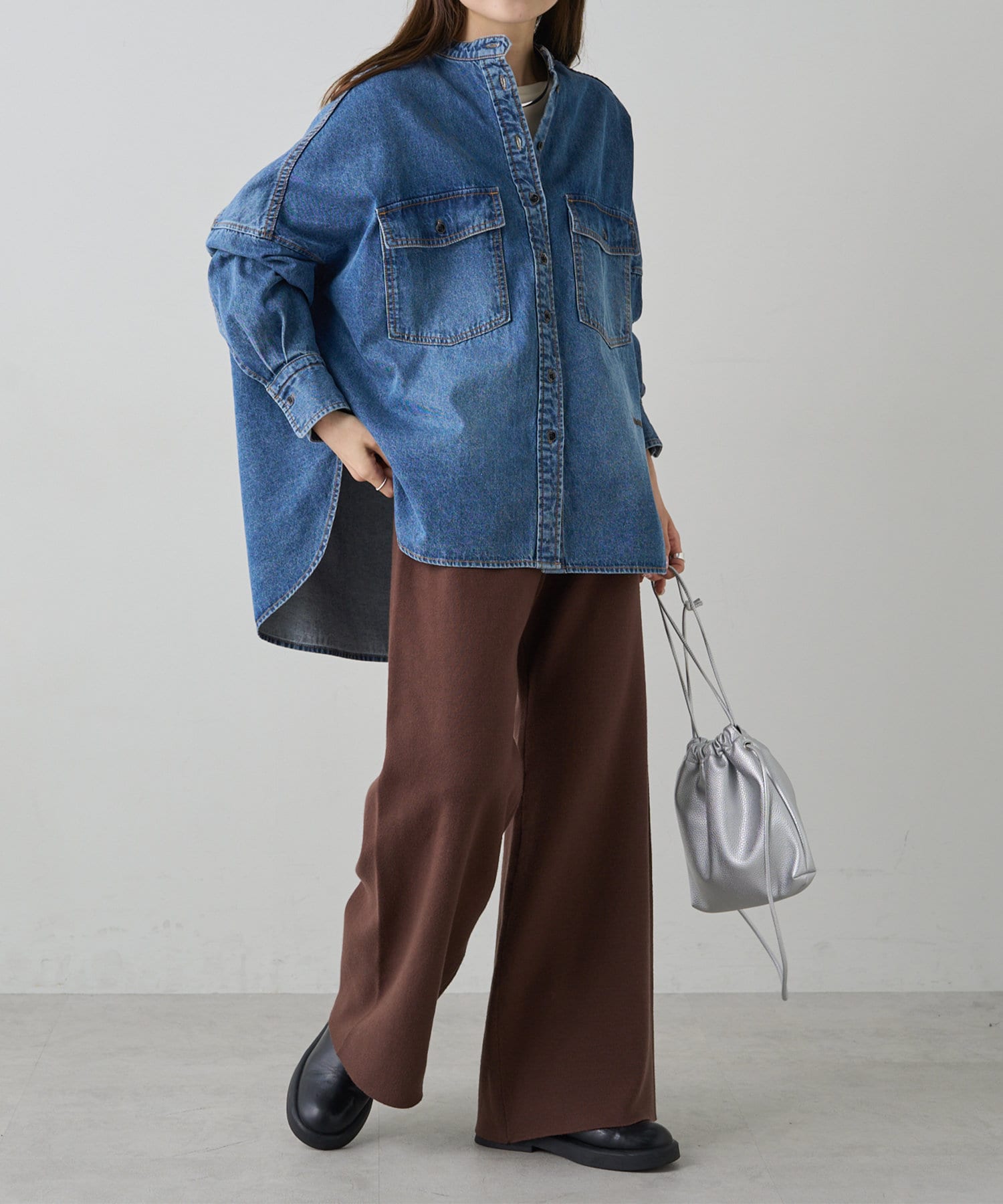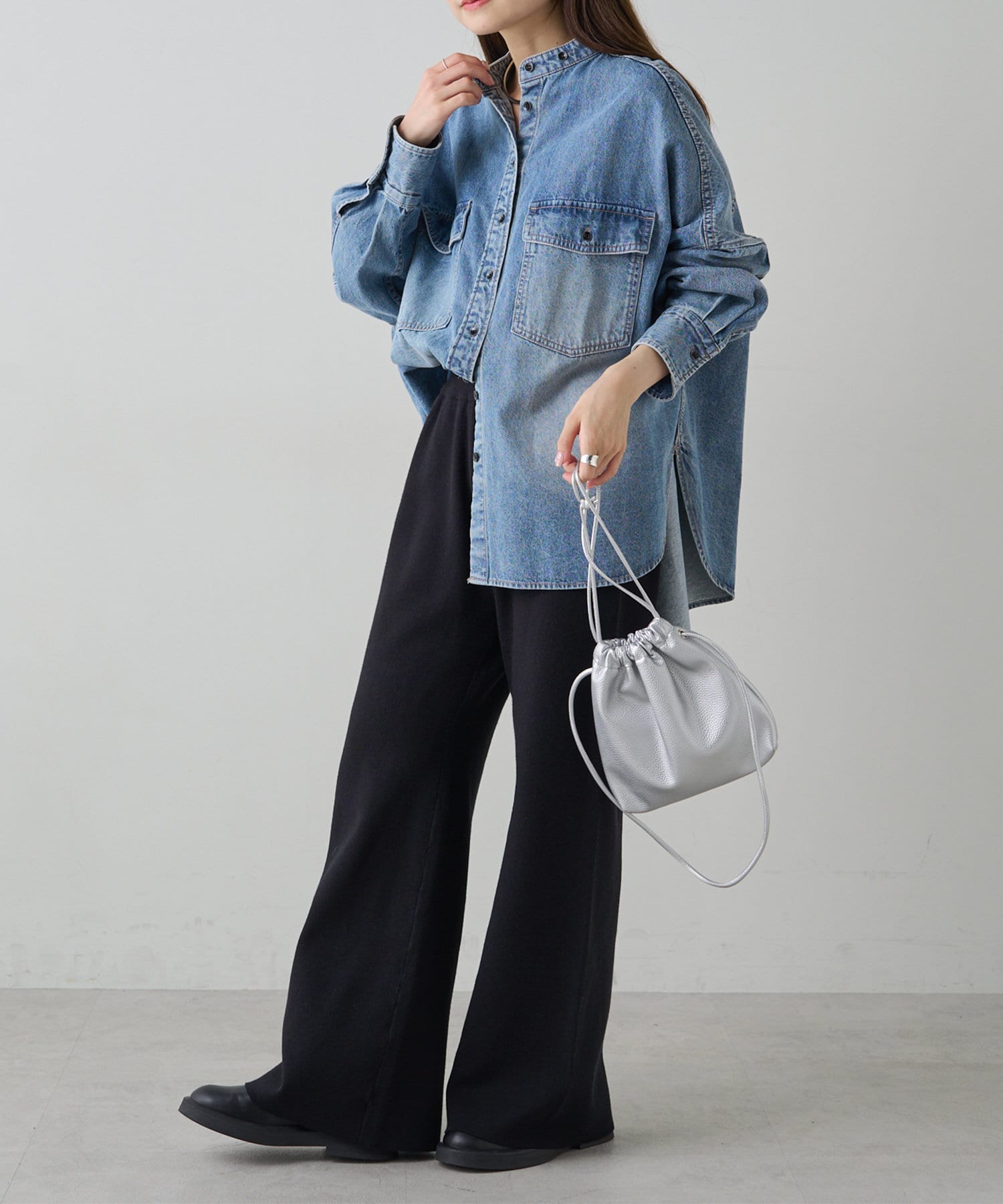 足元にはヒールのあるパンプスやブーツなど綺麗めに振れば、きちんと見せたいシーンにお使いいただけます。