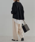 同素材のブラウスとセットアップのコーディネートも可能です。