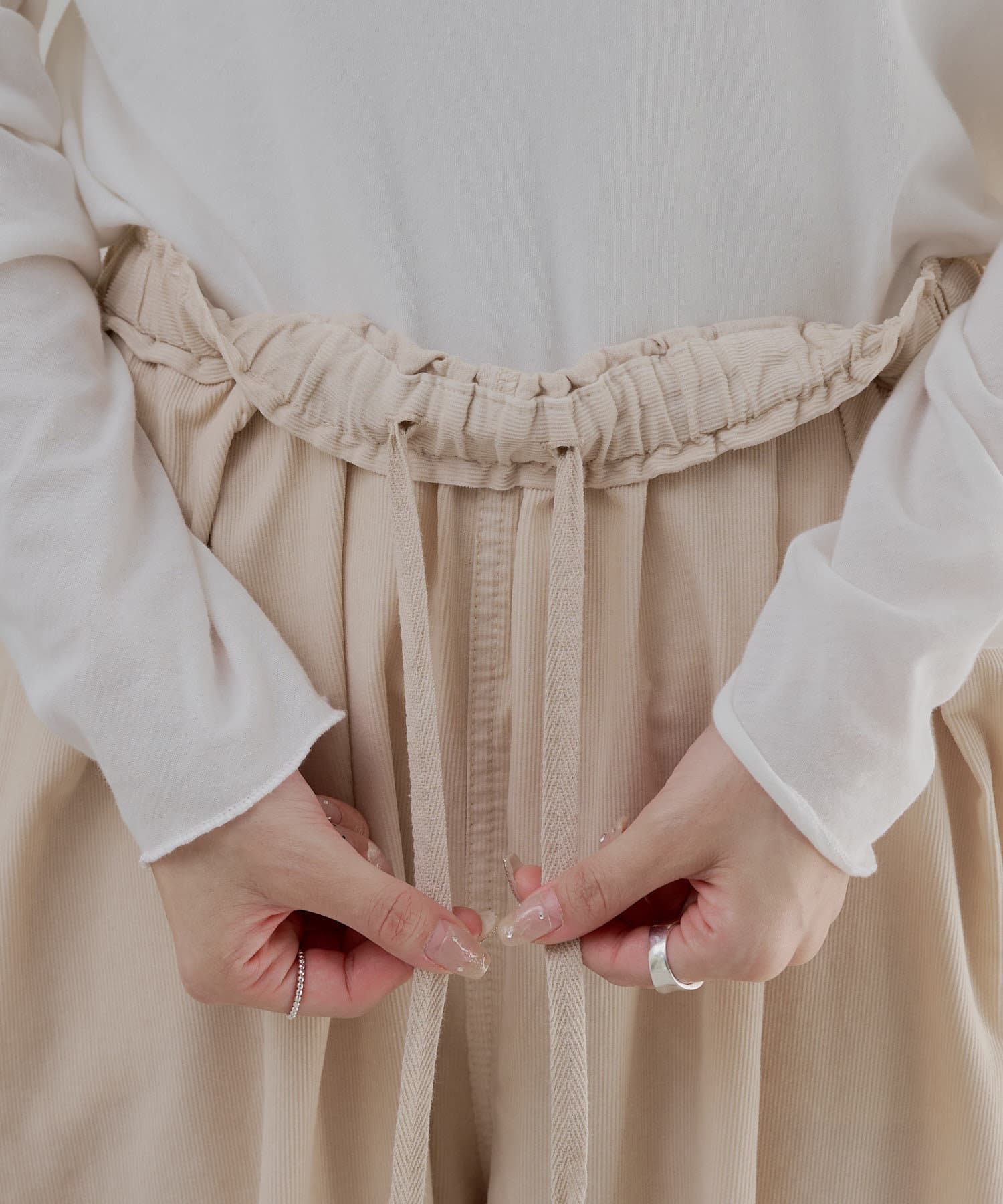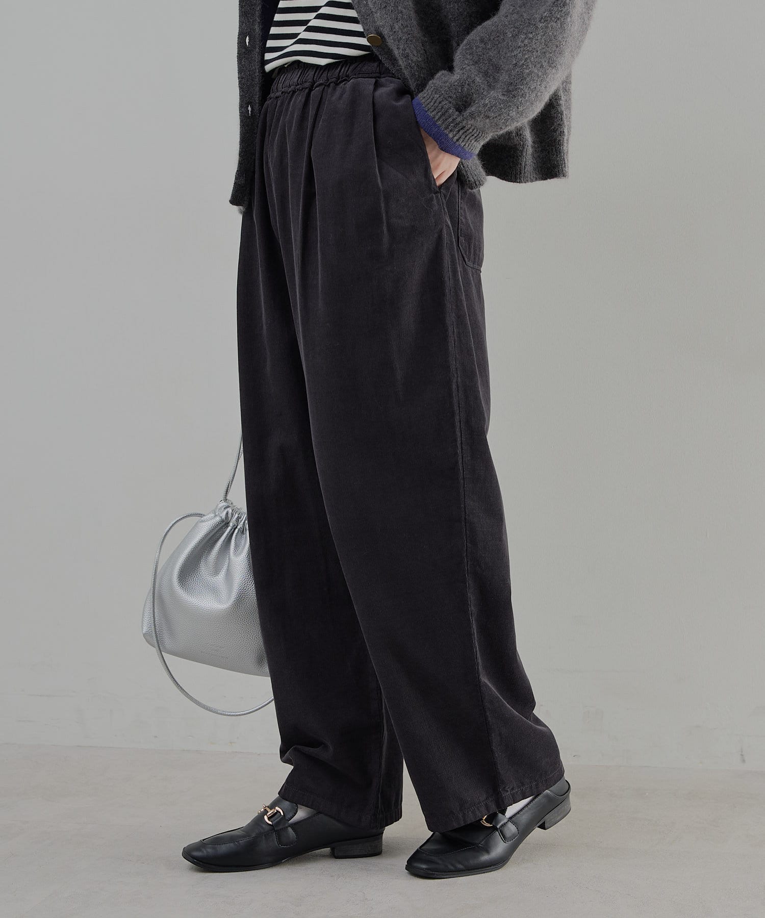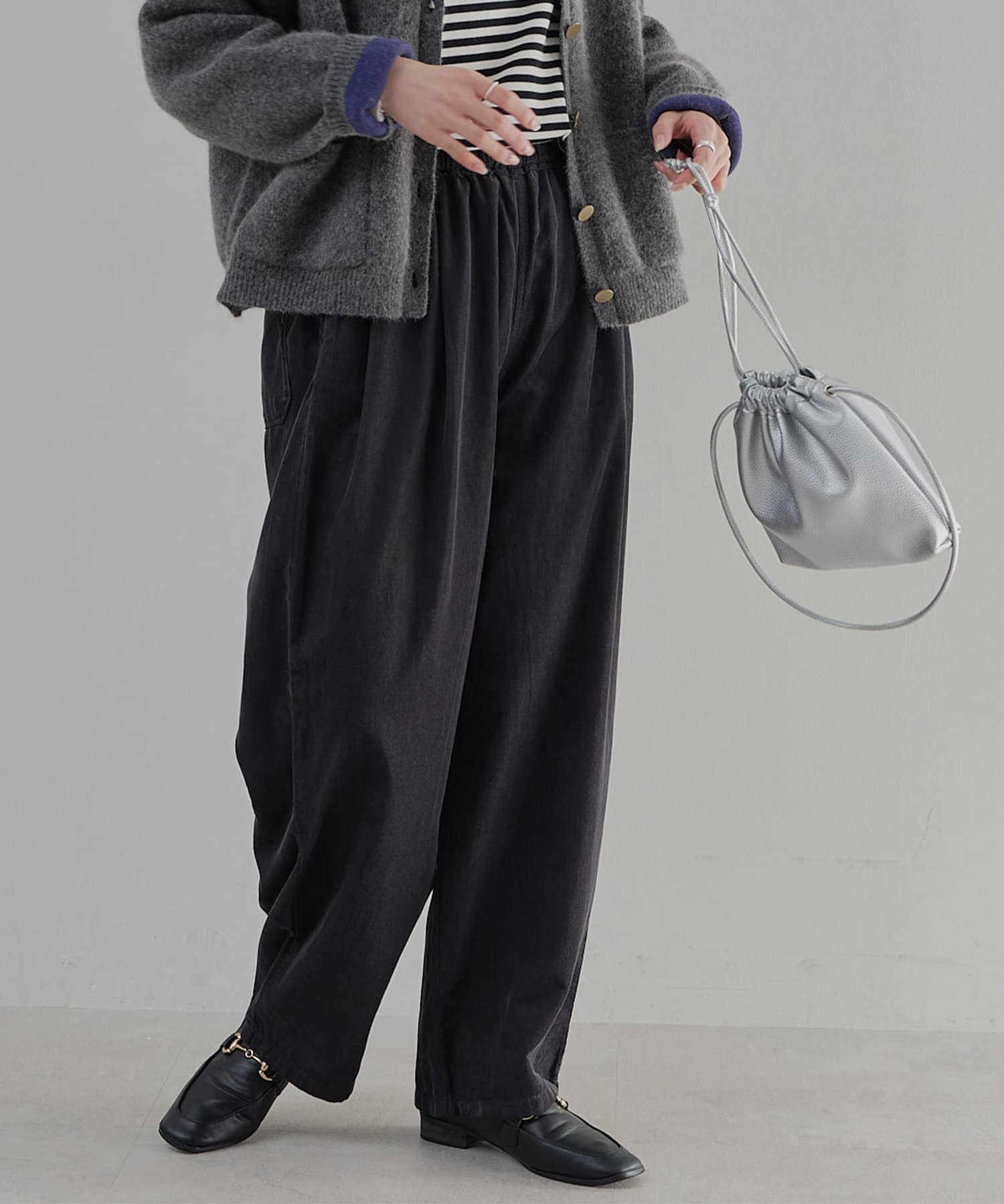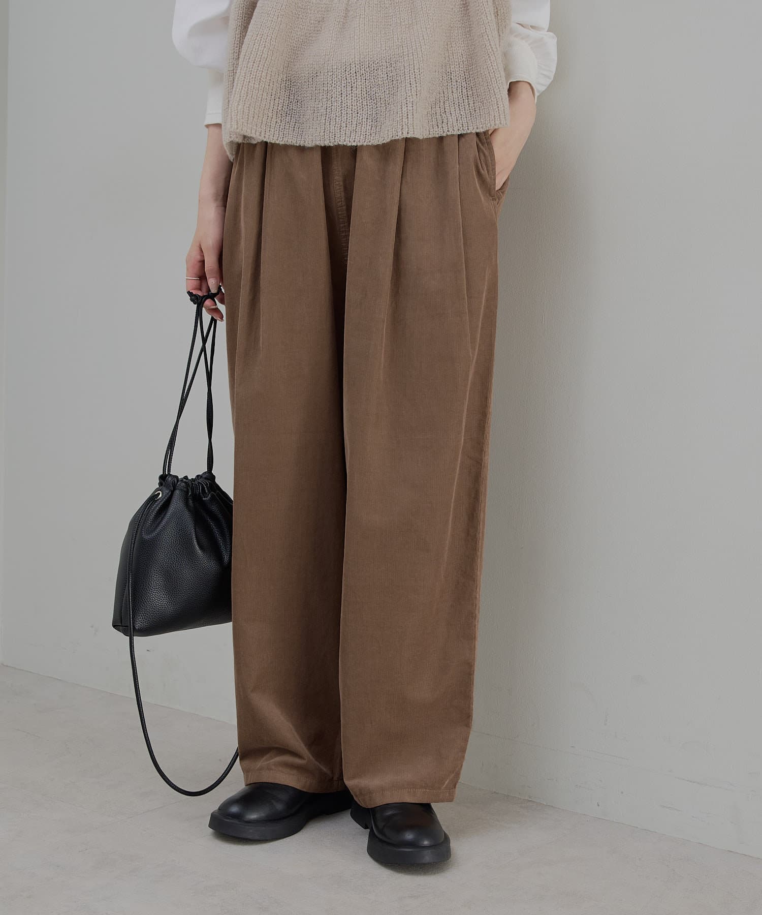 人気のギャザーパンツが秋冬にぴったりな細コール素材で登場。