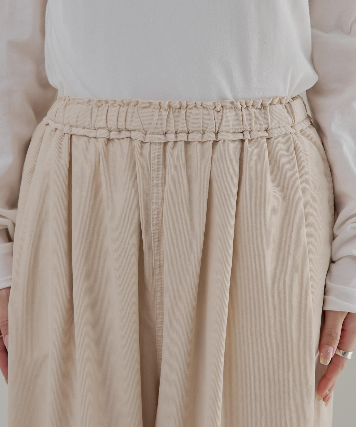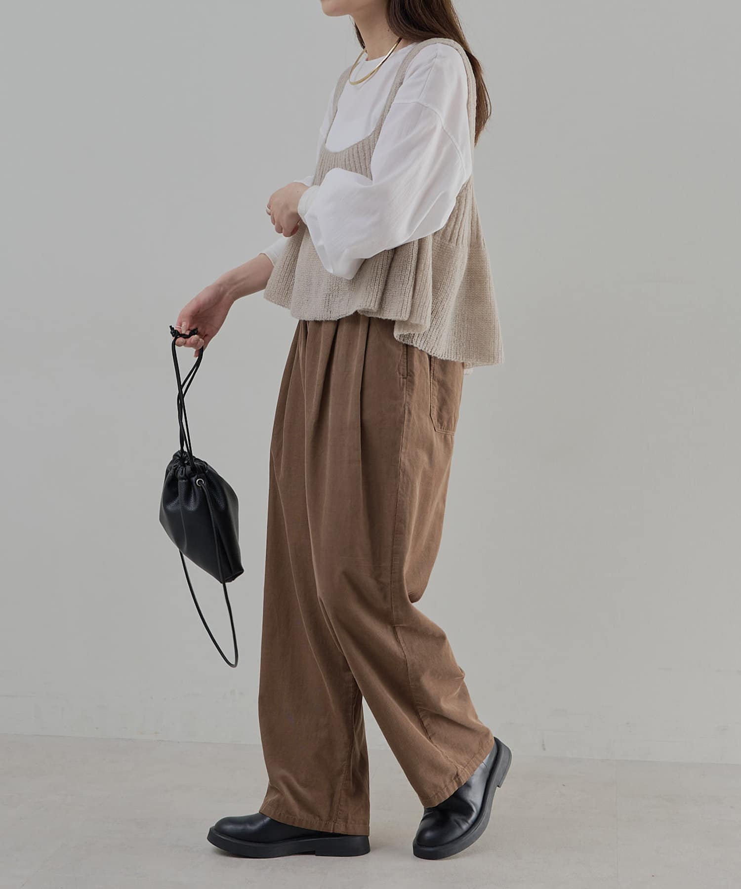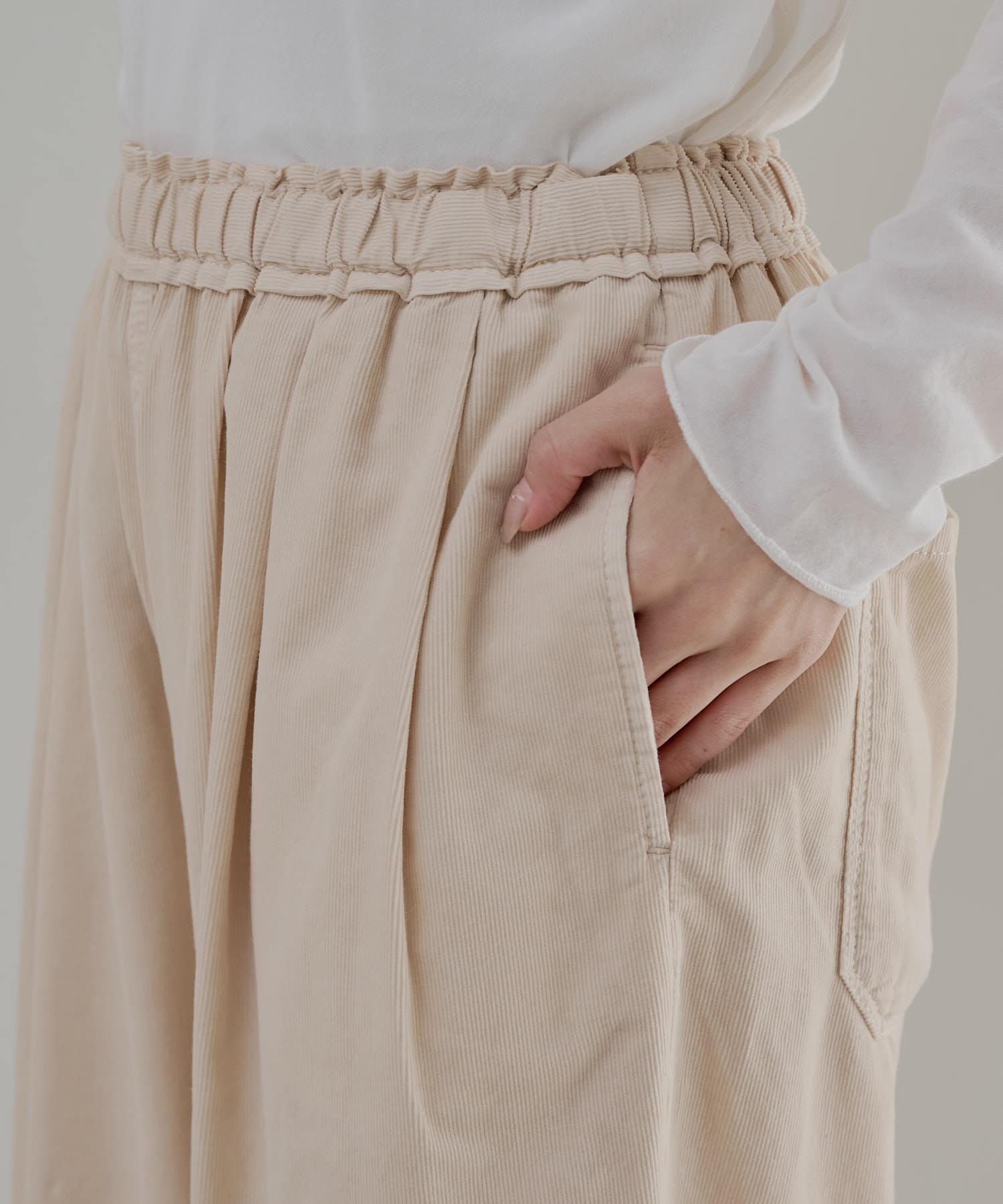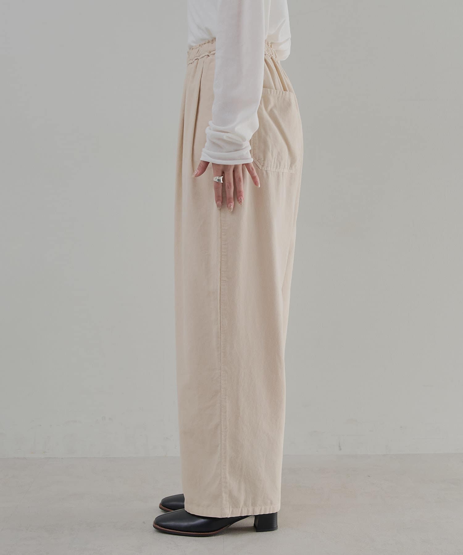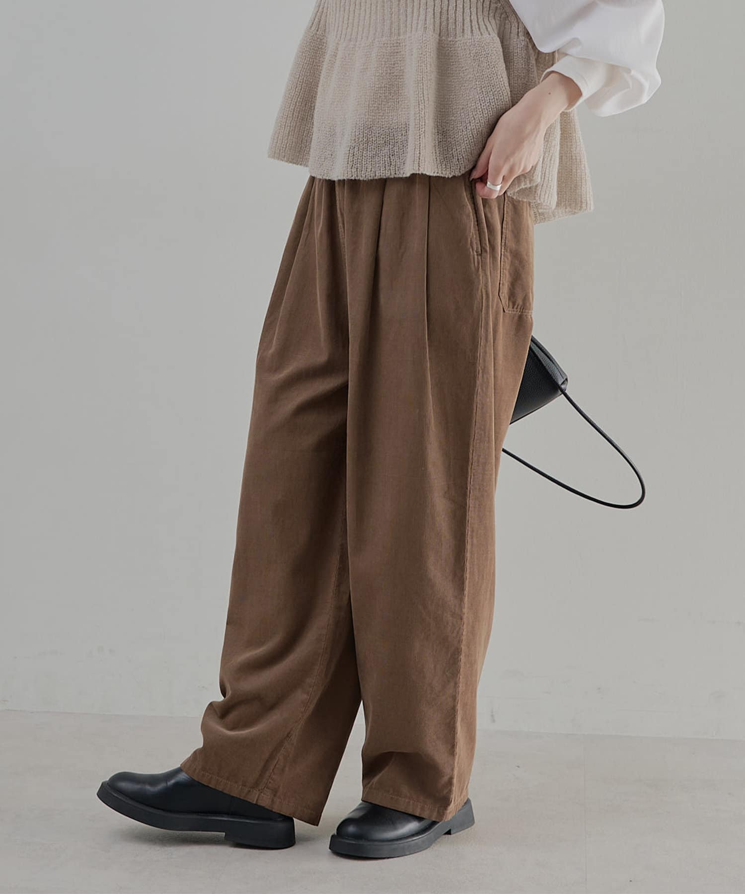 人気のギャザーパンツが秋冬にぴったりな細コール素材で登場。