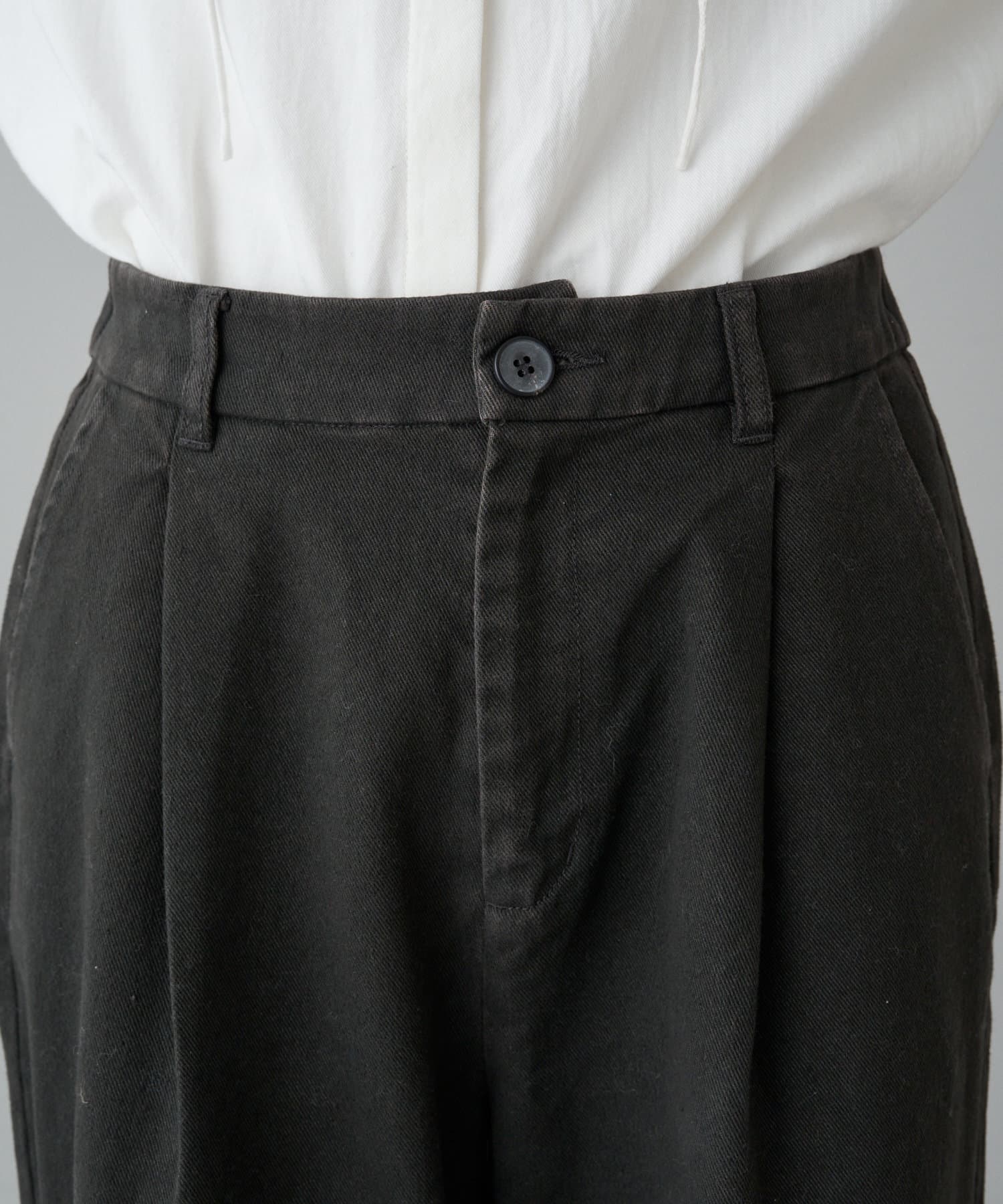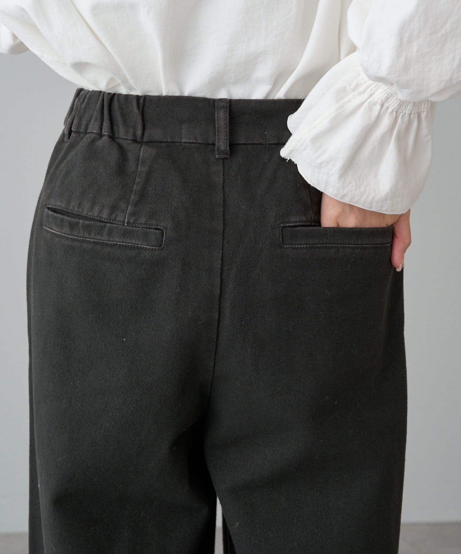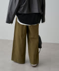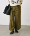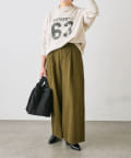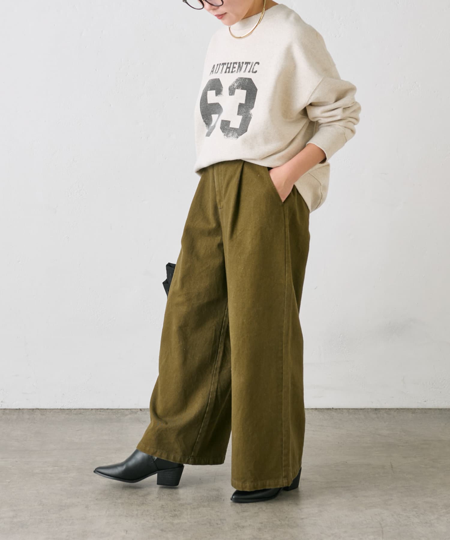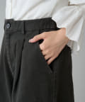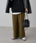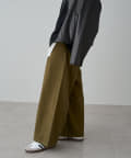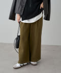 フロントにタックが入っており、程よくゆとりのあるストレートシルエットで、脚のラインをカバーしつつこなれ感のあるスタイリングが完成します。