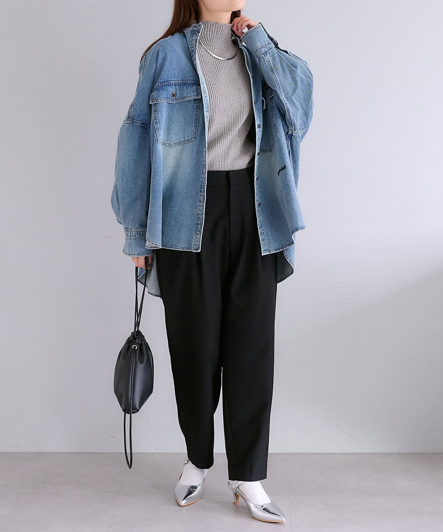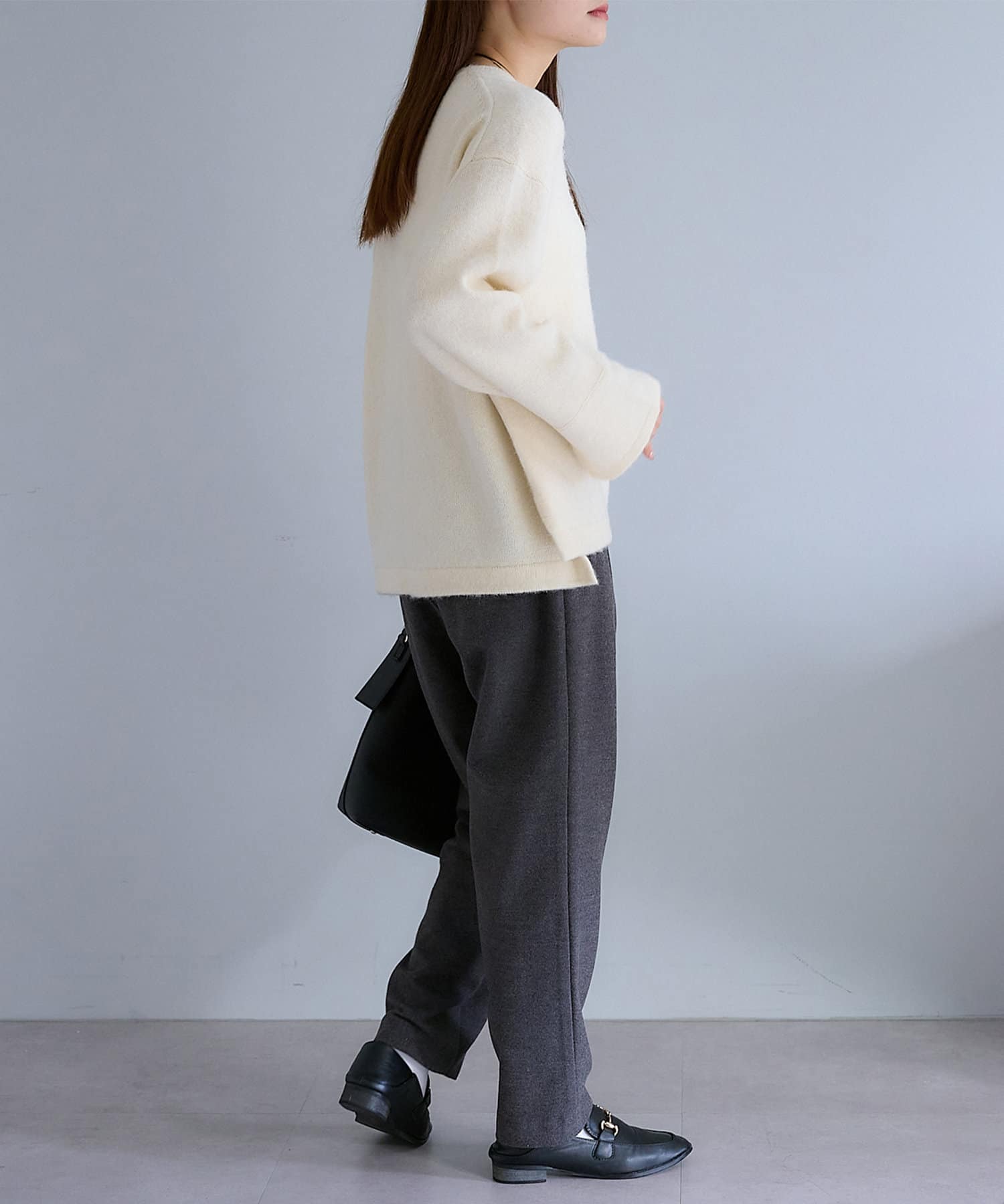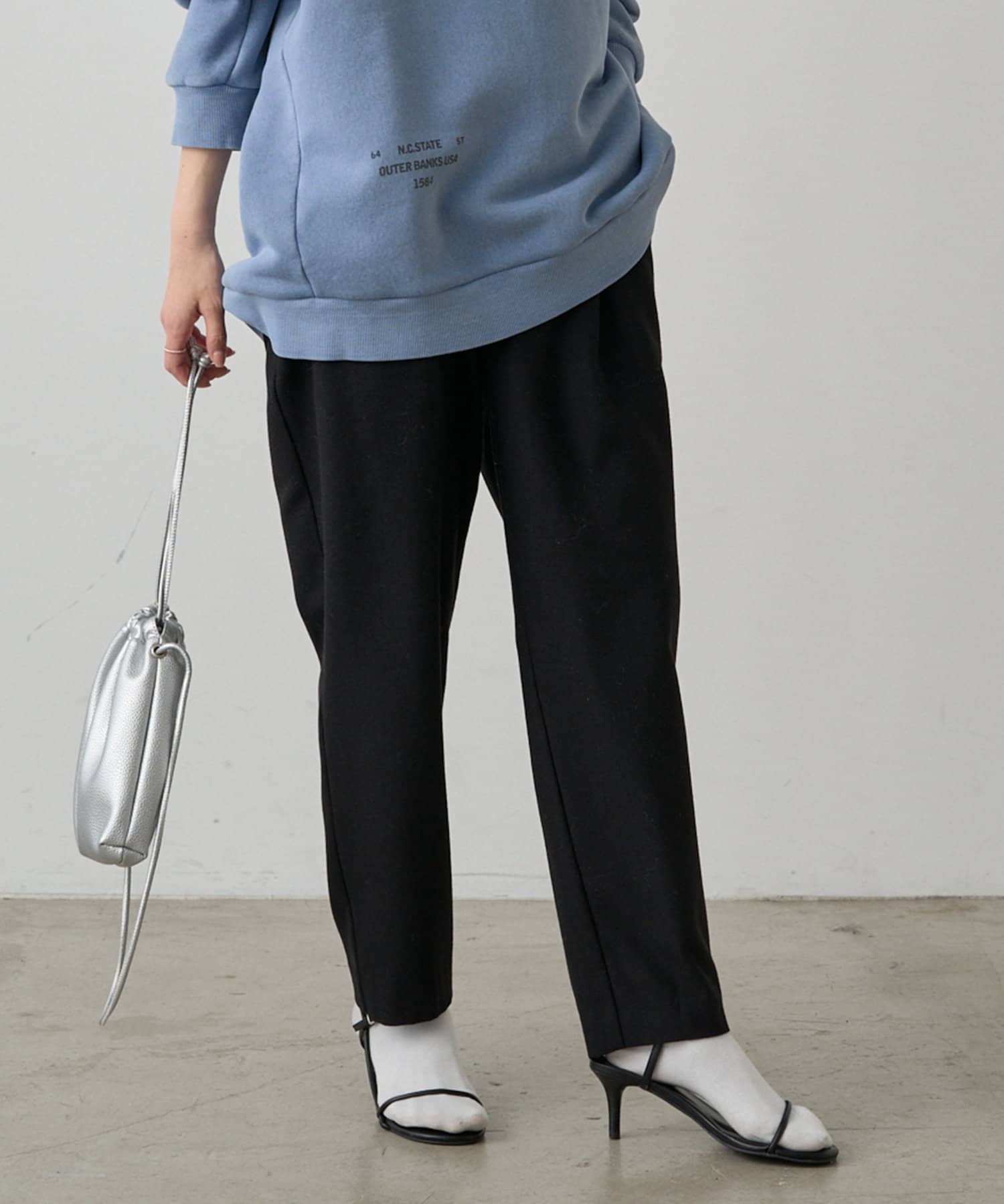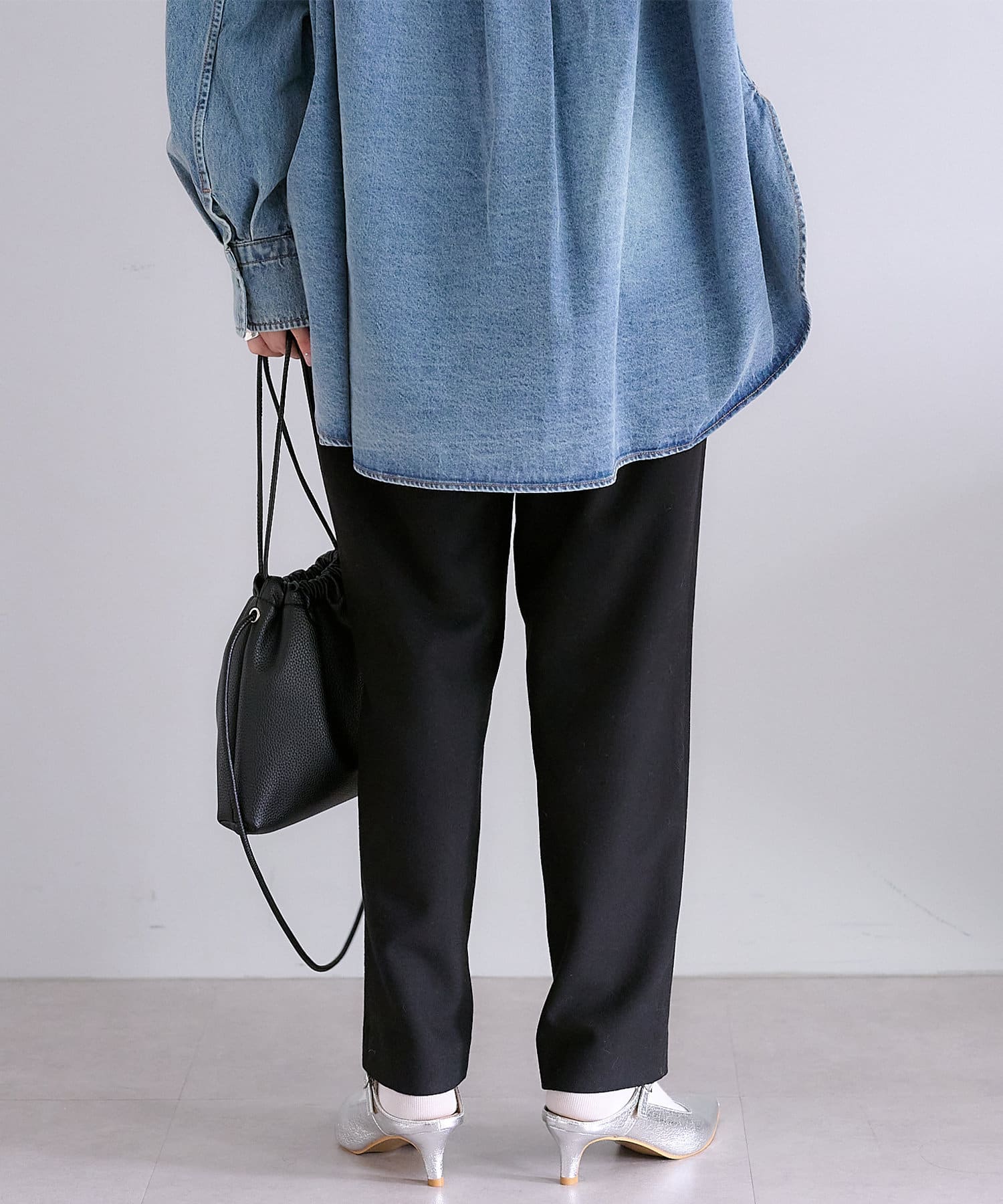 お仕事用としてはもちろん、ニットやアウターなどトップスが重くなる時期にバランスが整う細見えパンツは重宝しますよ。