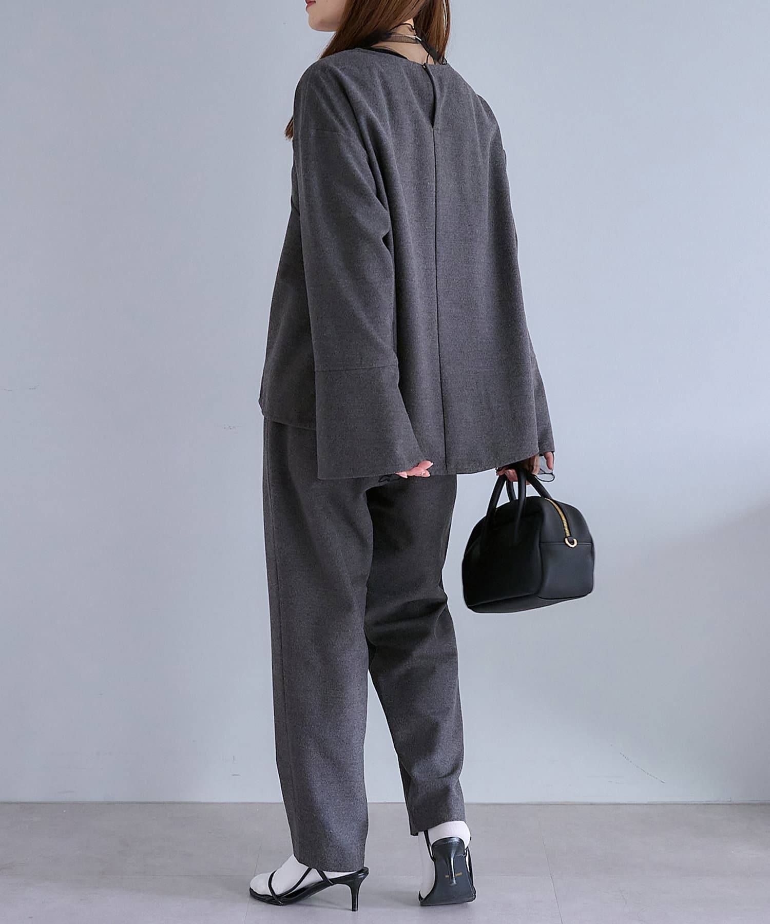 両面起毛生地はビスチェセットアップ、フレアブラウスと同素材。