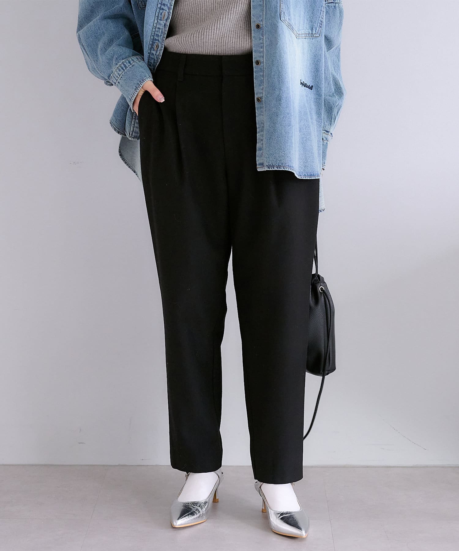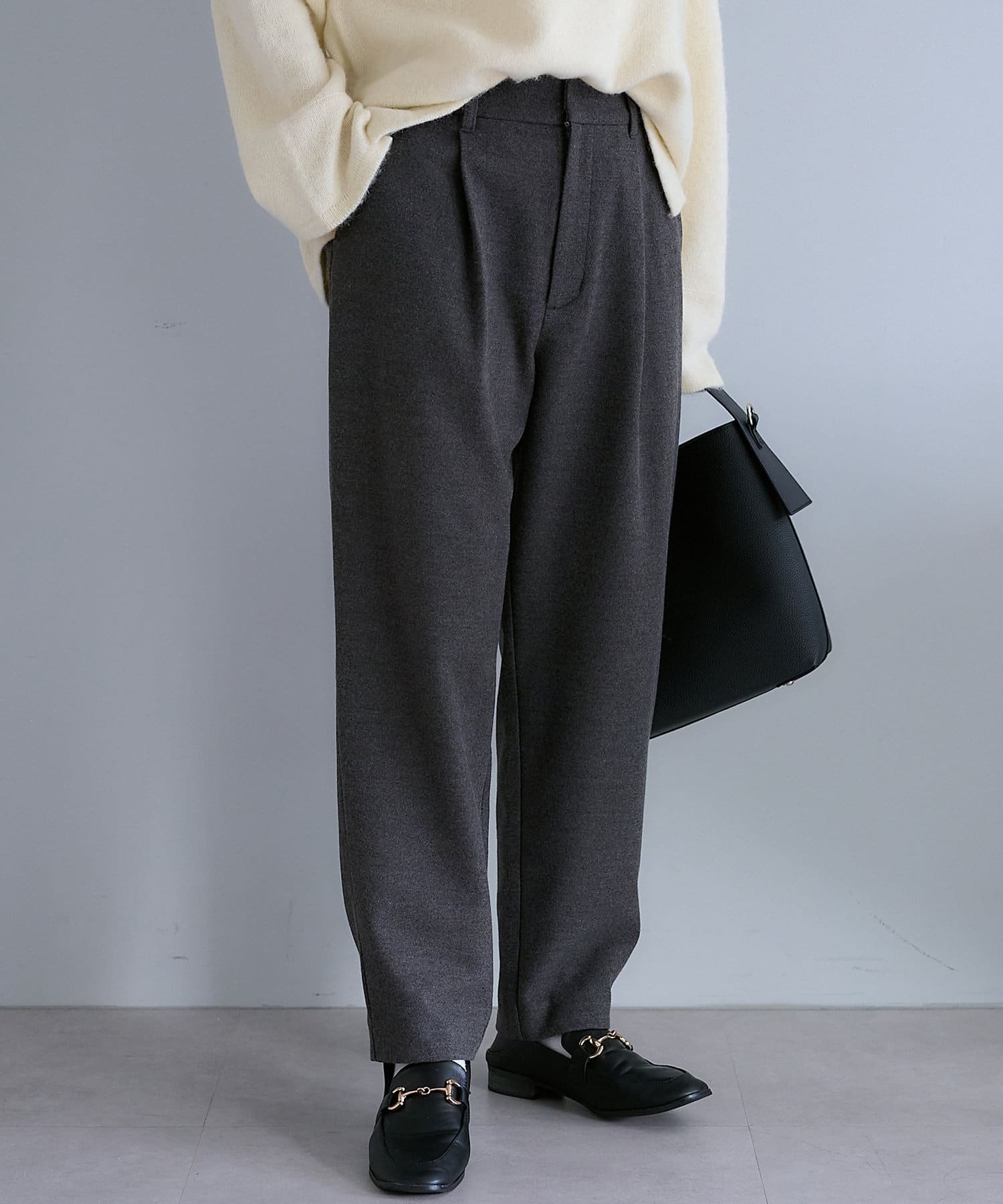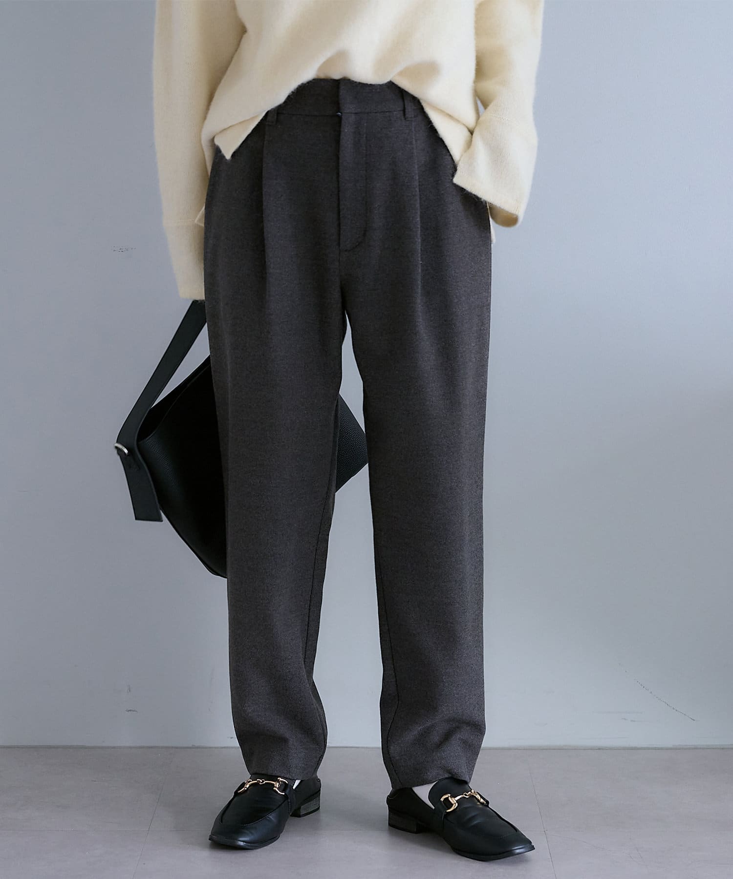 すっきりとしたシルエットできちんと感のあるテーパードパンツ。