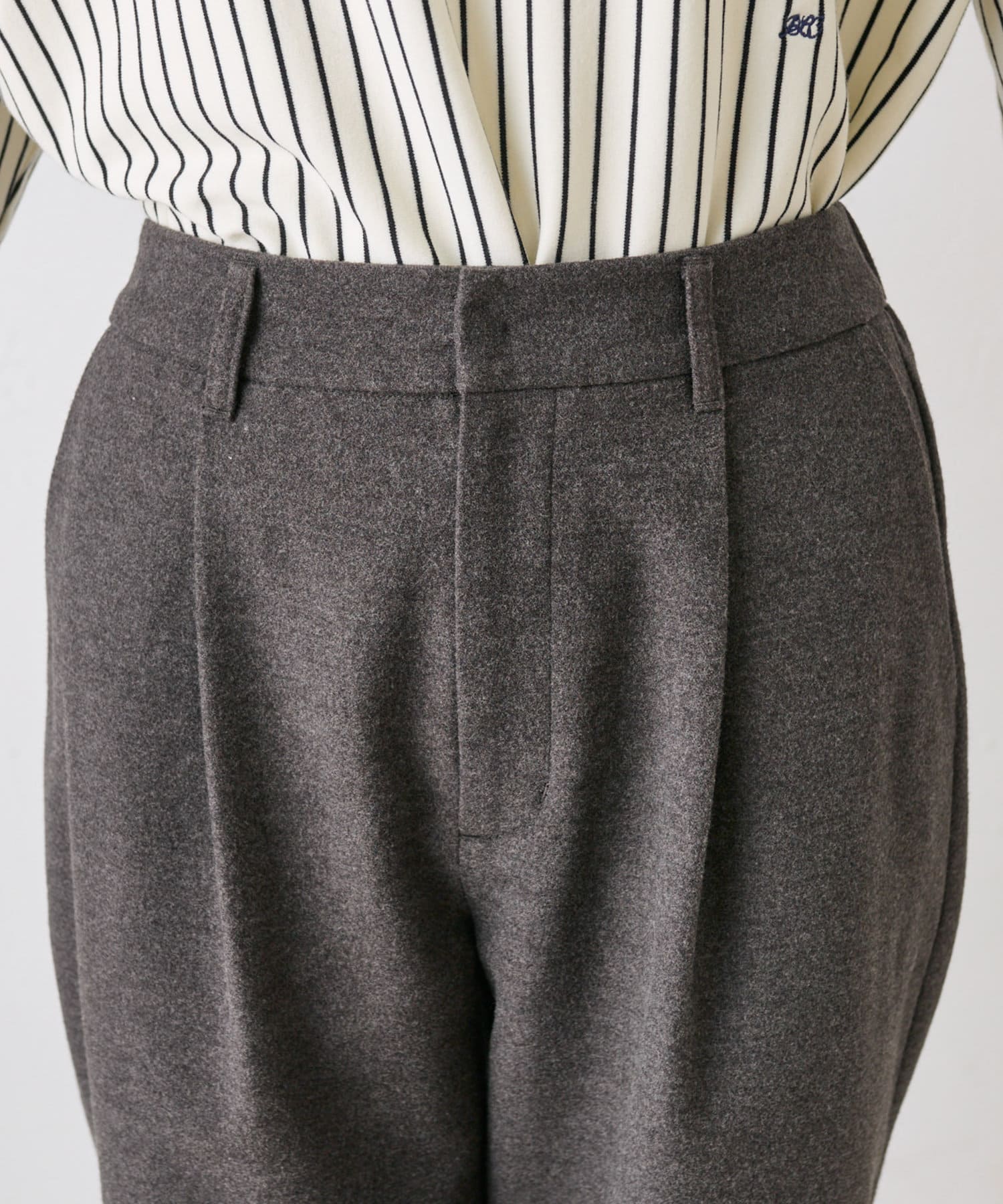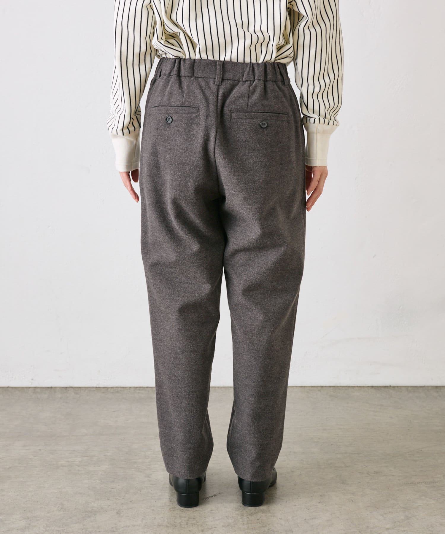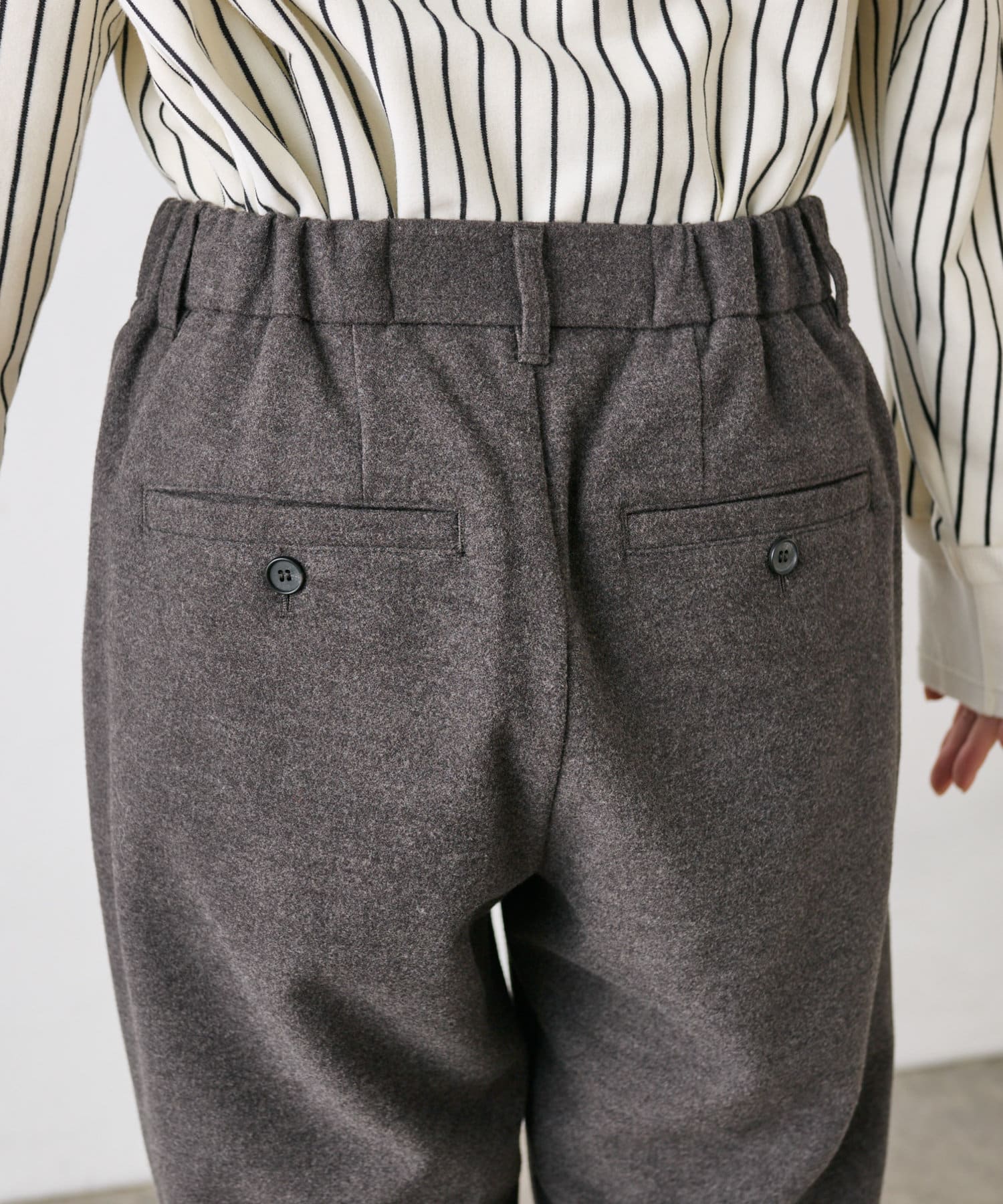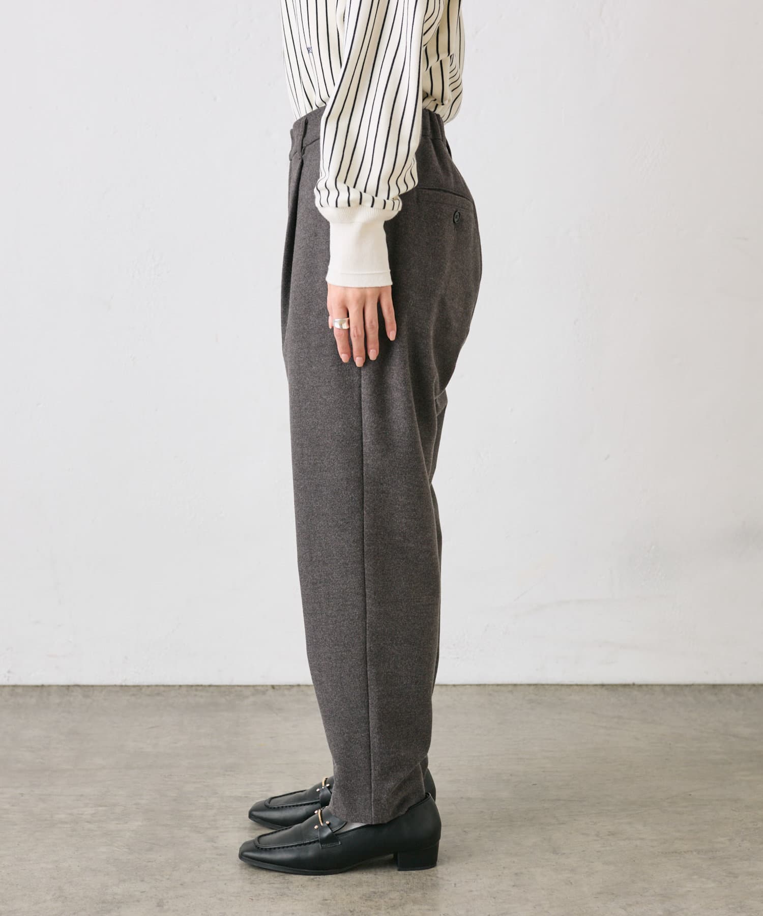 すっきりとしたシルエットできちんと感のあるテーパードパンツ。
