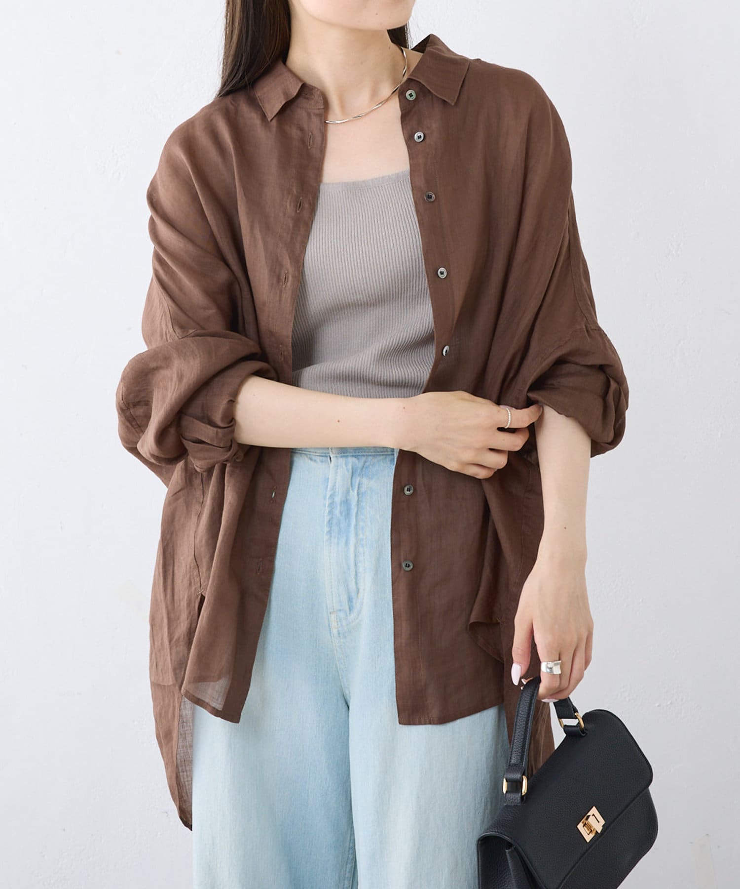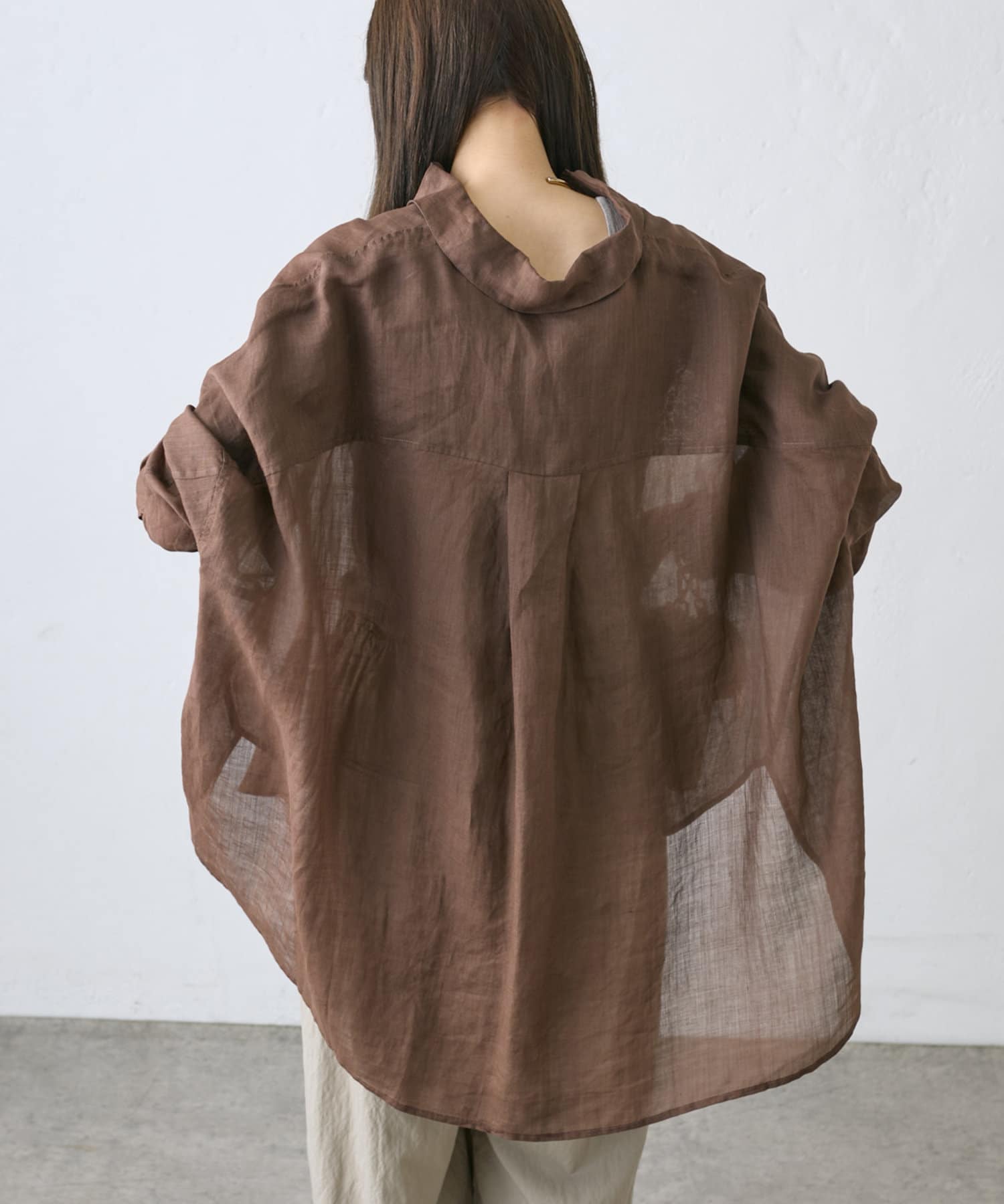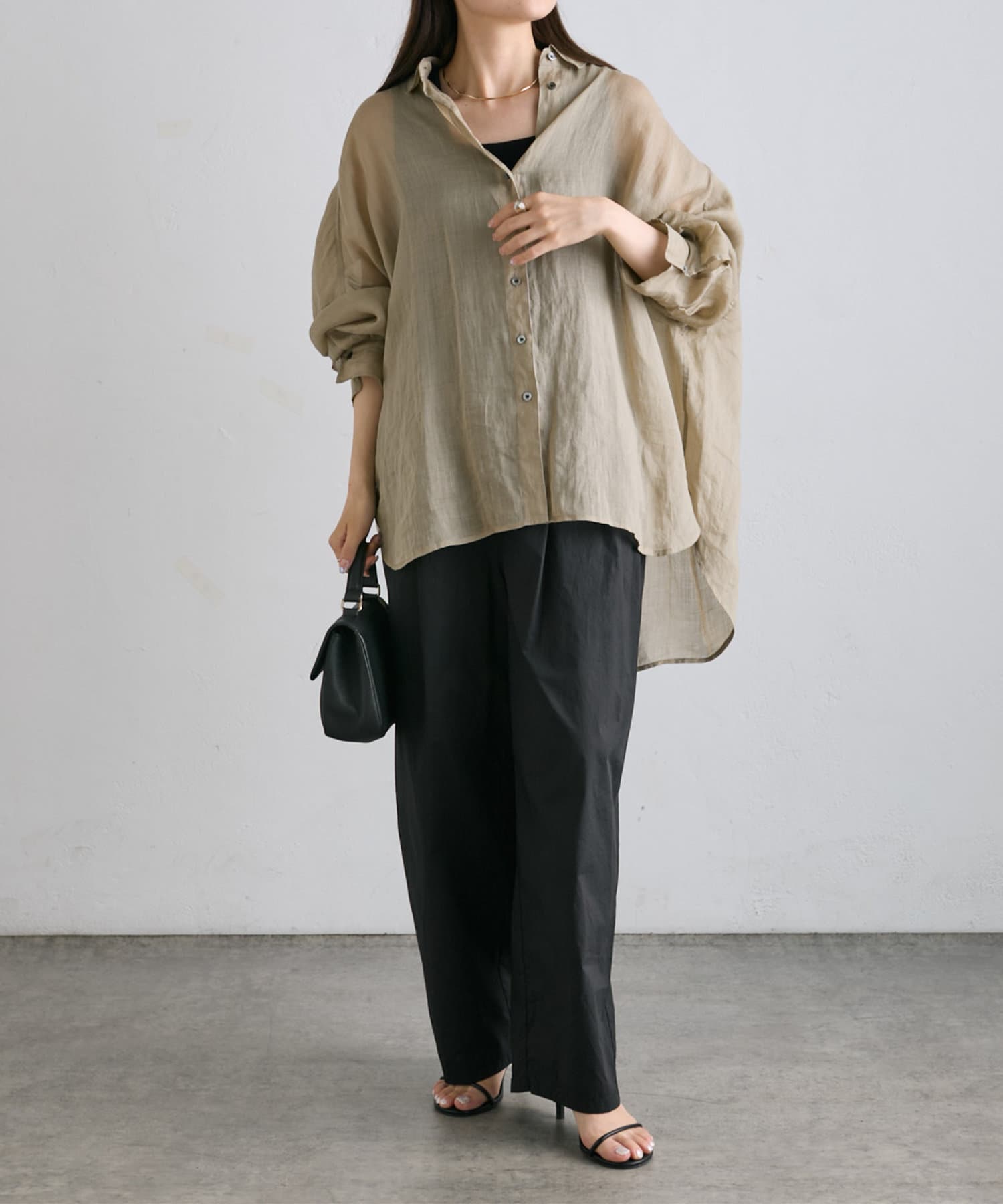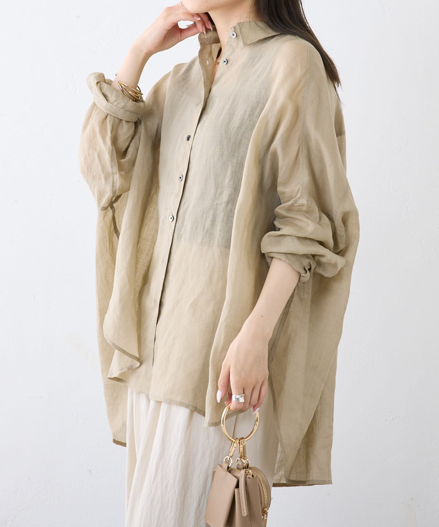 軽くて透け感のある軽やかなラミー素材は、冷房対策や日よけ対策として着用しやすい1着。