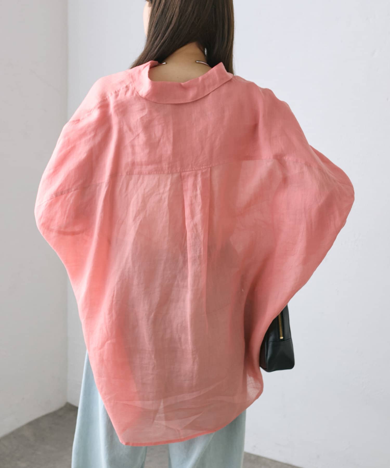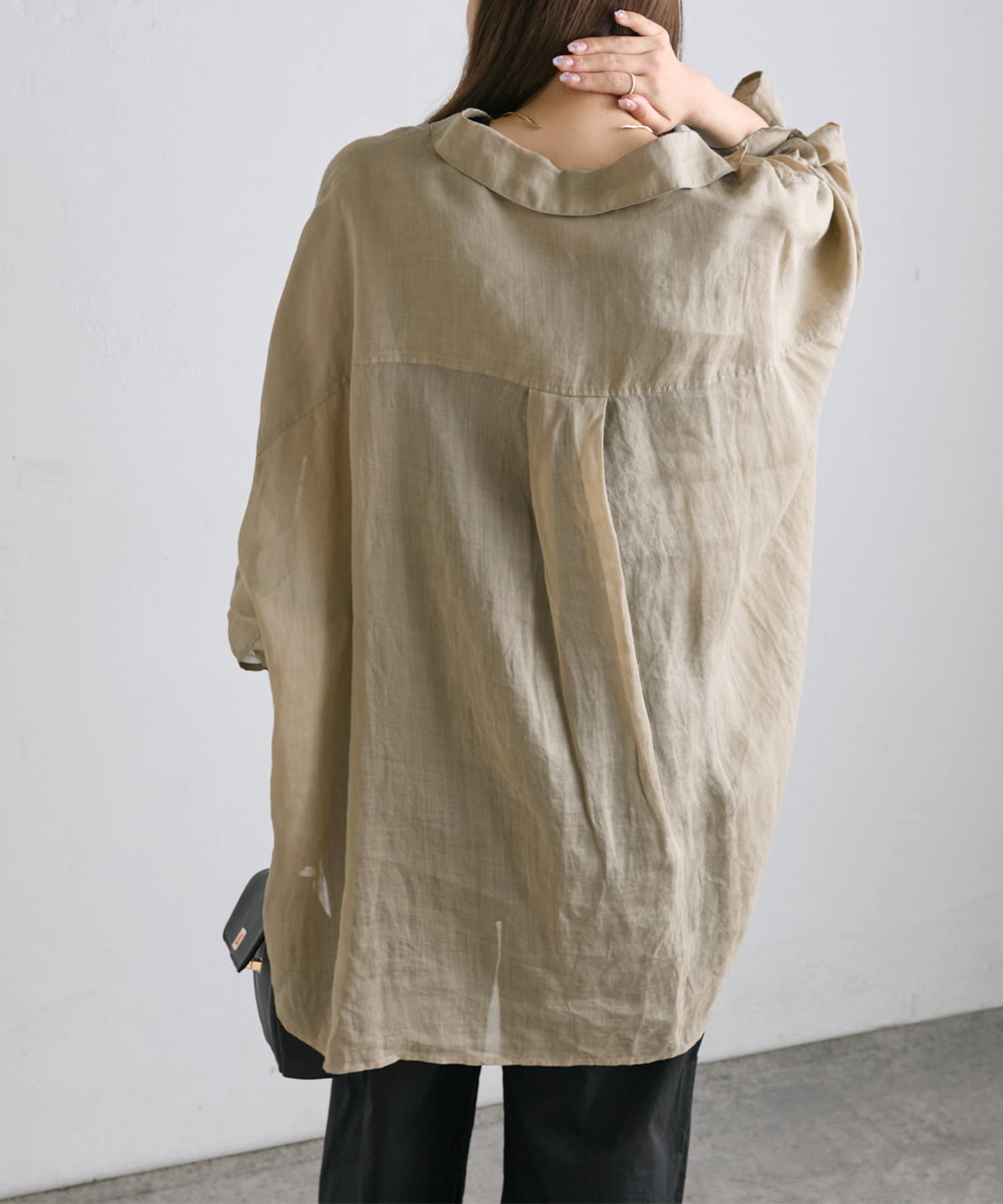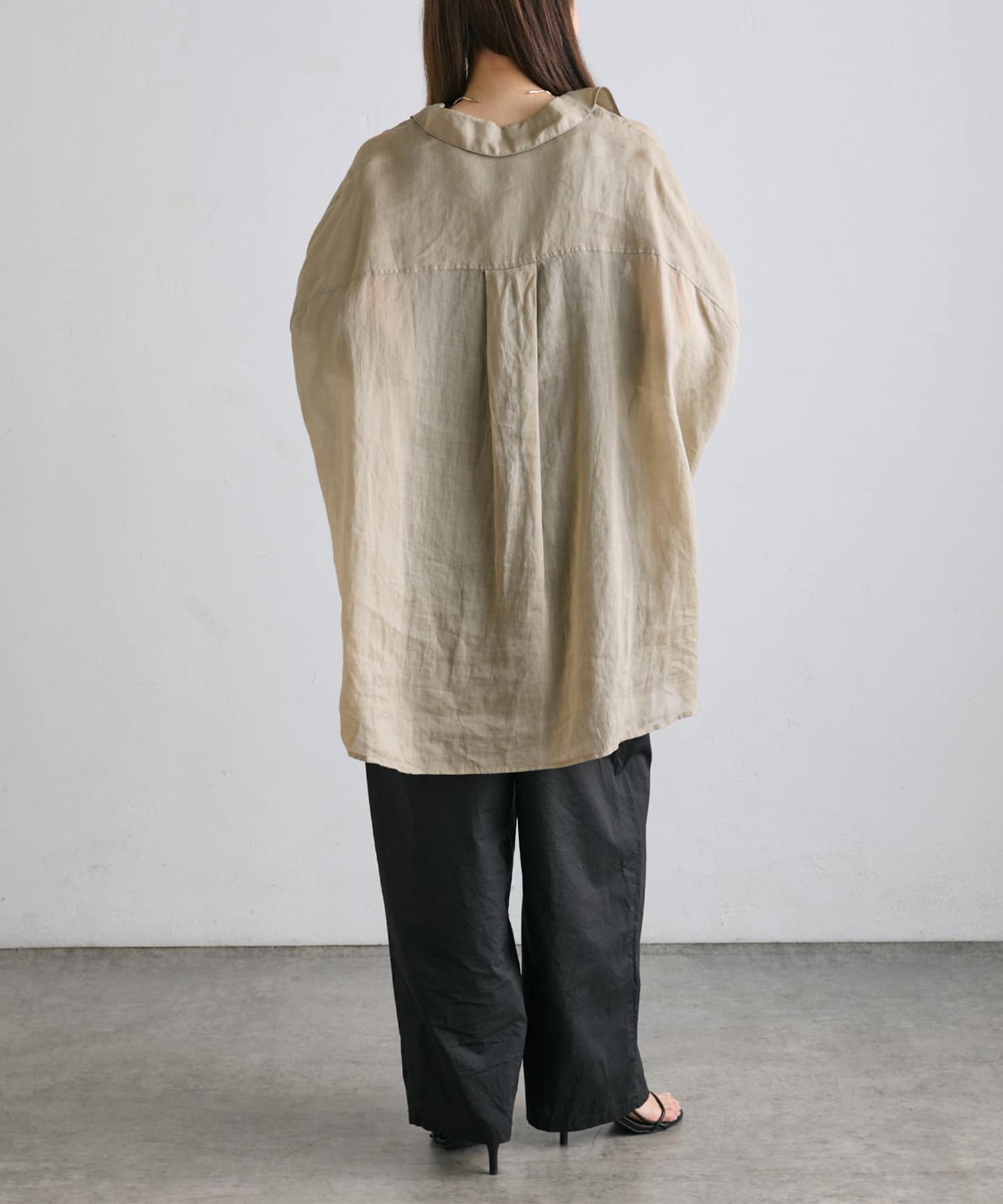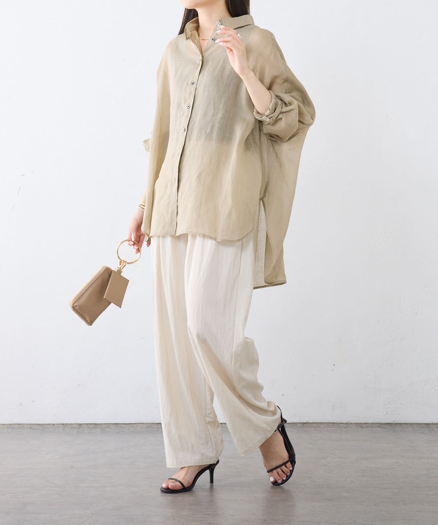 軽くて透け感のある軽やかなラミー素材は、冷房対策や日よけ対策として着用しやすい1着。